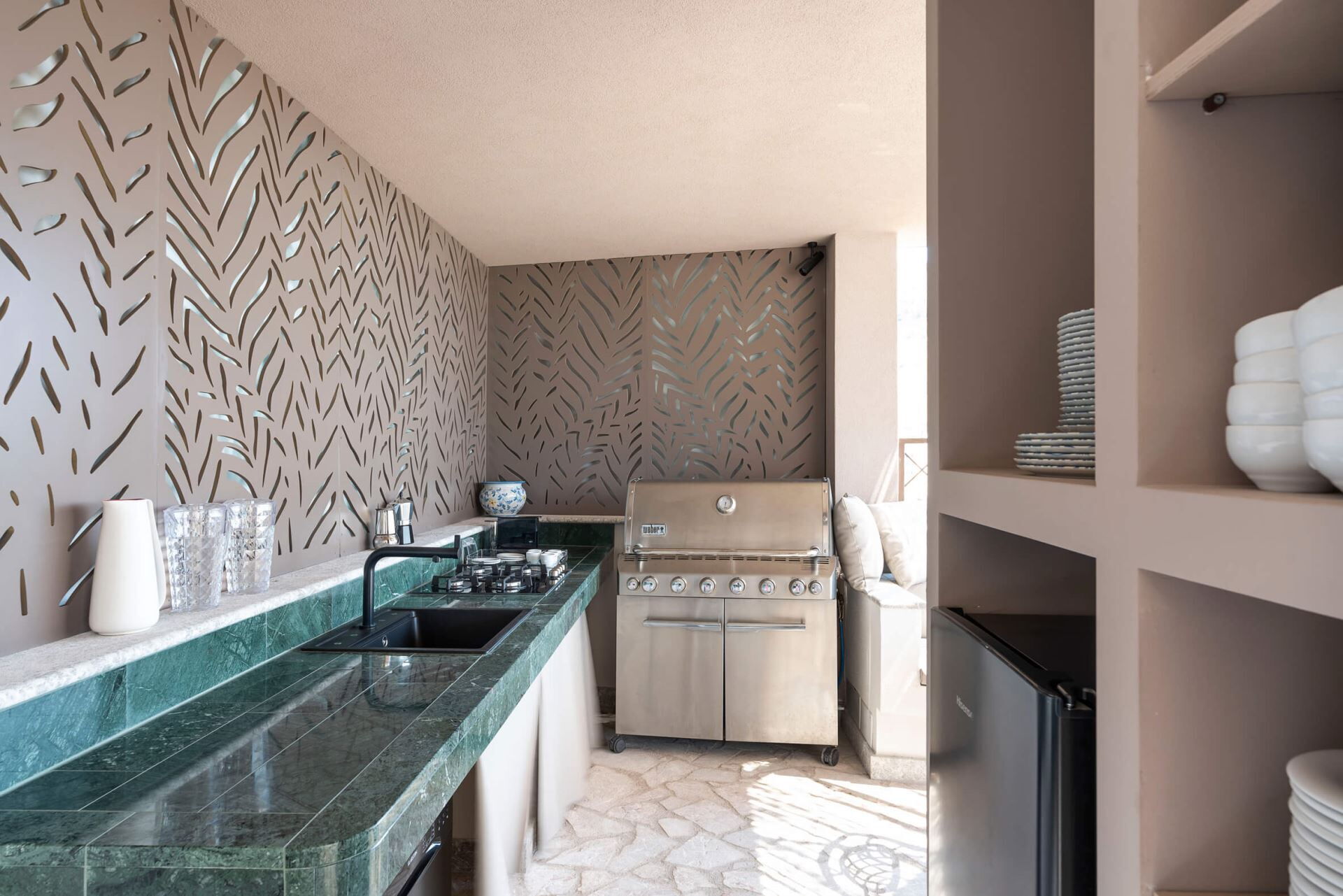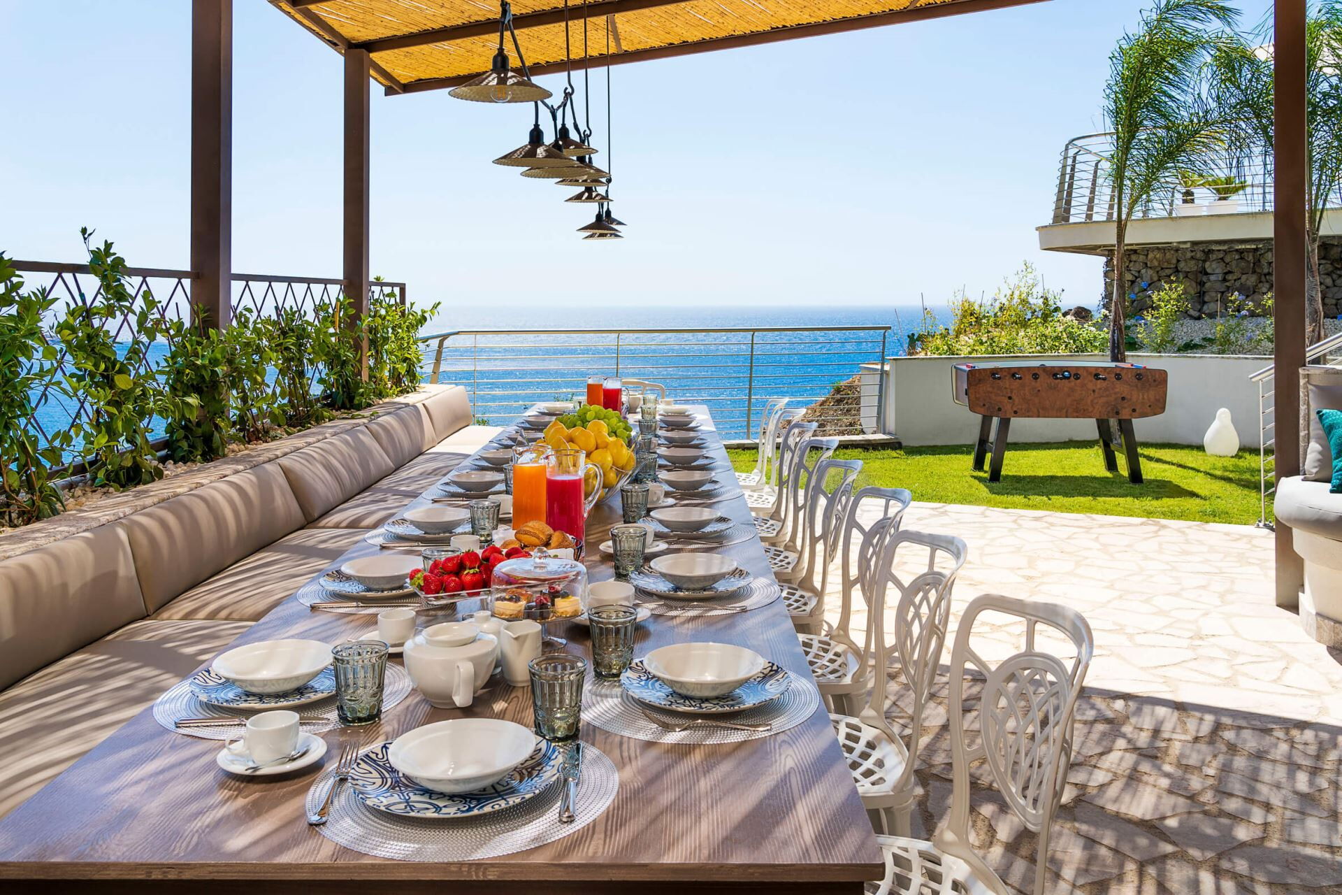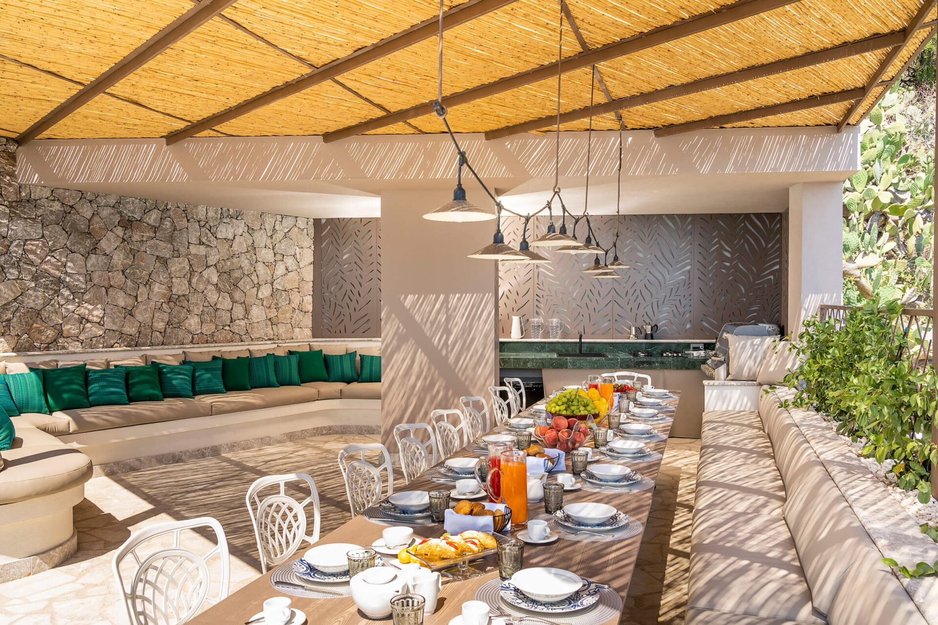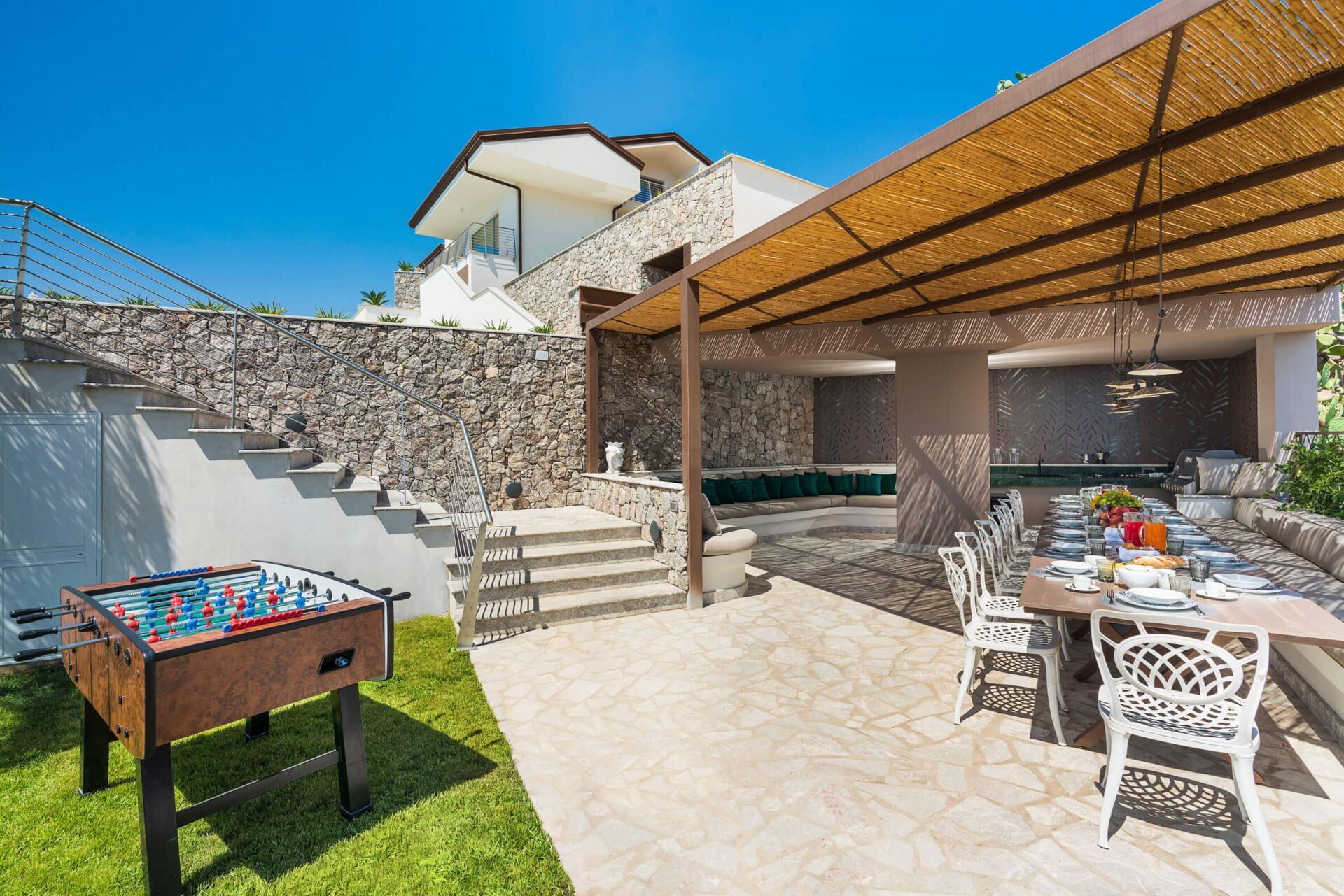 De buitenruimtes van Villa Taormina zijn ontworpen om uw genot van het mediterrane klimaat en het prachtige uitzicht op zee te maximaliseren. U vindt er uitgestrekte terrassen die voldoende ruimte bieden om te loungen, dineren en entertainen terwijl u geniet van de panoramische vergezichten. De accommodatie beschikt over prachtig onderhouden tuinen die een serene sfeer creëren op het gehele terrein. Het verwarmde zoutwaterzwembad meet 7,00 bij 12,00 meter met een diepte variërend van 1,20 tot 1,50 meter en is het hele jaar door geopend van 01/01 tot 31/12, waardoor u de perfecte plek heeft om te verfrissen en tot rust te komen. Grenzend aan het zwembad ontdekt u een speciaal zonneterras dat ideaal is om te zonnebaden. De buitenkeuken is volledig uitgerust met een barbecue en eethoek, zodat u maaltijden in de buitenlucht kunt bereiden en ervan kunt genieten. Daarnaast is er een privé hot tub van 2,00 bij 2,00 meter met een diepte variërend van 0,60 tot 0,80 meter, verwarmd tot een comfortabele temperatuur van 28 graden en het hele jaar door beschikbaar. Een buitenbadkamer met douche bevindt zich vlakbij het zwembad voor uw comfort.