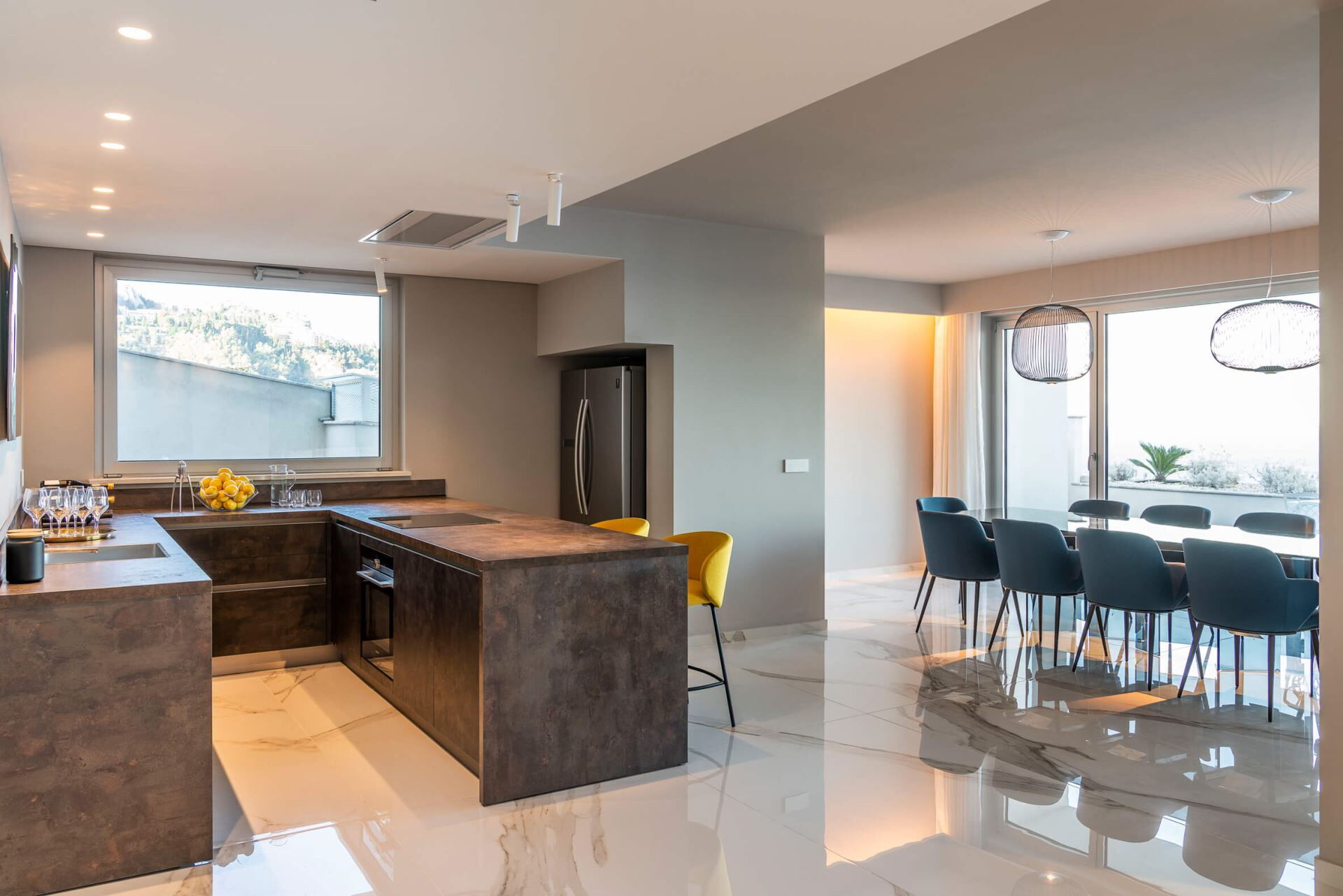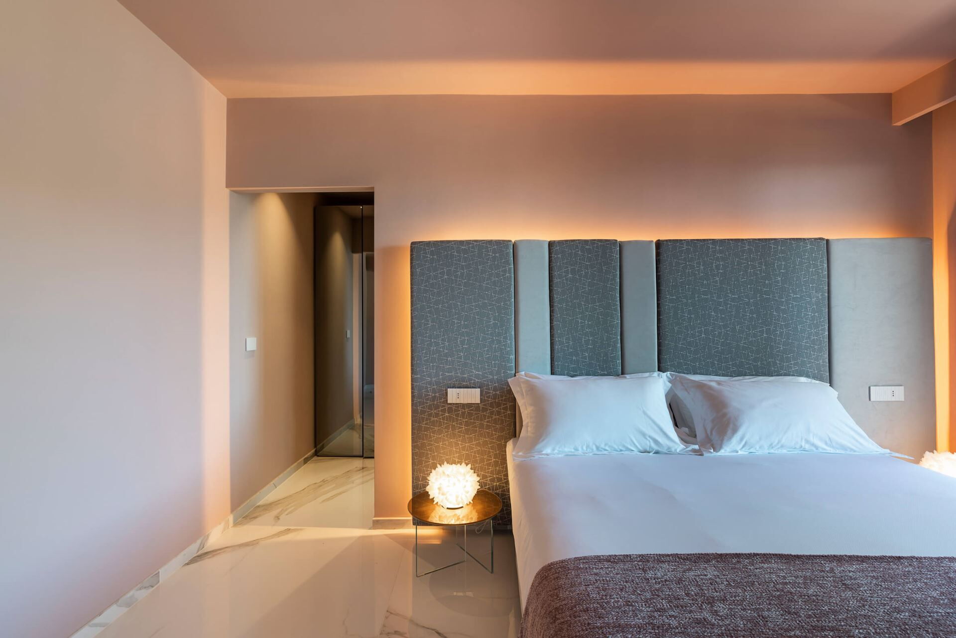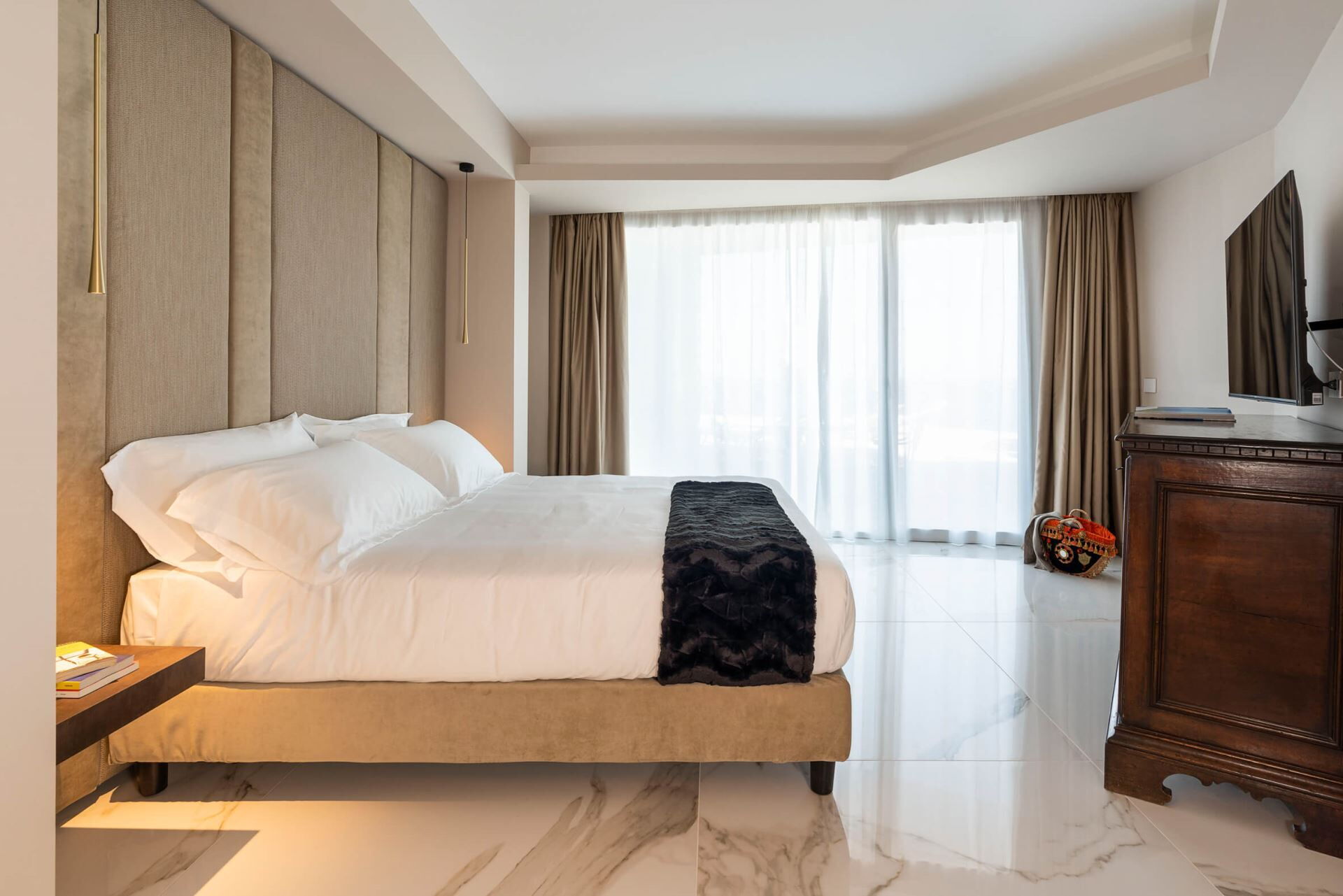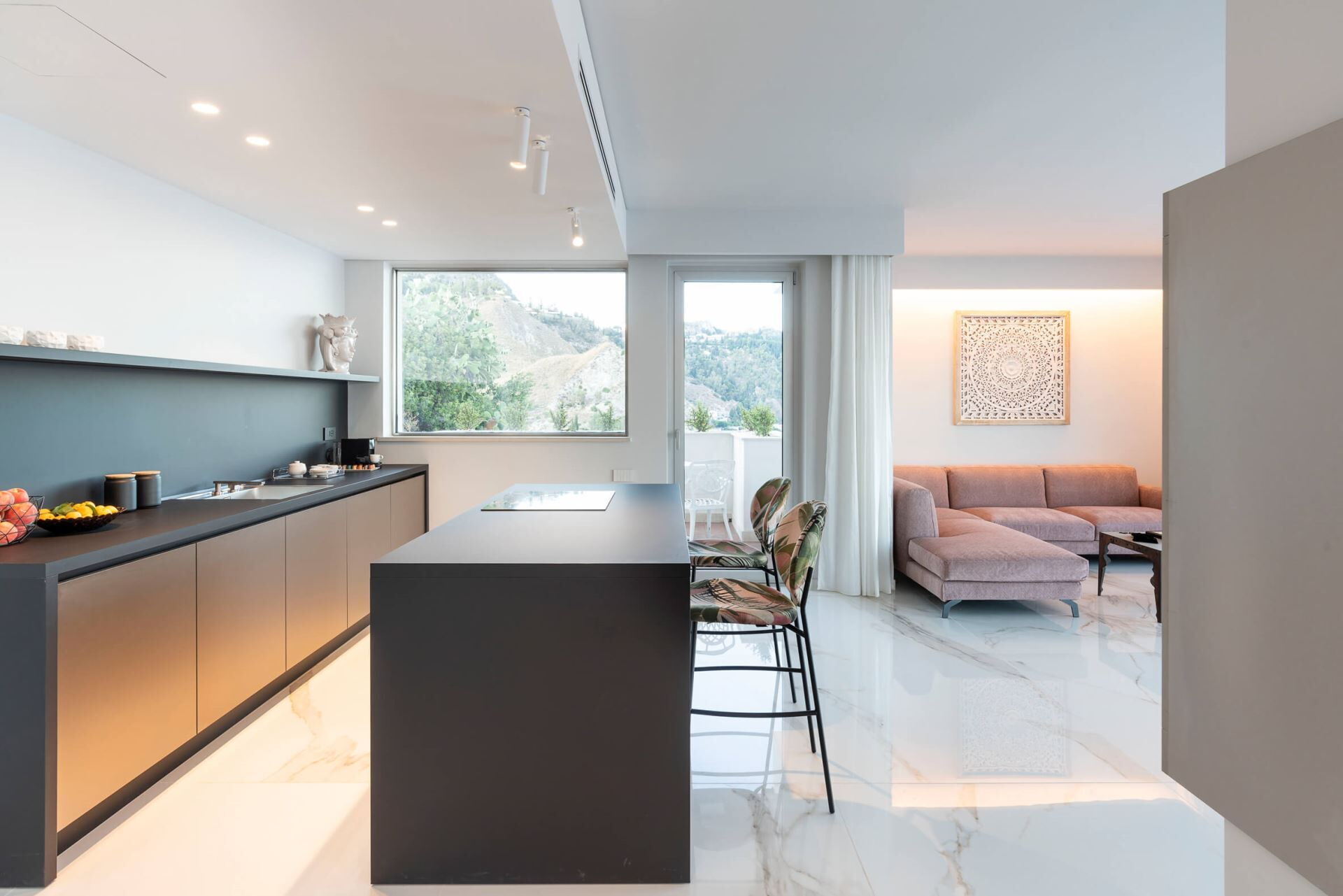 Villa Taormina strekt zich uit over vier verdiepingen, allemaal verbonden door een lift voor gemakkelijke toegang, en biedt plaats aan maximaal 20 gasten verdeeld over 10 slaapkamers en 11 badkamers. De begane grond beschikt over een grote woonkamer met eetkamer en keuken, 2 tweepersoonsslaapkamers met en-suite douches, een wasruimte en de uitgebreide wellnessruimte die de fitnessfaciliteiten, sauna, massageruimte en multisensorische douche omvat. Een van de slaapkamers op de begane grond beschikt over een inloopkast. De eerste verdieping biedt een grote woonkamer met zithoek, eetkamer en keuken, samen met 4 tweepersoonsslaapkamers, allemaal met en-suite douches, en een terras. Twee van deze slaapkamers beschikken over inloopkasten. De tweede verdieping bevat een grote woonkamer met eethoek en keuken, 3 tweepersoonsslaapkamers met en-suite douches, en een terras. Een van deze slaapkamers beschikt over een inloopkast. De derde verdieping bestaat uit een woonkamer met eethoek, keuken, 1 tweepersoonsslaapkamer met en-suite douche, en 2 kleine terrassen. Alle 10 tweepersoonsslaapkamers zijn uitgerust met televisies en luxueuze en-suite badkamers met douches, wat privacy en comfort voor elke gast garandeert. De villa beschikt over 4 afzonderlijke woonkamers met keukens, eet- en zithoeken verdeeld over de verschillende verdiepingen, waardoor uw groep over meerdere ontmoetingsruimtes beschikt.