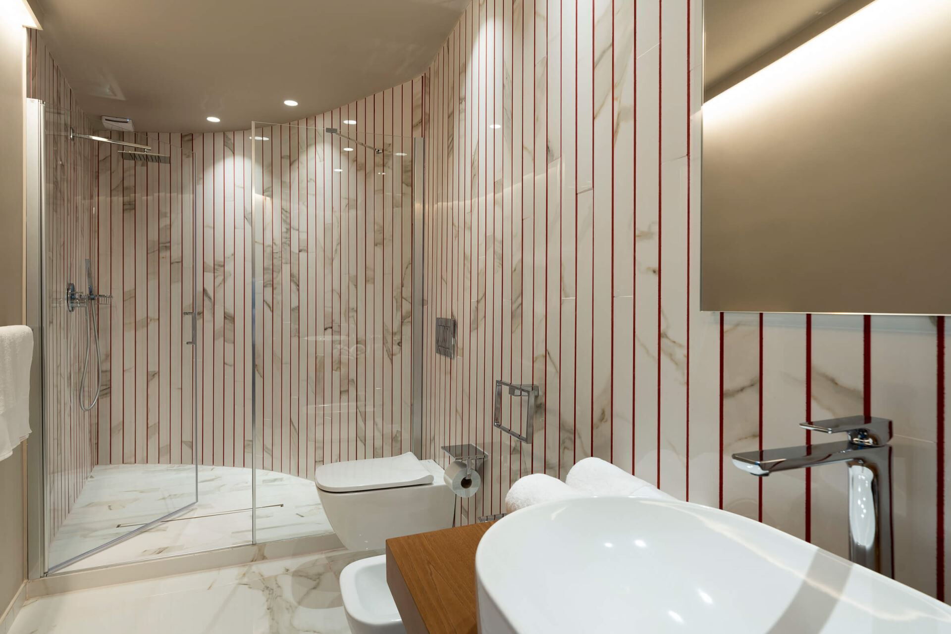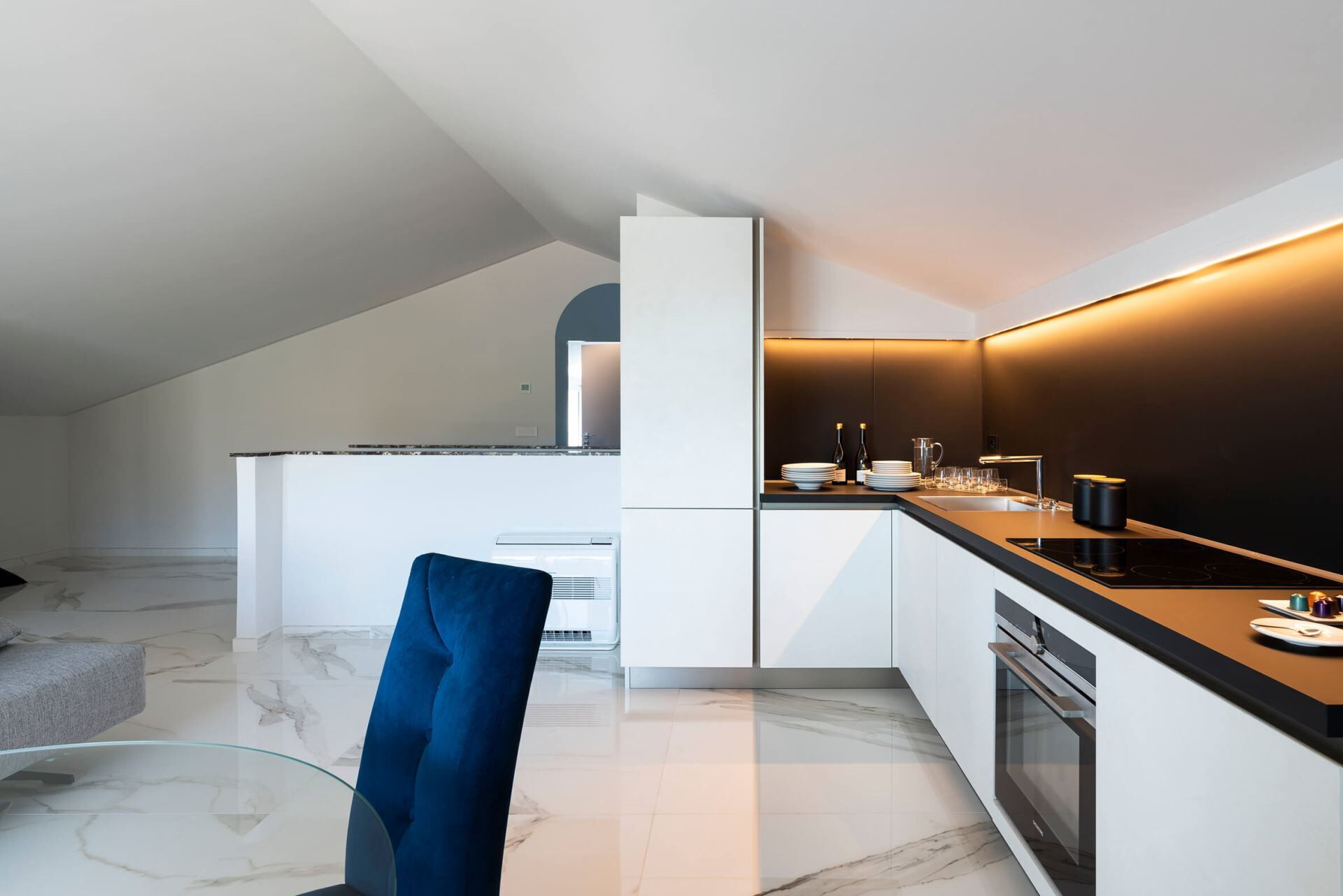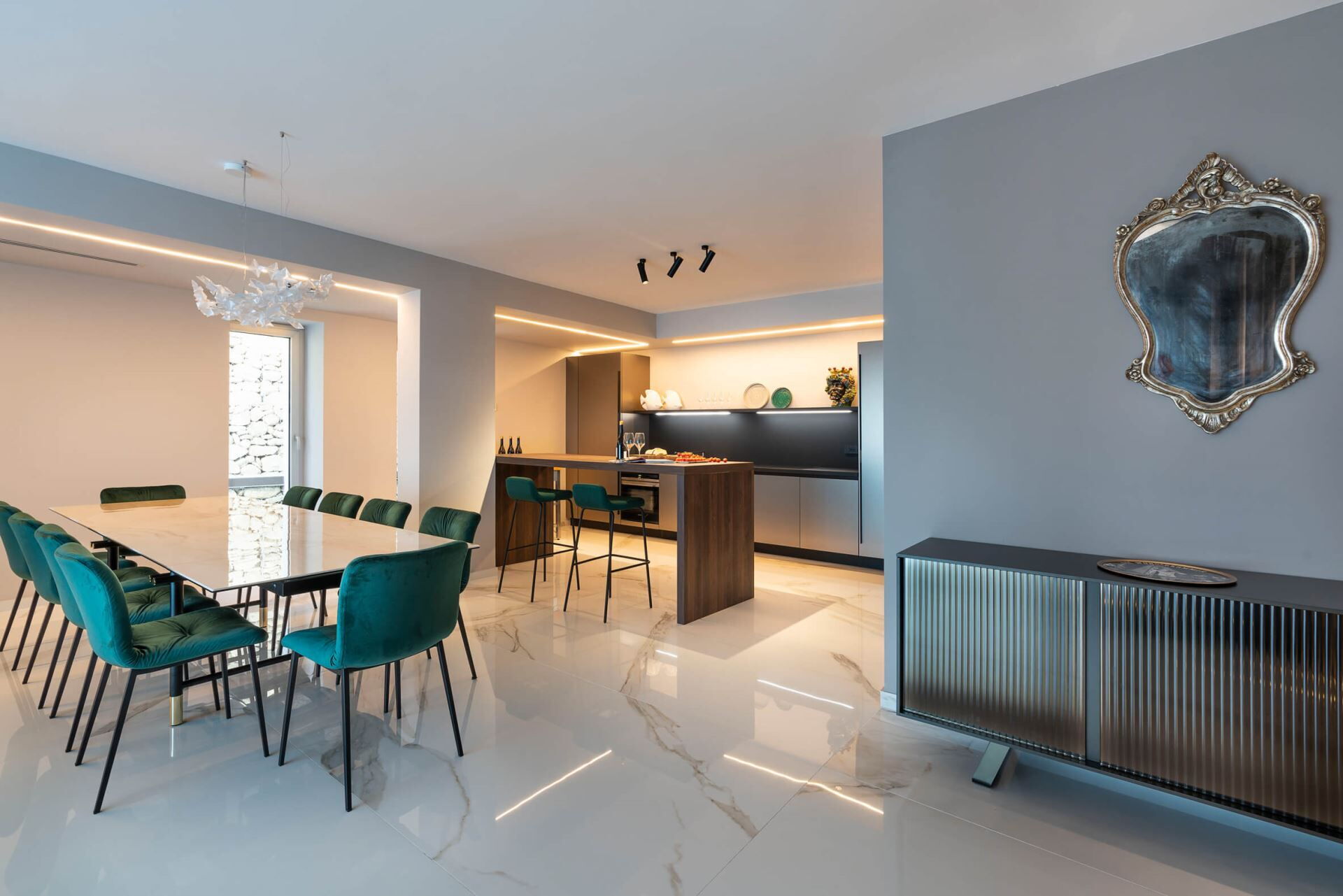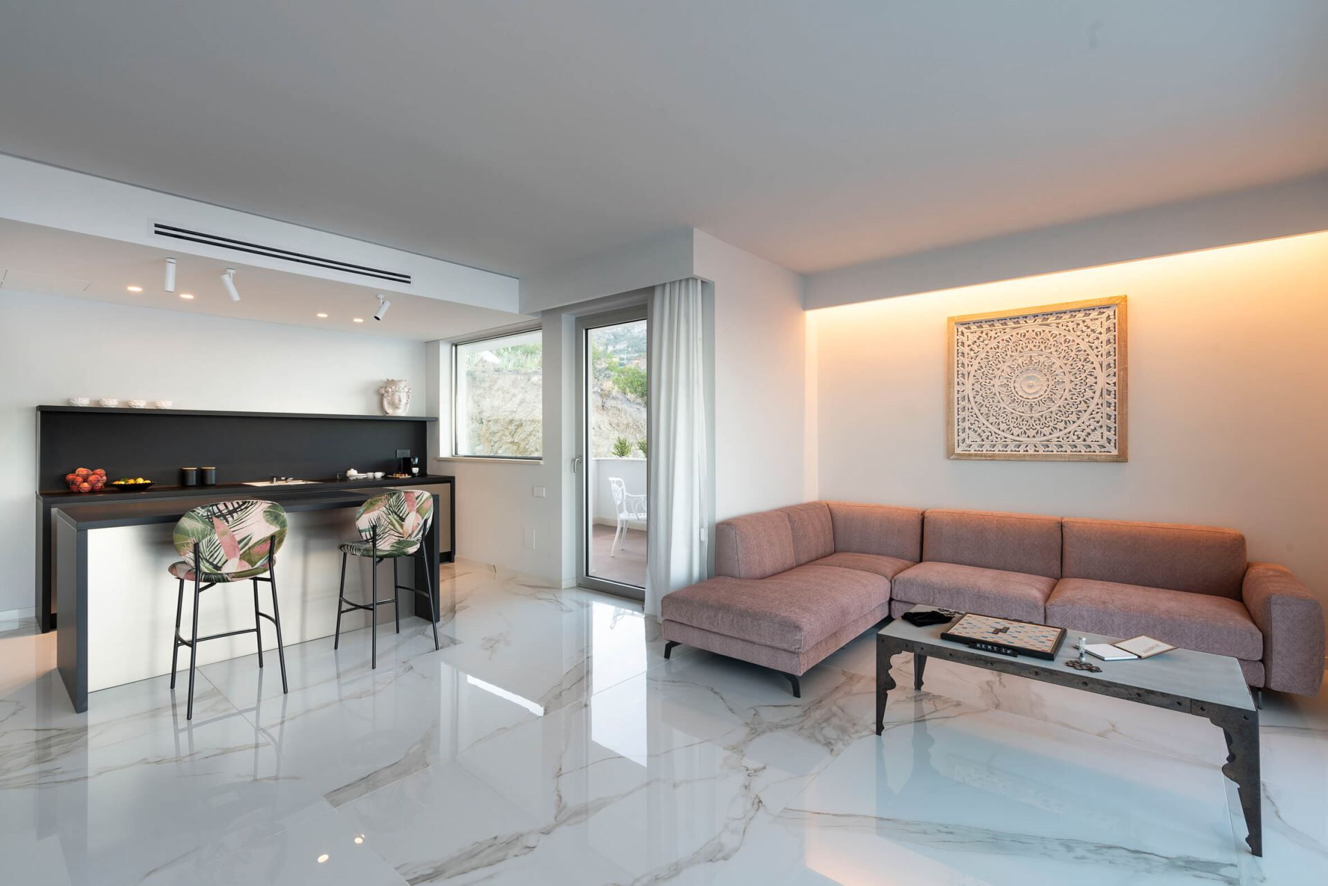 Villa Taormina strekt zich uit over vier verdiepingen, allemaal verbonden door een lift voor gemakkelijke toegang, en biedt plaats aan maximaal 20 gasten verdeeld over 10 slaapkamers en 11 badkamers. De begane grond beschikt over een grote woonkamer met eetkamer en keuken, 2 tweepersoonsslaapkamers met en-suite douches, een wasruimte en de uitgebreide wellnessruimte die de fitnessfaciliteiten, sauna, massageruimte en multisensorische douche omvat. Een van de slaapkamers op de begane grond beschikt over een inloopkast. De eerste verdieping biedt een grote woonkamer met zithoek, eetkamer en keuken, samen met 4 tweepersoonsslaapkamers, allemaal met en-suite douches, en een terras. Twee van deze slaapkamers beschikken over inloopkasten. De tweede verdieping bevat een grote woonkamer met eethoek en keuken, 3 tweepersoonsslaapkamers met en-suite douches, en een terras. Een van deze slaapkamers beschikt over een inloopkast. De derde verdieping bestaat uit een woonkamer met eethoek, keuken, 1 tweepersoonsslaapkamer met en-suite douche, en 2 kleine terrassen. Alle 10 tweepersoonsslaapkamers zijn uitgerust met televisies en luxueuze en-suite badkamers met douches, wat privacy en comfort voor elke gast garandeert. De villa beschikt over 4 afzonderlijke woonkamers met keukens, eet- en zithoeken verdeeld over de verschillende verdiepingen, waardoor uw groep over meerdere ontmoetingsruimtes beschikt.