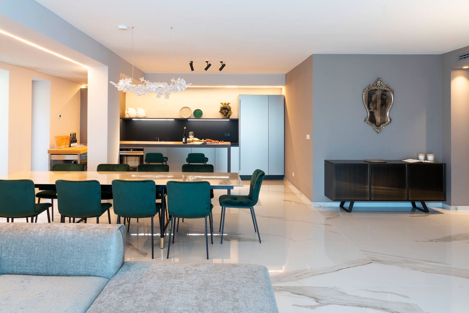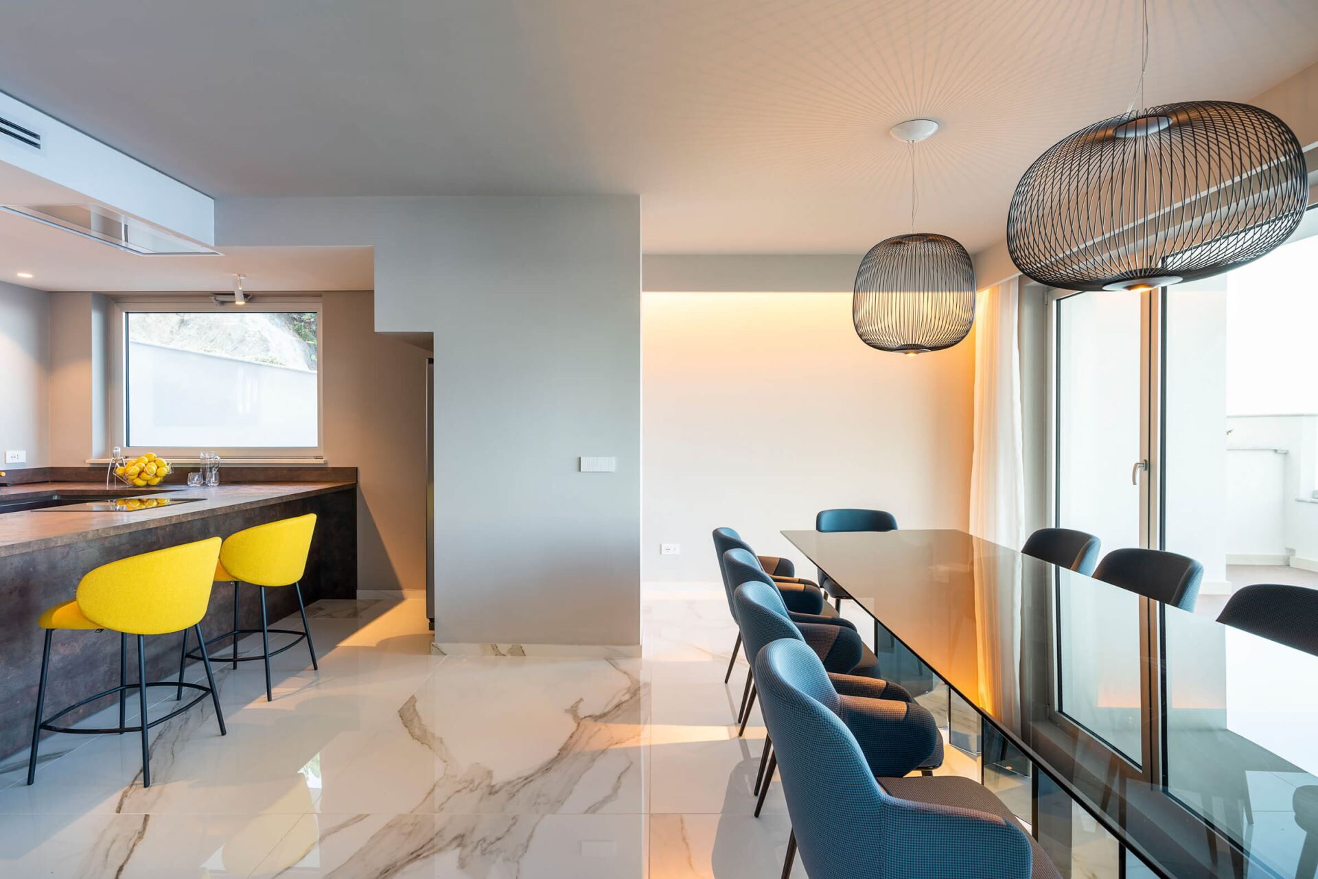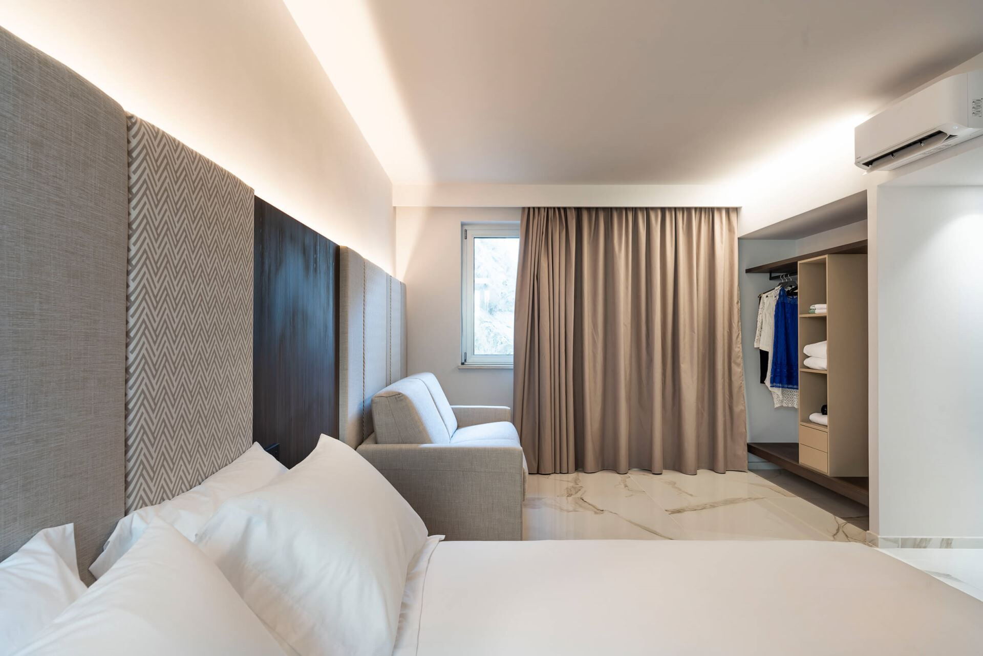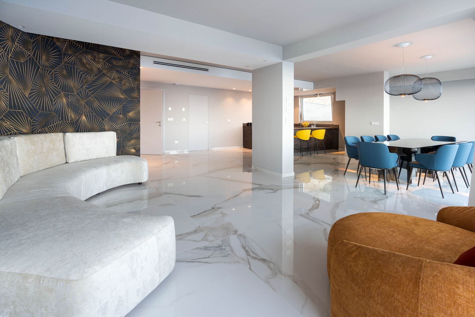 Villa Taormina strekt zich uit over vier verdiepingen, allemaal verbonden door een lift voor gemakkelijke toegang, en biedt plaats aan maximaal 20 gasten verdeeld over 10 slaapkamers en 11 badkamers. De begane grond beschikt over een grote woonkamer met eetkamer en keuken, 2 tweepersoonsslaapkamers met en-suite douches, een wasruimte en de uitgebreide wellnessruimte die de fitnessfaciliteiten, sauna, massageruimte en multisensorische douche omvat. Een van de slaapkamers op de begane grond beschikt over een inloopkast. De eerste verdieping biedt een grote woonkamer met zithoek, eetkamer en keuken, samen met 4 tweepersoonsslaapkamers, allemaal met en-suite douches, en een terras. Twee van deze slaapkamers beschikken over inloopkasten. De tweede verdieping bevat een grote woonkamer met eethoek en keuken, 3 tweepersoonsslaapkamers met en-suite douches, en een terras. Een van deze slaapkamers beschikt over een inloopkast. De derde verdieping bestaat uit een woonkamer met eethoek, keuken, 1 tweepersoonsslaapkamer met en-suite douche, en 2 kleine terrassen. Alle 10 tweepersoonsslaapkamers zijn uitgerust met televisies en luxueuze en-suite badkamers met douches, wat privacy en comfort voor elke gast garandeert. De villa beschikt over 4 afzonderlijke woonkamers met keukens, eet- en zithoeken verdeeld over de verschillende verdiepingen, waardoor uw groep over meerdere ontmoetingsruimtes beschikt.