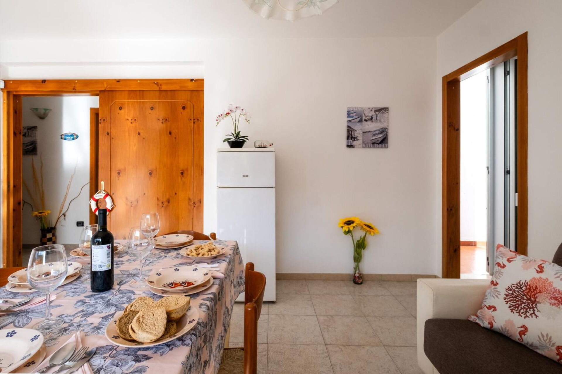 Bij aankomst vindt u een mooie, schone en goed onderhouden woning perfect voor een rustige vakantie in Apulië. Een groot voordeel van het huren van een huis, in plaats van meerdere hotelkamers, is de mogelijkheid om samen met familie en vrienden te ontspannen na een drukke dag van rondkijken en toeren. Geniet samen van een maaltijd met een glas lokale wijn om de dag af te sluiten. Als u van koken houdt is er een goed uitgeruste keuken met o.a. fornuis en ijskast en natuurlijk voldoende servies en bestek voor tot vier personen.