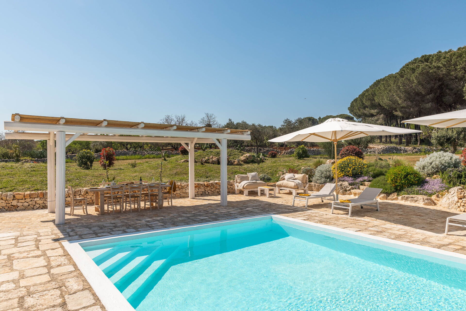 Masseria Le Monache is 4 km gelegen van Galante (Italië), en slechts 19 km van Ostuni in de streek "Salento". Masseria Le Monache is een fijne stenen woning (380 m2) met privé zwembad, air conditioning en WiFi internet. De woning is comfortabel geschikt voor max. tien personen in vijf slaapkamers en vijf badkamers.