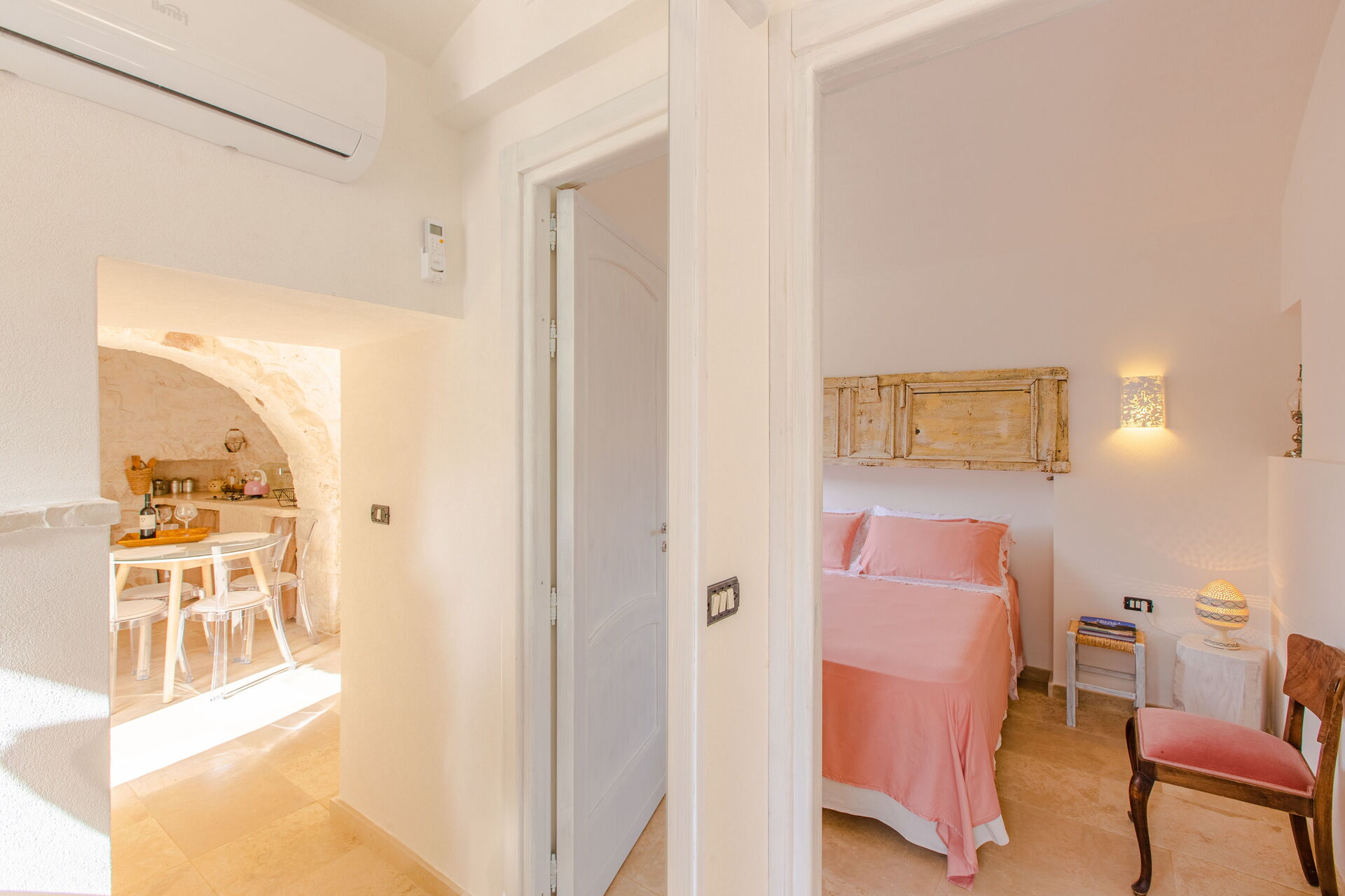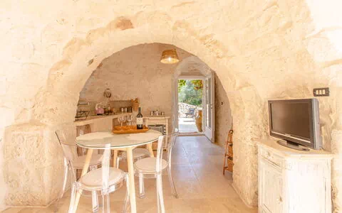 Bij aankomst te Trullo Della Quercia vindt u een fijne, schone en goed onderhouden woning perfect voor een rustige vakantie in Apulië. Hoe u de dagen ook doorbrengt - winkelen, musea bezoek, met excursies of rijdende door het prachtige landschap, zodra u thuis komt kunt u ontspannen samen met familie en vrienden voor een perfecte afsluiting van nog weer een dag in Apulië. Als u van koken houdt is er een goed uitgeruste keuken met o.a. koffiezetapparaat, magnetron oven, fornuis en ijskast en natuurlijk voldoende servies en bestek voor tot drie personen.