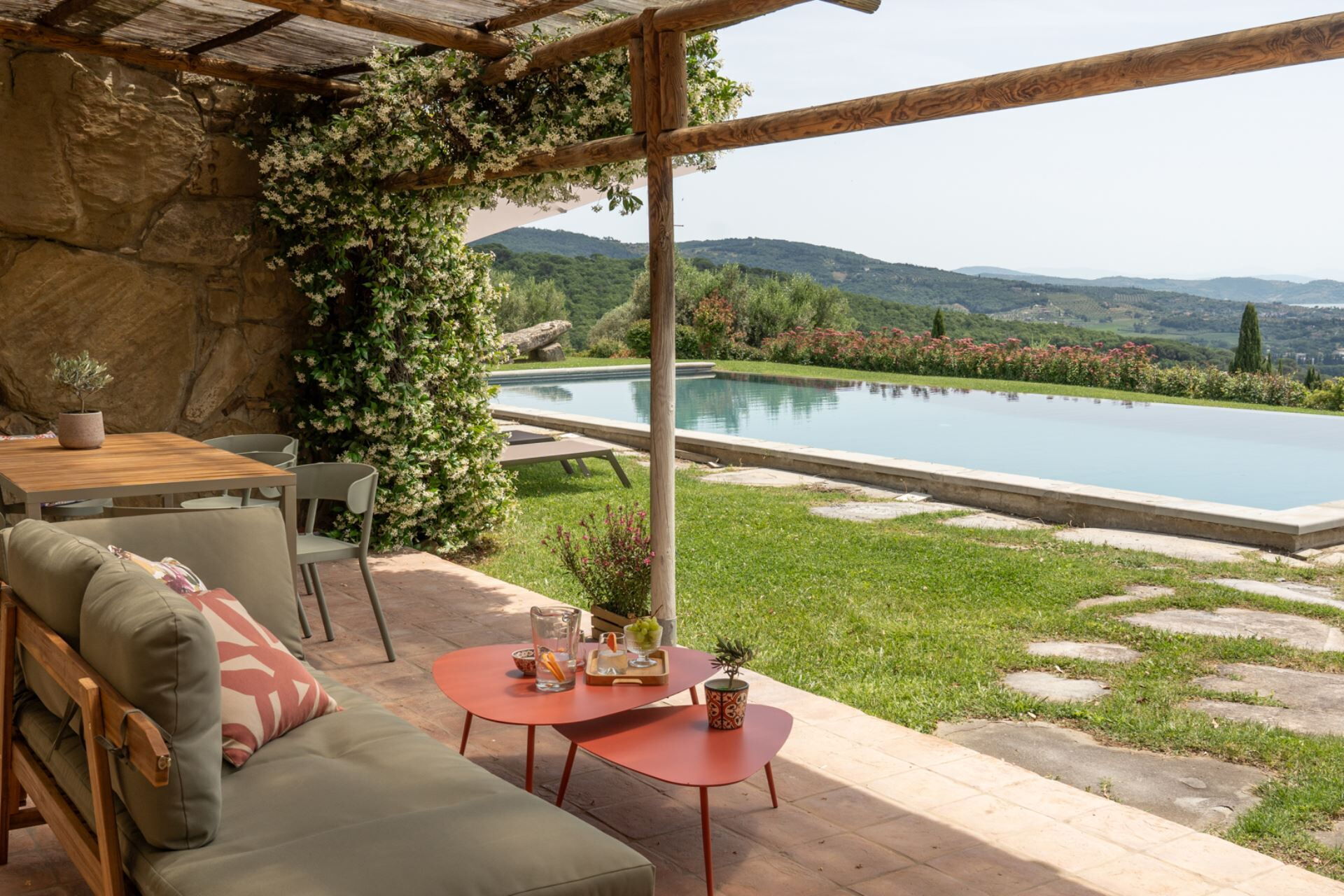 Bij aankomst te Villa Domus Papi vindt u een prachtige, schone en goed onderhouden woning ideaal voor een ontspannen vakantie in Umbrië. Na een hectische dag winkelen kunt u de tijd doorbrengen met vrienden en familie bij het zwembad, en genieten van een glaasje wijn - een perfecte manier om te uitrusten aan het einde van de dag. Op het terrein is er voor uw genoegen een barbecue en patio. Eten met vrienden en familie is een grote onderdeel van de Italiaanse cultuur. Maak gebruik van de goed uitgeruste keuken om maaltijden te bereiden met lokale producten terwijl u op vakantie bent. De keuken biedt o.a. een koffiezetapparaat, magnetron oven, broodrooster, fornuis en ijskast, en natuurlijk ook voldoende servies en bestek voor minstens 14 personen. Eet buiten net zoals een echte Italiaan, een veranda met tuinmeubilair is perfect om te genieten van het heerlijke eten, de familie en het prachtige Italiaanse klimaat.