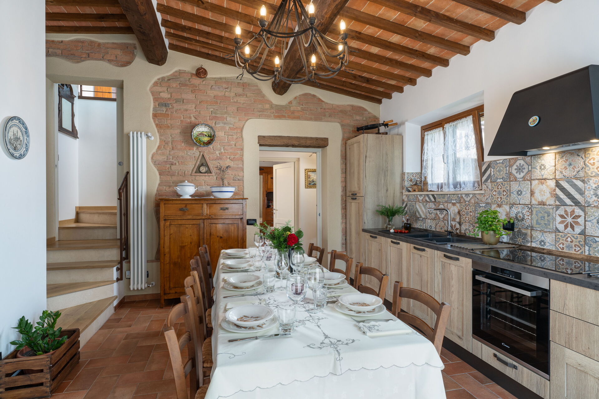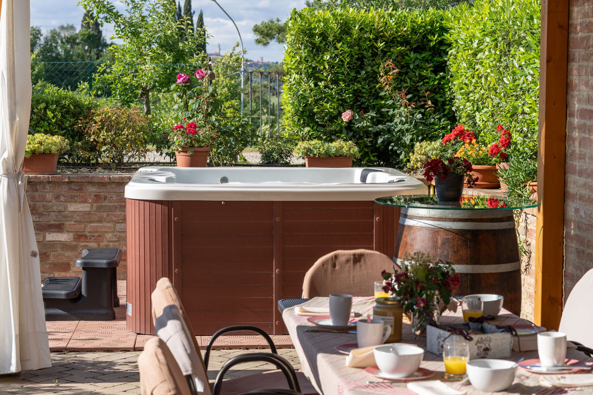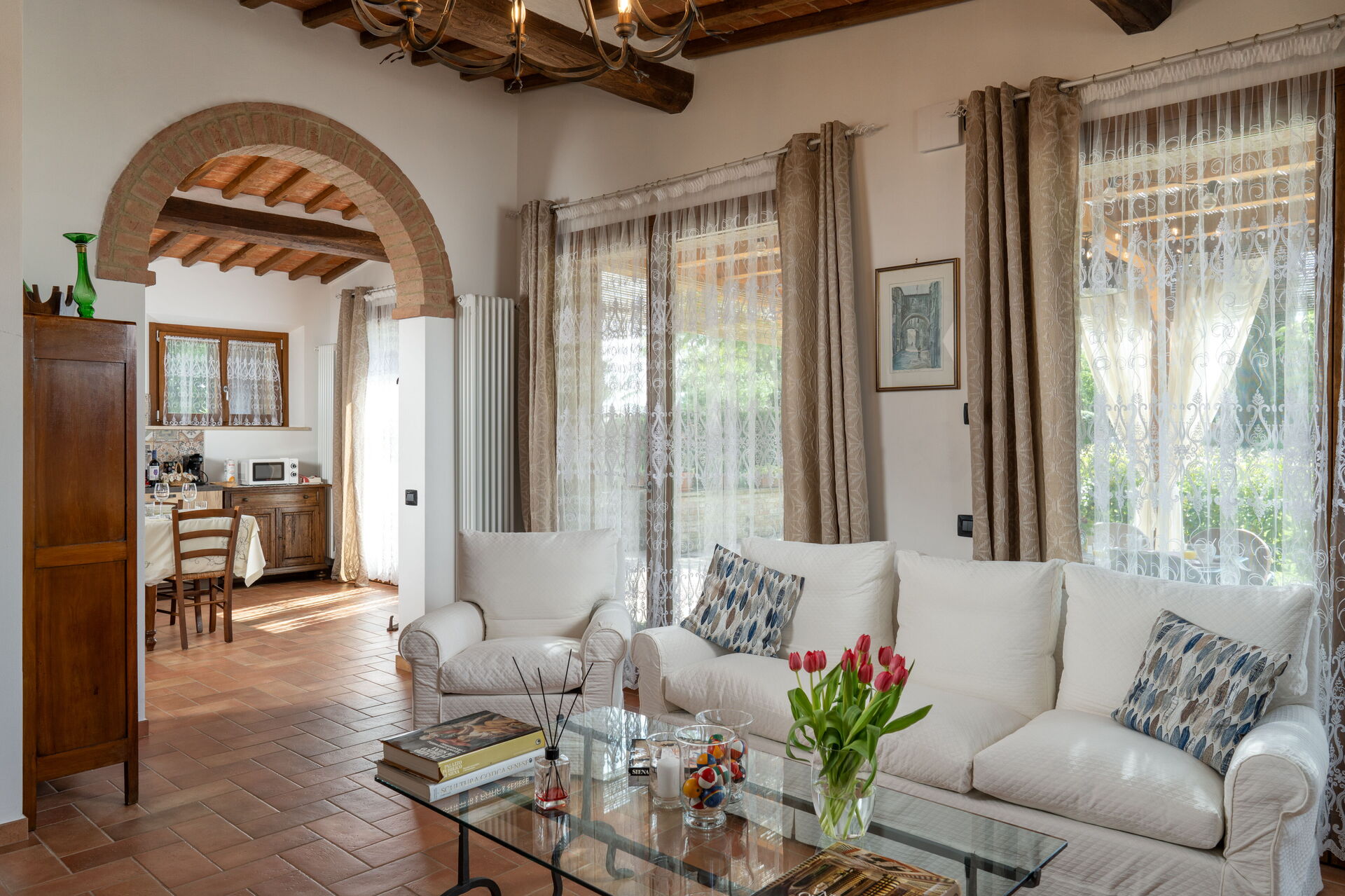 Bij aankomst vindt u een fijne, schone en goed onderhouden woning met uitzicht over de heuvels perfect voor een geweldige vakantie in Toscane. Na een drukke dag toeren kunt u de tijd doorbrengen met vrienden en familie en genieten van een glaasje wijn - een perfecte manier om te ontspannen aan het einde van de dag. Buiten zijn er ook een jacuzzi, patio en barbecue. Eten met vrienden en familie is een grote onderdeel van de Toscaanse cultuur. Maak gebruik van de goed uitgeruste keuken om maaltijden te bereiden met lokale producten terwijl u op vakantie bent. De keuken biedt o.a. een koffiezetapparaat, broodrooster, fornuis en ijskast, en natuurlijk ook voldoende servies en bestek voor minstens acht personen. Eet buiten net zoals een echte Toskaan, een veranda met tuinmeubilair is perfect om te genieten van het heerlijke eten, de familie en het mooie Toscaanse klimaat.