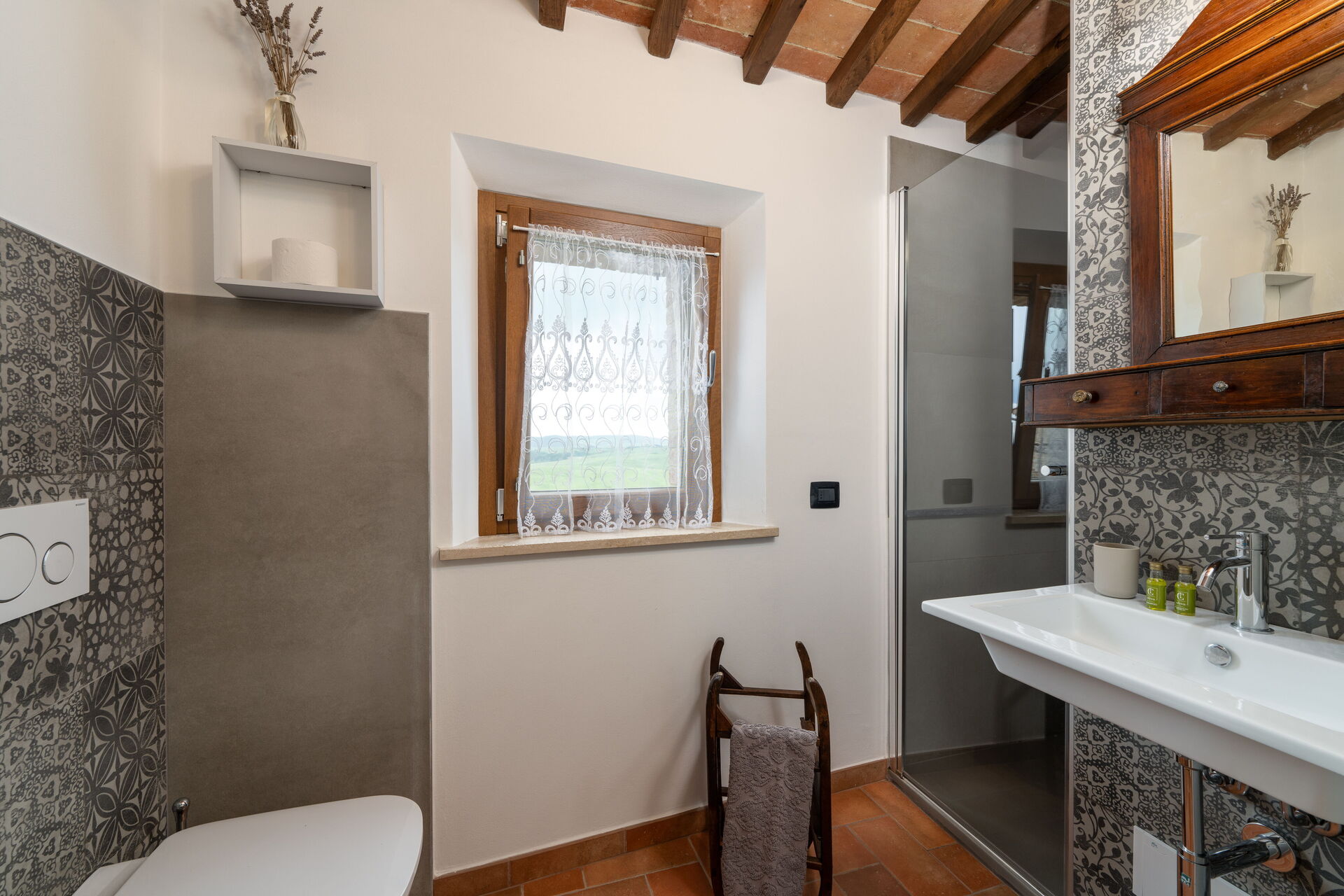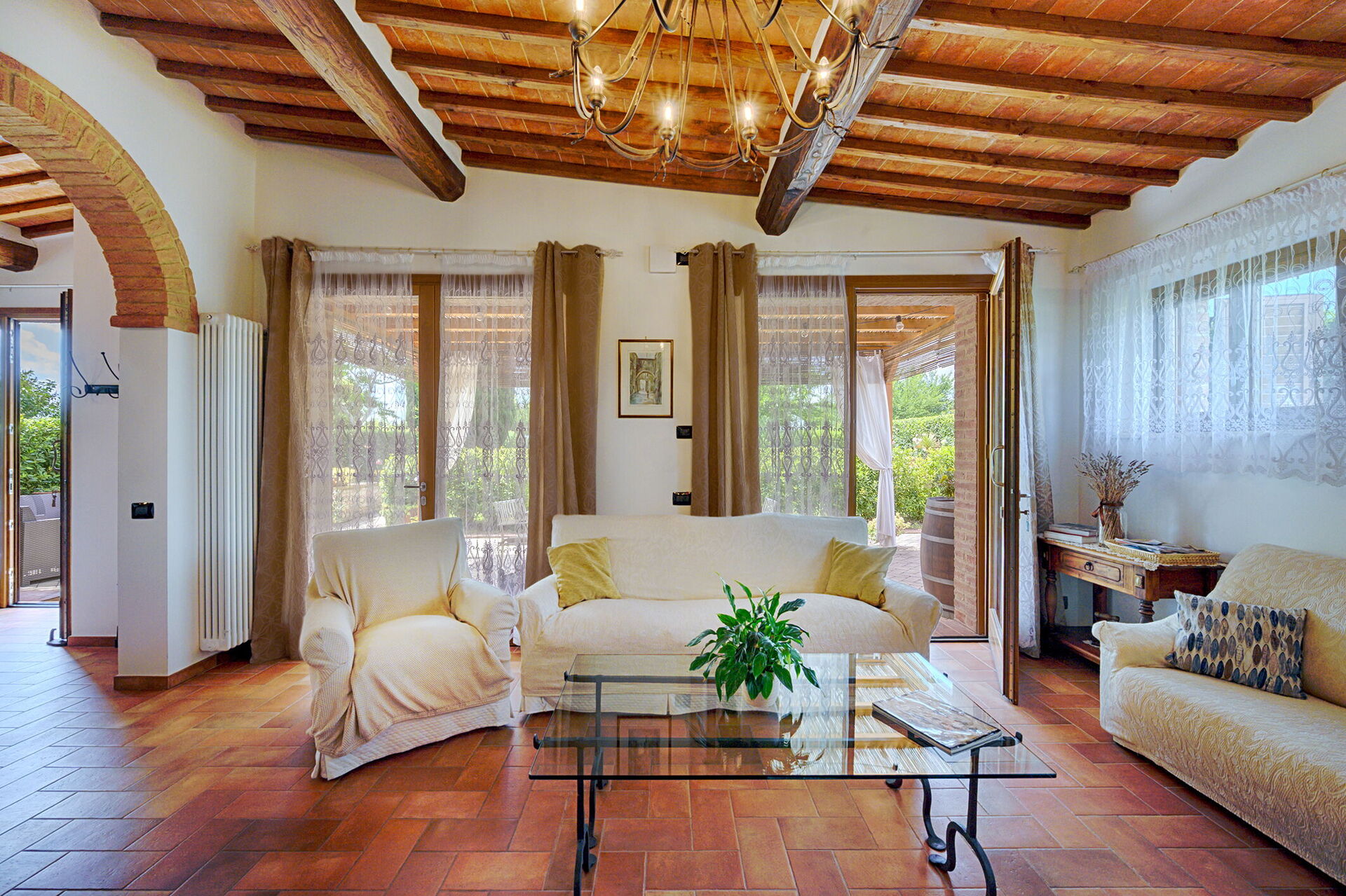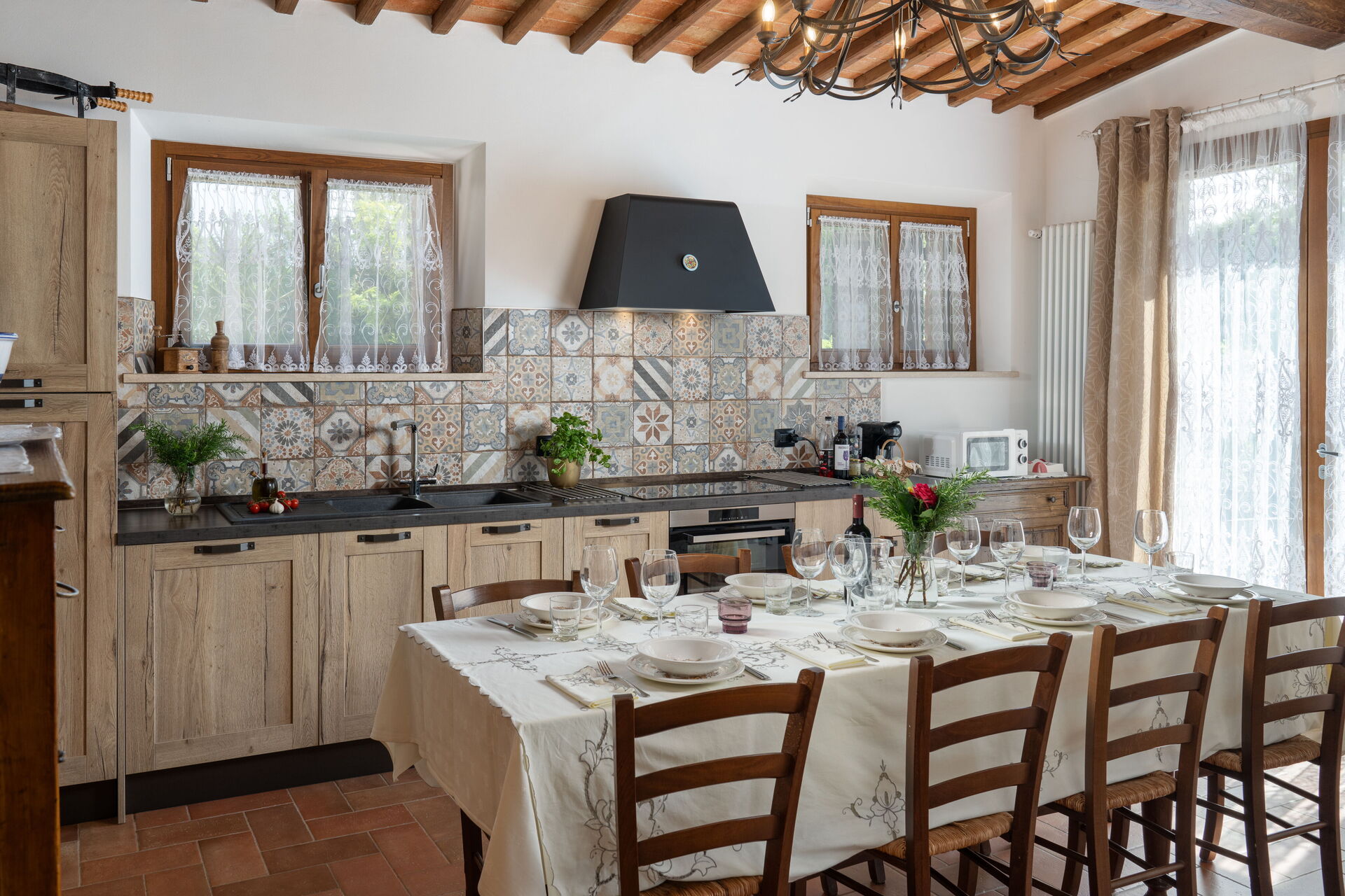Bij aankomst vindt u een fijne, schone en goed onderhouden woning met uitzicht over de heuvels perfect voor een geweldige vakantie in Toscane. Na een drukke dag toeren kunt u de tijd doorbrengen met vrienden en familie en genieten van een glaasje wijn - een perfecte manier om te ontspannen aan het einde van de dag. Buiten zijn er ook een jacuzzi, patio en barbecue. Eten met vrienden en familie is een grote onderdeel van de Toscaanse cultuur. Maak gebruik van de goed uitgeruste keuken om maaltijden te bereiden met lokale producten terwijl u op vakantie bent. De keuken biedt o.a. een koffiezetapparaat, broodrooster, fornuis en ijskast, en natuurlijk ook voldoende servies en bestek voor minstens acht personen. Eet buiten net zoals een echte Toskaan, een veranda met tuinmeubilair is perfect om te genieten van het heerlijke eten, de familie en het mooie Toscaanse klimaat.