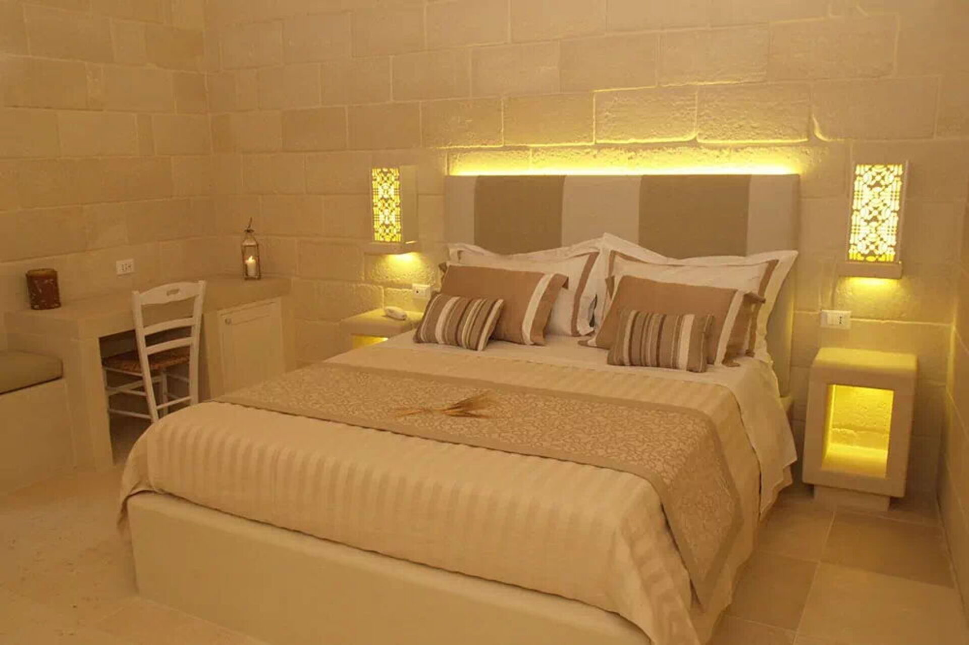 The Timilia, entirely in Lecce stone, offers a suggestive atmosphere thanks to the warm lights that enhance the stone. It has three beds, a private bathroom with shower, television and air conditioning.