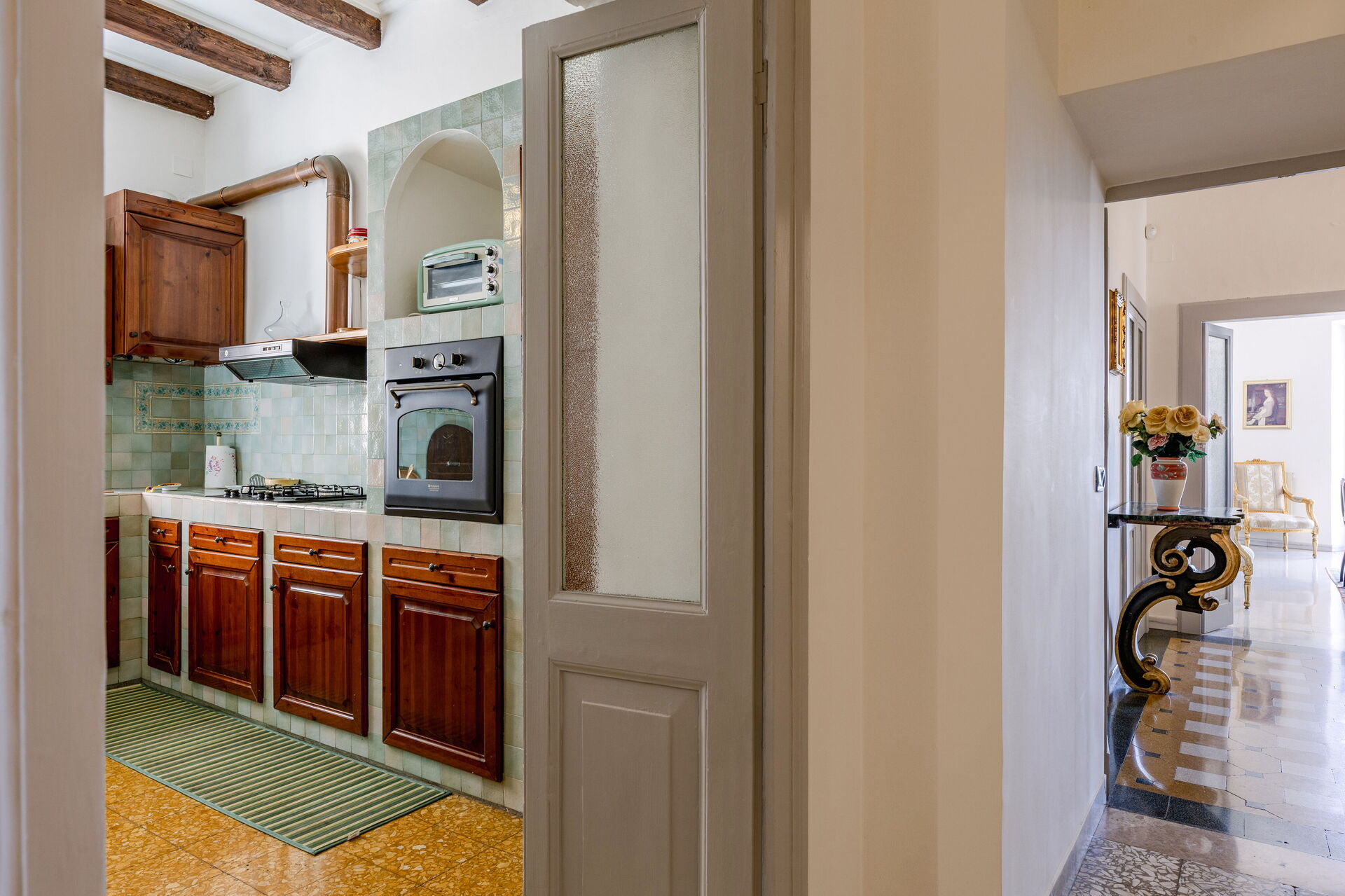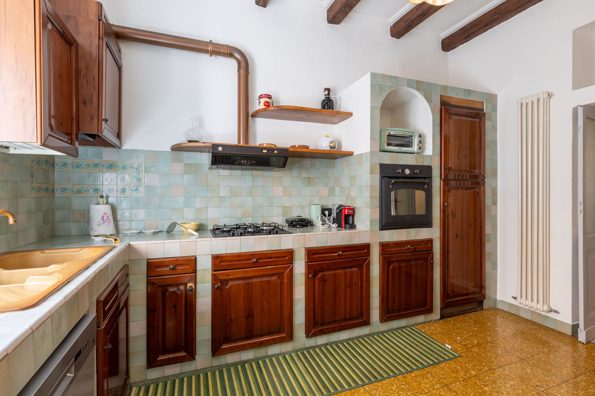Keuken: goed uitgeruste keuken, eettafel, vaatwasser, ijskast, diepvriezer, kookplaat, oven, broodrooster, italiaans koffiezetapparaat, open haard, WIFI internet, internet, satelliet tv.
