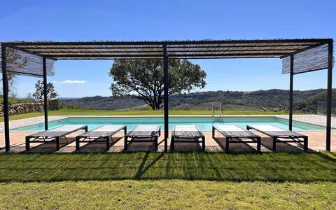 Tuin: zwembad (privé, buiten), WIFI internet, barbecue, dineren in de buitenlucht, eettafel (personen: 16), gazebo, tuinmeubilair, omheind grondstuk.