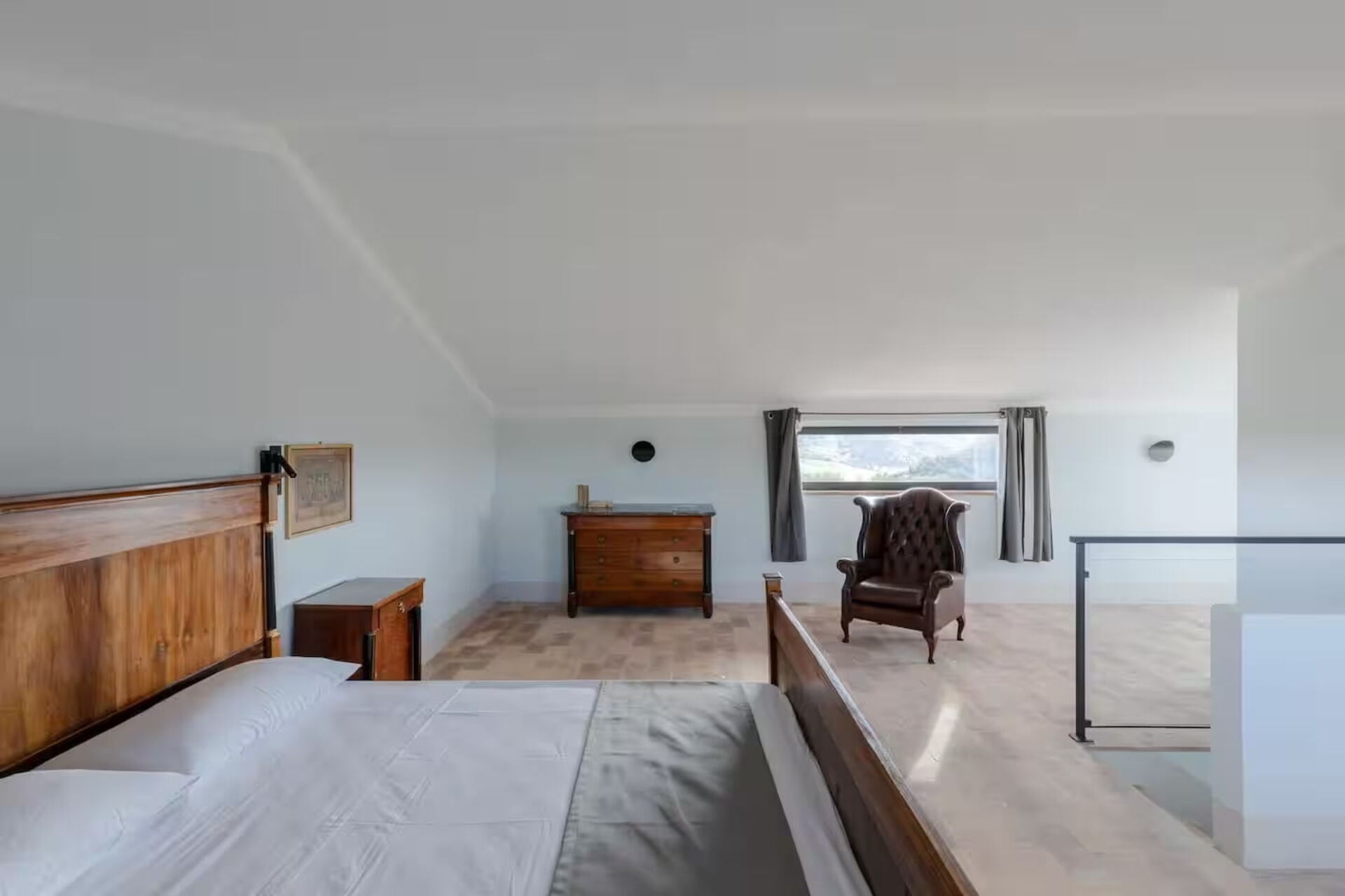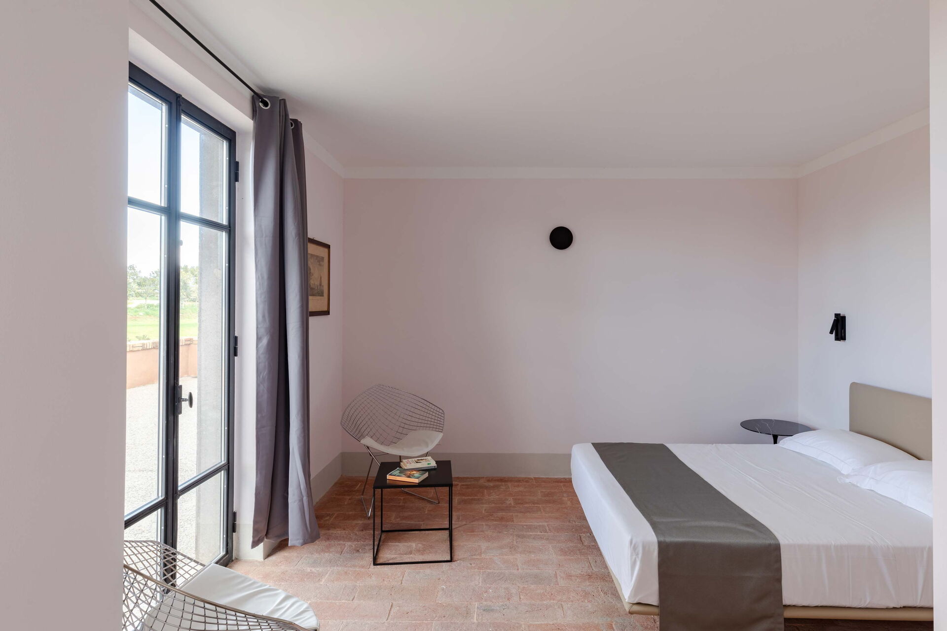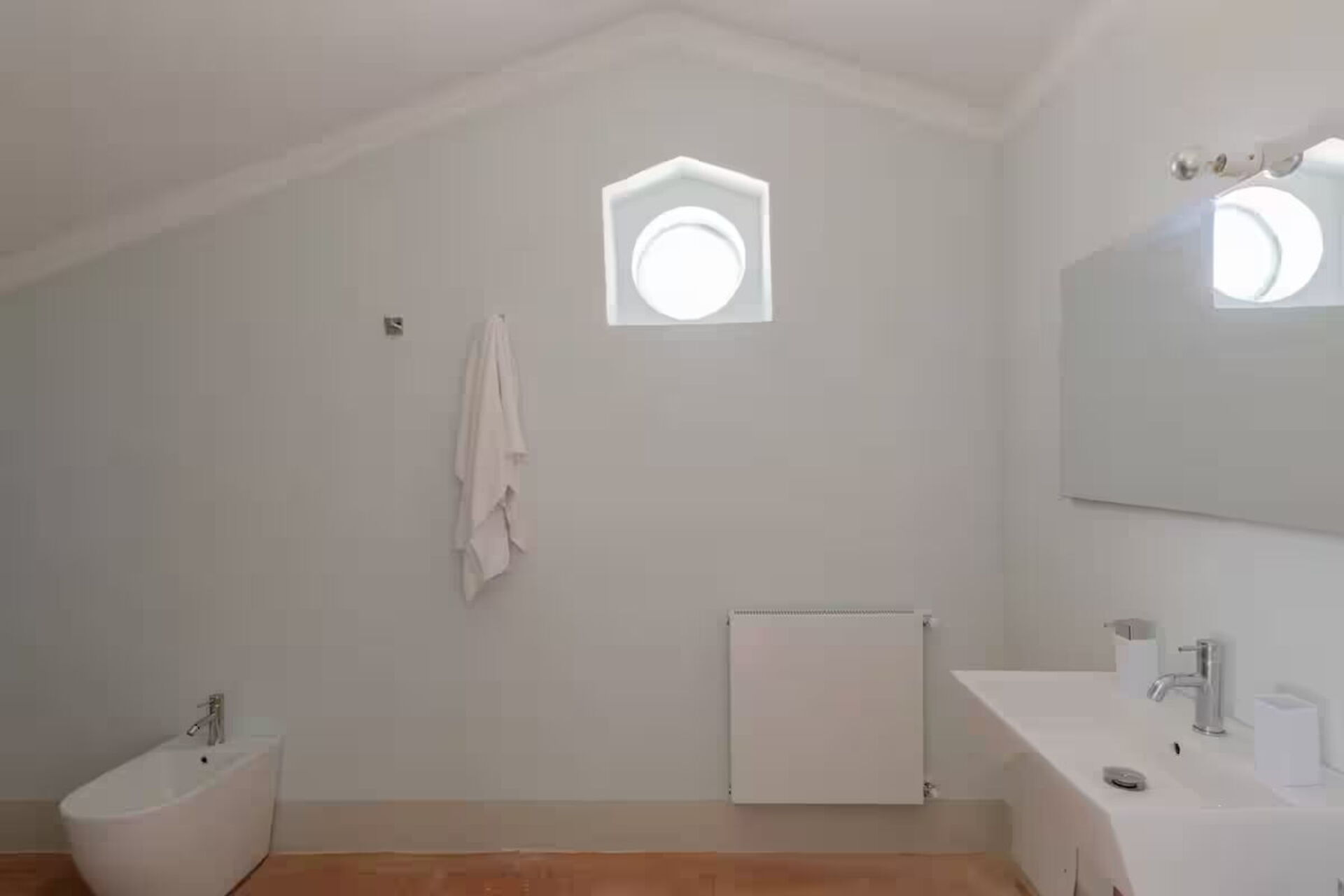 Slaapkamer met badkamer 2: tweepersoonsbed, WIFI internet, airconditioning, open haard, wastafel, toilet , bidet, douche, haardroger, uitgang naar het balkon.
