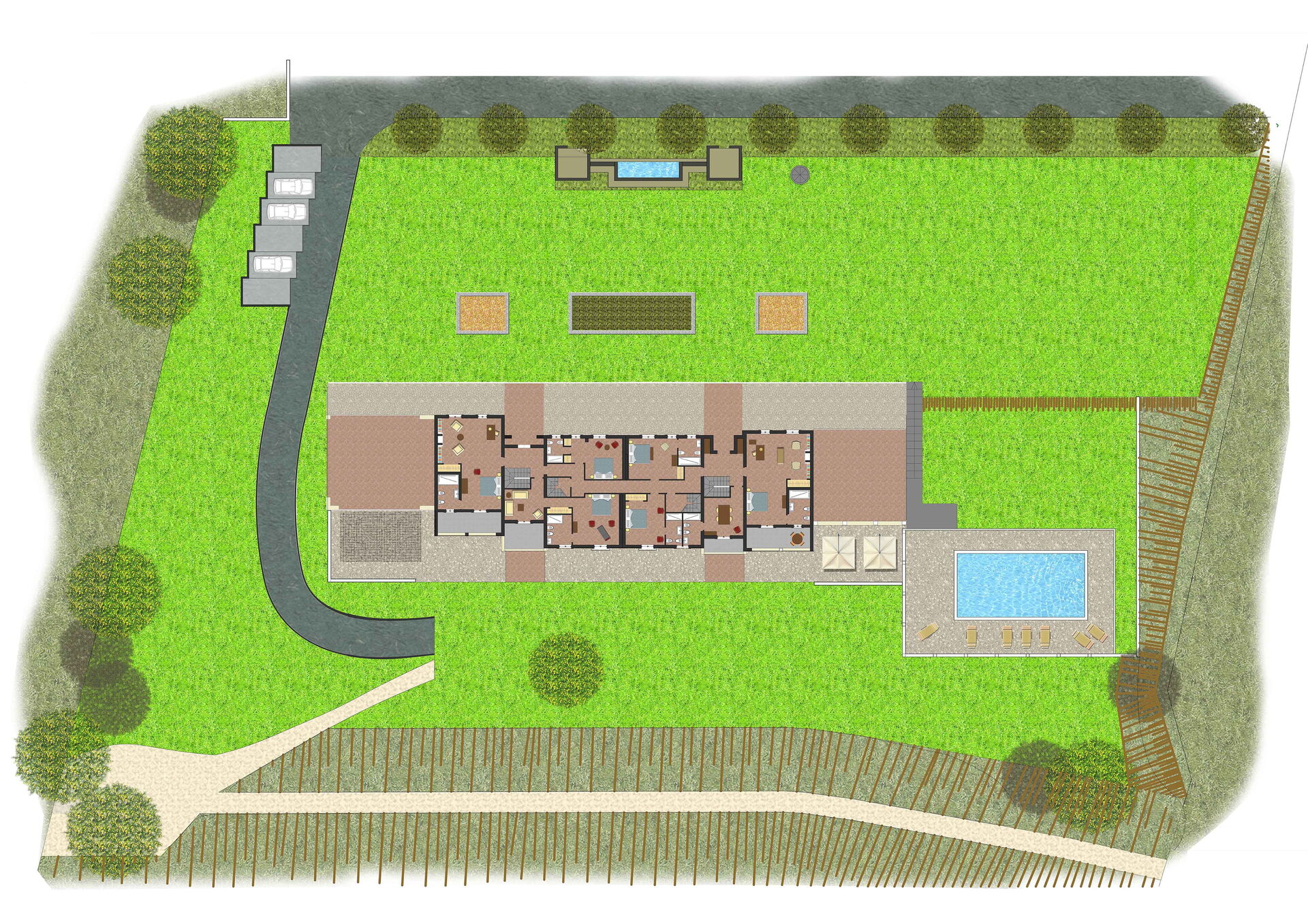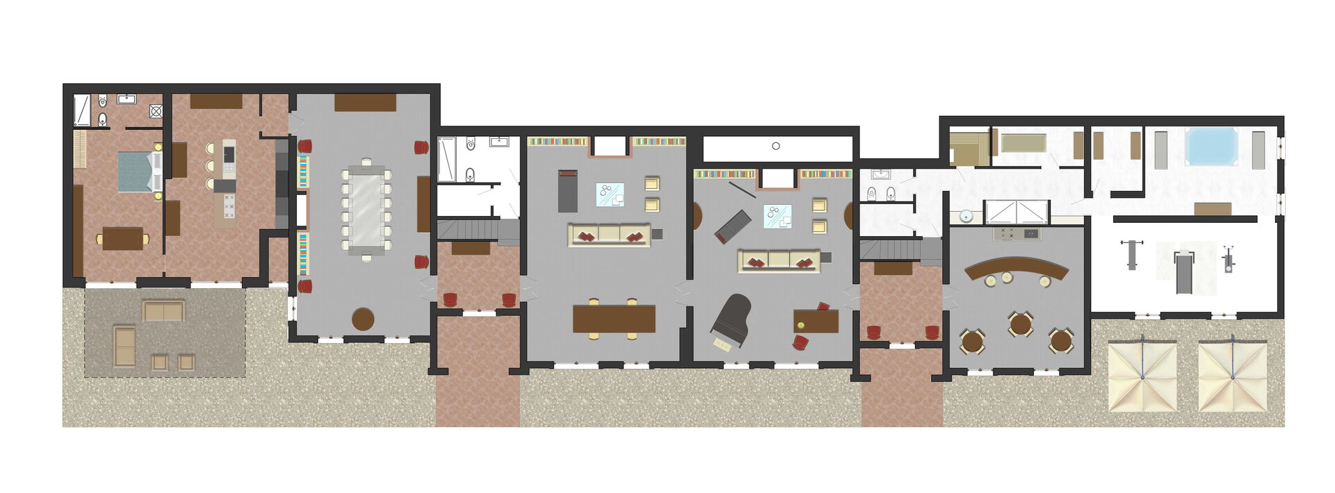 Met: keuken, 3 woonkamers, eetkamer, badkamer, wellness ruimte, servicekamer.