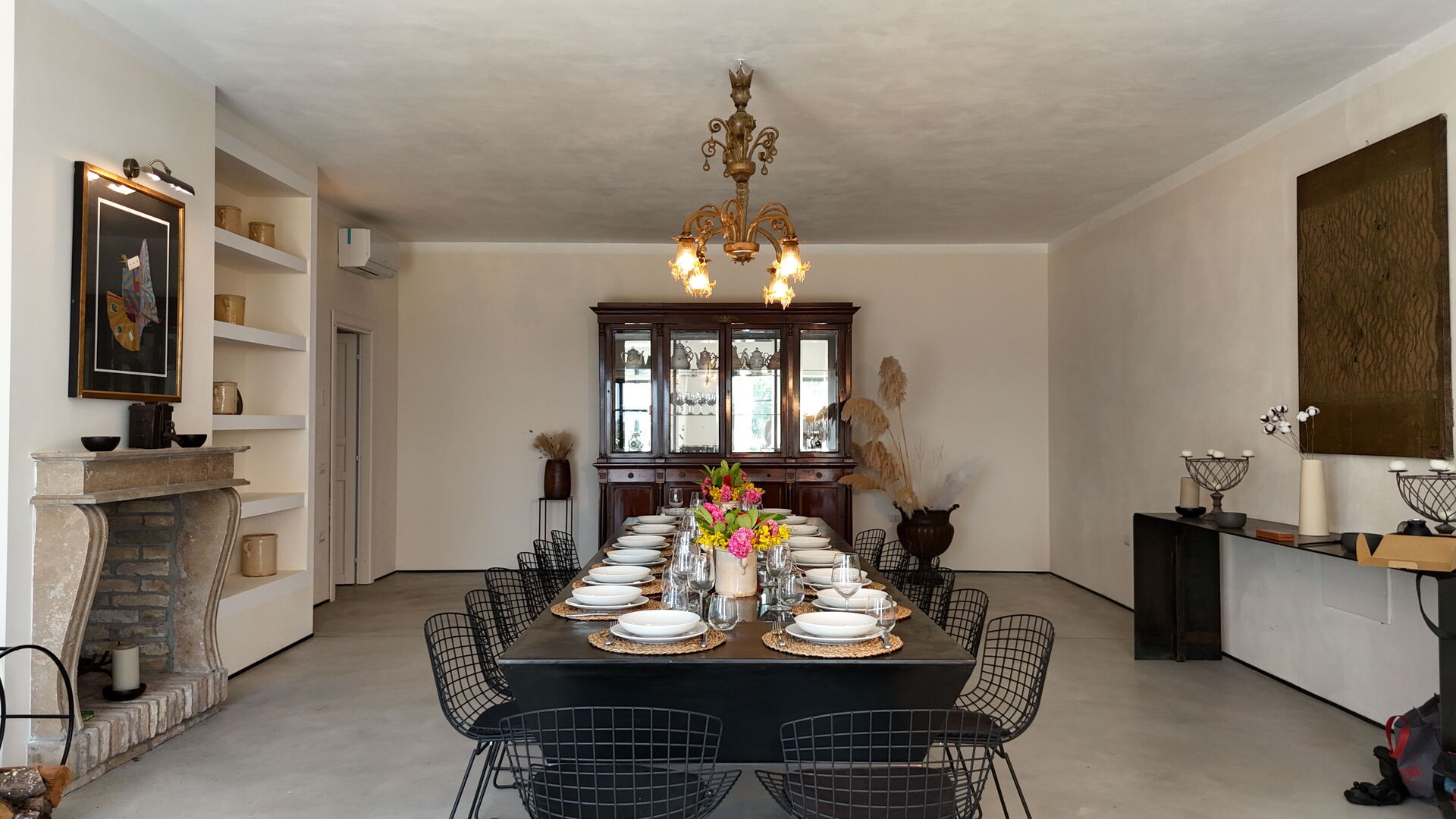 Eetkamer: eettafel (personen: 16), airconditioning, WIFI internet, uitgang naar de tuin.