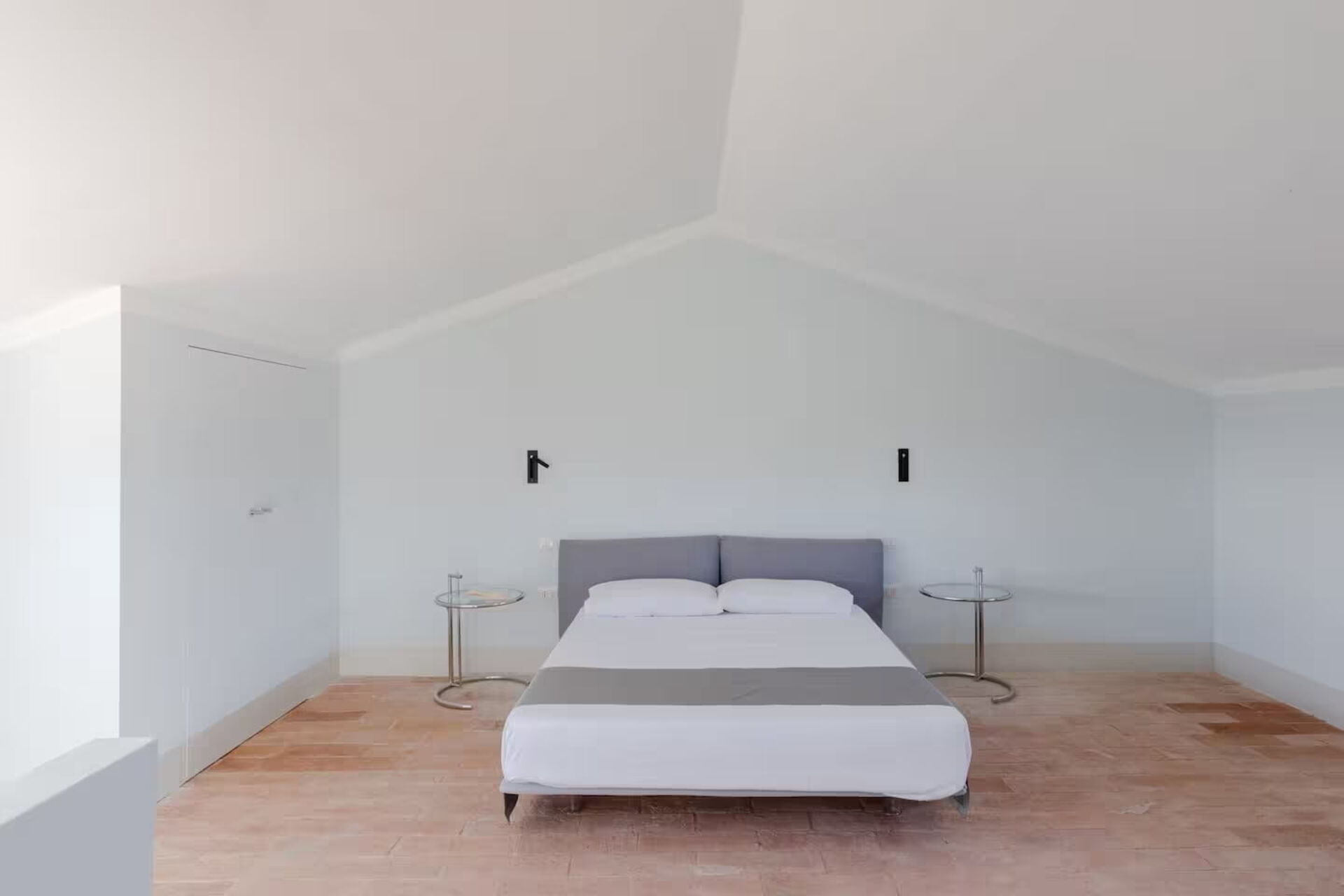 Slaapkamer met badkamer 1: tweepersoonsbed, WIFI internet, airconditioning, open haard, wastafel, toilet , bidet, douche, haardroger, uitgang naar het balkon.