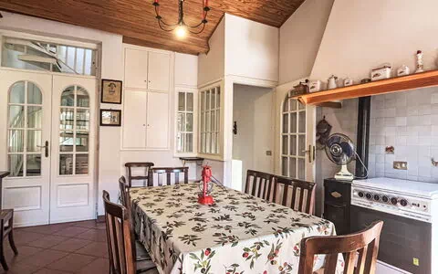 "Gionni", huis 4-kamers 95 m2 op 2 verdiepingen. Doelmatig en gezellig ingericht: woon-/eetkamer met eettafel. Bad/bidet/WC. Bovenverdieping: (wenteltrap), 1 kamer met 1 2-pers bed (1 x 160 cm, lengte 200 cm). 1 kamer met 1 x 2 stapelbedden (90 cm, lengte 200 cm). Woonkeuken (oven, Gasfornuis, 4 kookpitten (vlammen), broodrooster, waterkoker, diepvriezer, elektrische koffiemachine) met eettafel, houtkachel. Douche/WC. Geen verwarmingsmogelijkheid. Terras 12 m2. Terrasmeubelen. Panoramazicht op de bergen en de plaats. Ter beschikking: wasmachine, kinderbed. Internet (WiFi, gratis). Privé ingang, rookmelders, brandblusser. IT008041B5T89FWTDQ