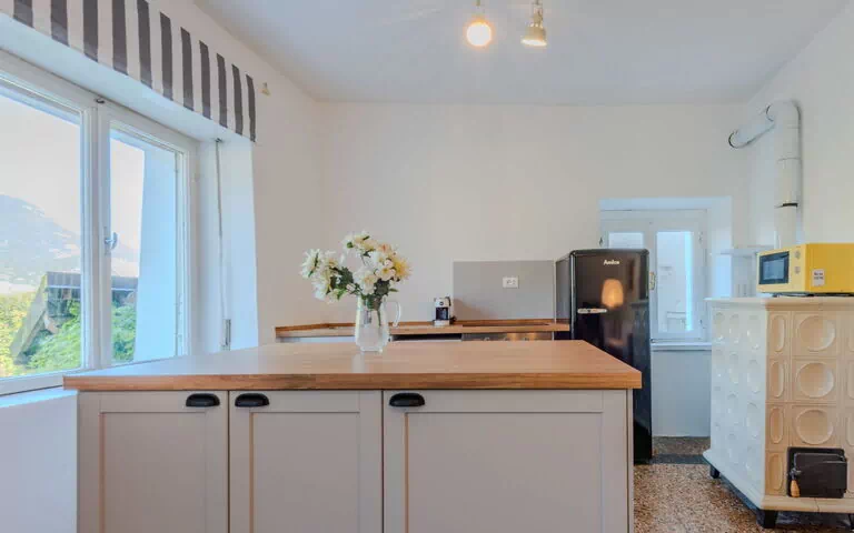 "Maier", huis 5-kamers 150 m2 op 2 verdiepingen. Ruim en licht, gedeeltelijk gerenoveerd in 2025, rustiek en gezellig ingericht: hal. Douche/WC. Geen verwarmingsmogelijkheid. Bovenverdieping: woon-/eetkamer met zwedenkachel (alleen decoratie), TV. Uitgang naar het terras. 1 2-pers. kamer. (afwasmachine, 4 inductiekookplaten, broodrooster, waterkoker, magnetron, elektrische koffiemachine) met eettafel. Douche/WC. Geen verwarmingsmogelijkheid. 2e Verdieping: 3 2-pers. kamers. Comfortabele inrichting in landelijke stijl. Groot terras 30 m2. Zitgelegenheid. Mooi panoramazicht op de bergen en de plaats. Ter beschikking: haardroger. Internet (WiFi, gratis). Parkeerplaats (omheind, 3 Auto's). 1 klein huisdier/hond toegestaan. Privé ingang, brandblusser, geen lift. IT022006C26TBW32YO