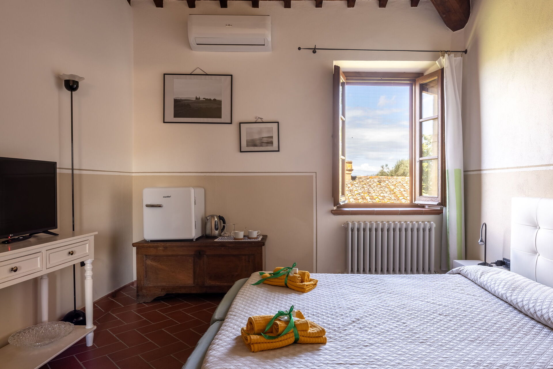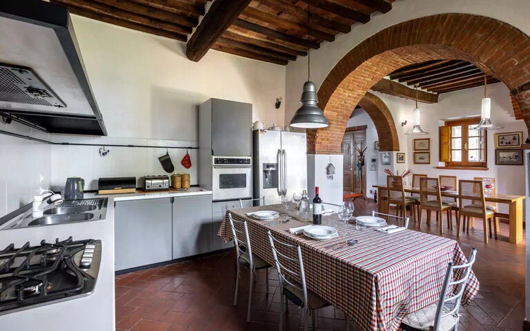 Bij aankomst wordt u ontvangen door de eigenaar of beheerder en vindt u een fijne, schone en goed onderhouden woning met uitzicht over de heuvels ideaal voor een rustige vakantie in Toscane. Voor uw vermaak vindt u een privé tuin waar u kunt ontspannen met een heerlijk koel drankje na een drukke dag toeren. Een groot voordeel van het huren van een huis, in plaats van meerdere hotelkamers, is de mogelijkheid om samen met familie en vrienden te ontspannen na een drukke dag van rondkijken en toeren. Geniet samen van een maaltijd met een glas lokale wijn om de dag af te sluiten. Eten met vrienden en familie is een grote onderdeel van de Toscaanse cultuur. Maak gebruik van de goed uitgeruste keuken om maaltijden te bereiden met lokale producten terwijl u op vakantie bent. De keuken biedt o.a. een koffiezetapparaat, magnetron oven, broodrooster, fornuis en ijskast, en natuurlijk ook voldoende servies en bestek voor minstens acht personen.