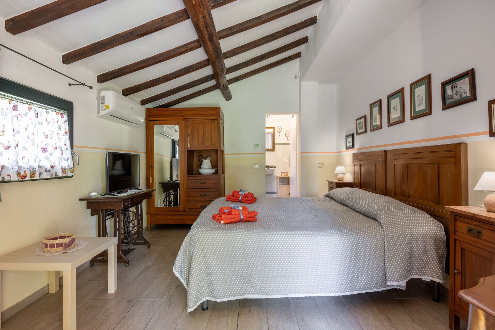 Slaapkamer met badkamer 2: tweepersoonsbed, WIFI internet, airconditioning, tv, ijskast, wastafel, toilet , bidet, douche, haardroger.