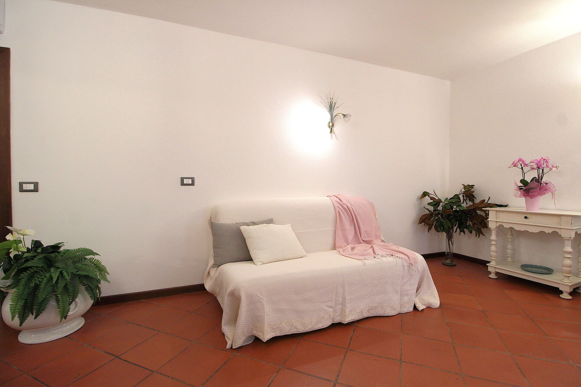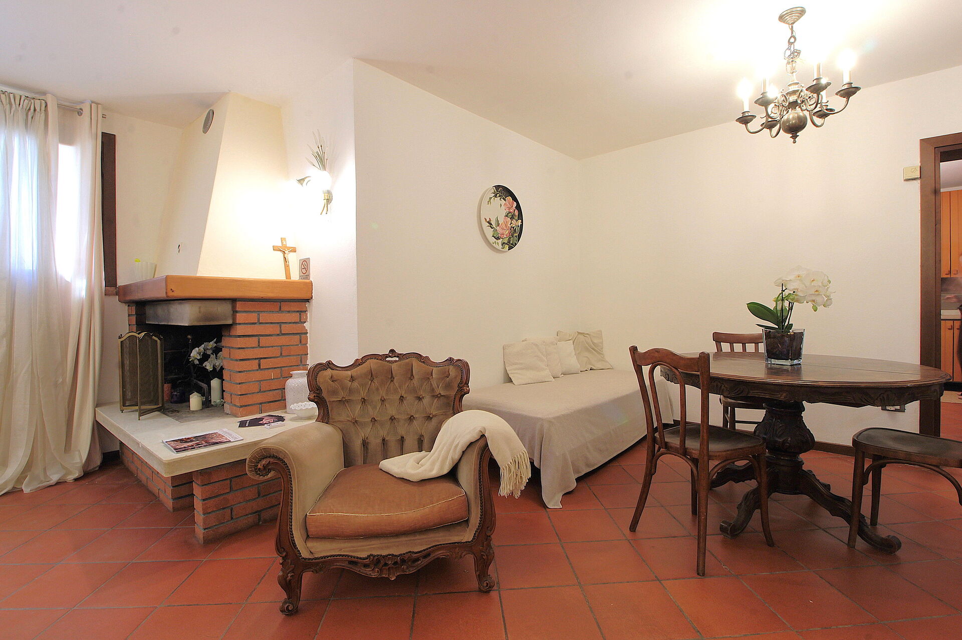 Woonkamer: bank, fauteuil, tweepersoons-slaapbank, WIFI internet, airconditioning.