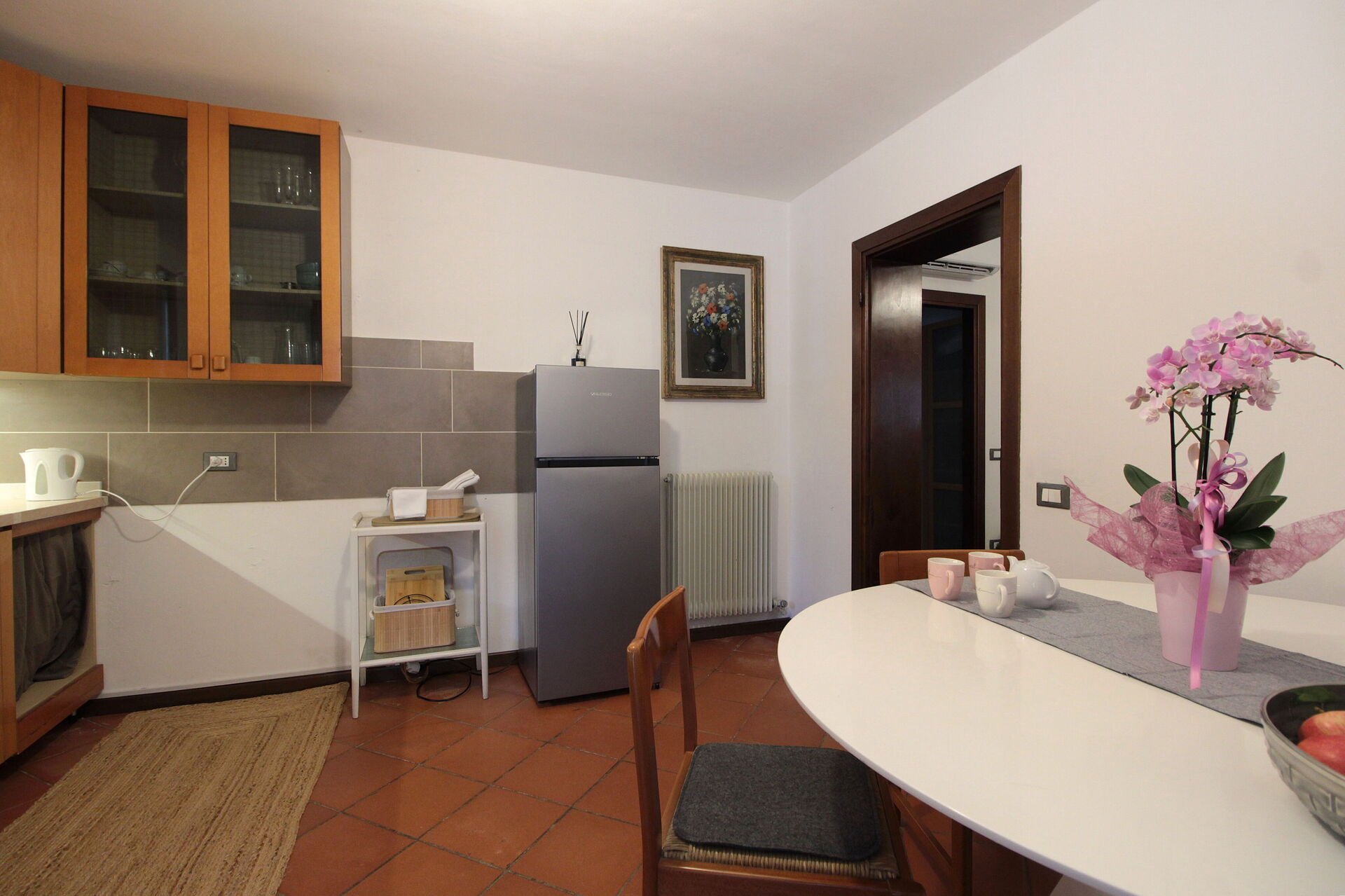 Wanneer u aankomt te Villa Rosa Apartment vindt u een fijne, schone en goed onderhouden woning perfect voor een rustige vakantie in Venetië. Voor uw vermaak vindt u een eigen tuin waar u kunt uitrusten met een heerlijk koel drankje na een drukke dag toeren. Een groot voordeel van het huren van een huis, in plaats van meerdere hotelkamers, is de mogelijkheid om samen met familie en vrienden te ontspannen na een drukke dag van rondkijken en toeren. Geniet samen van een maaltijd met een glas lokale wijn om de dag af te sluiten. Eten met vrienden en familie is een grote onderdeel van de Italiaanse cultuur. Maak gebruik van de goed uitgeruste keuken om maaltijden te bereiden met lokale producten terwijl u op vakantie bent. De keuken biedt o.a. een koffiezetapparaat, fornuis en ijskast, en natuurlijk ook voldoende servies en bestek voor minstens drie personen.