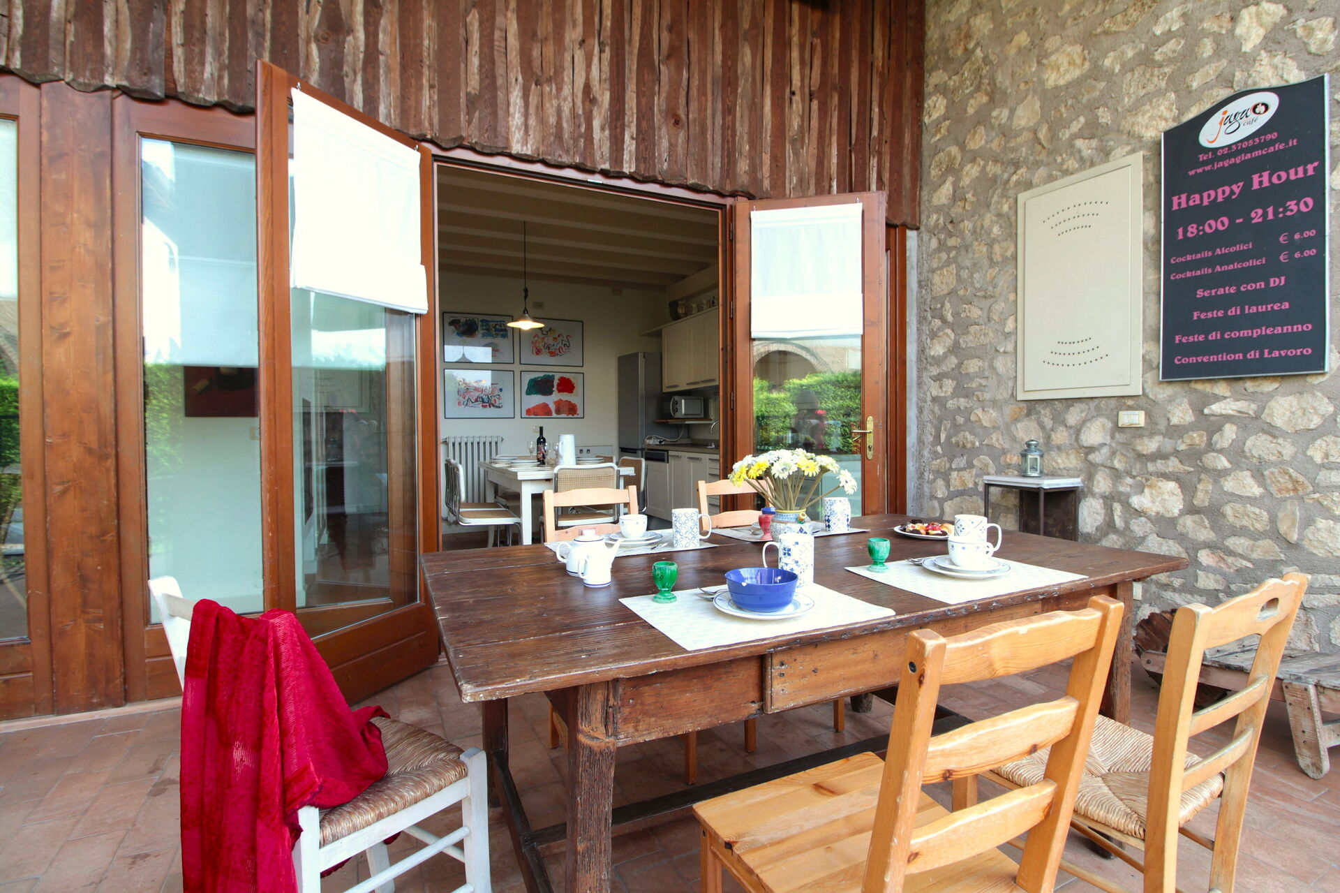 Keuken: goed uitgeruste keuken, eettafel, vaatwasser, ijskast, diepvriezer, magnetron, kookplaat, oven, italiaans koffiezetapparaat, wasmachine, WIFI internet, uitgang naar de tuin.