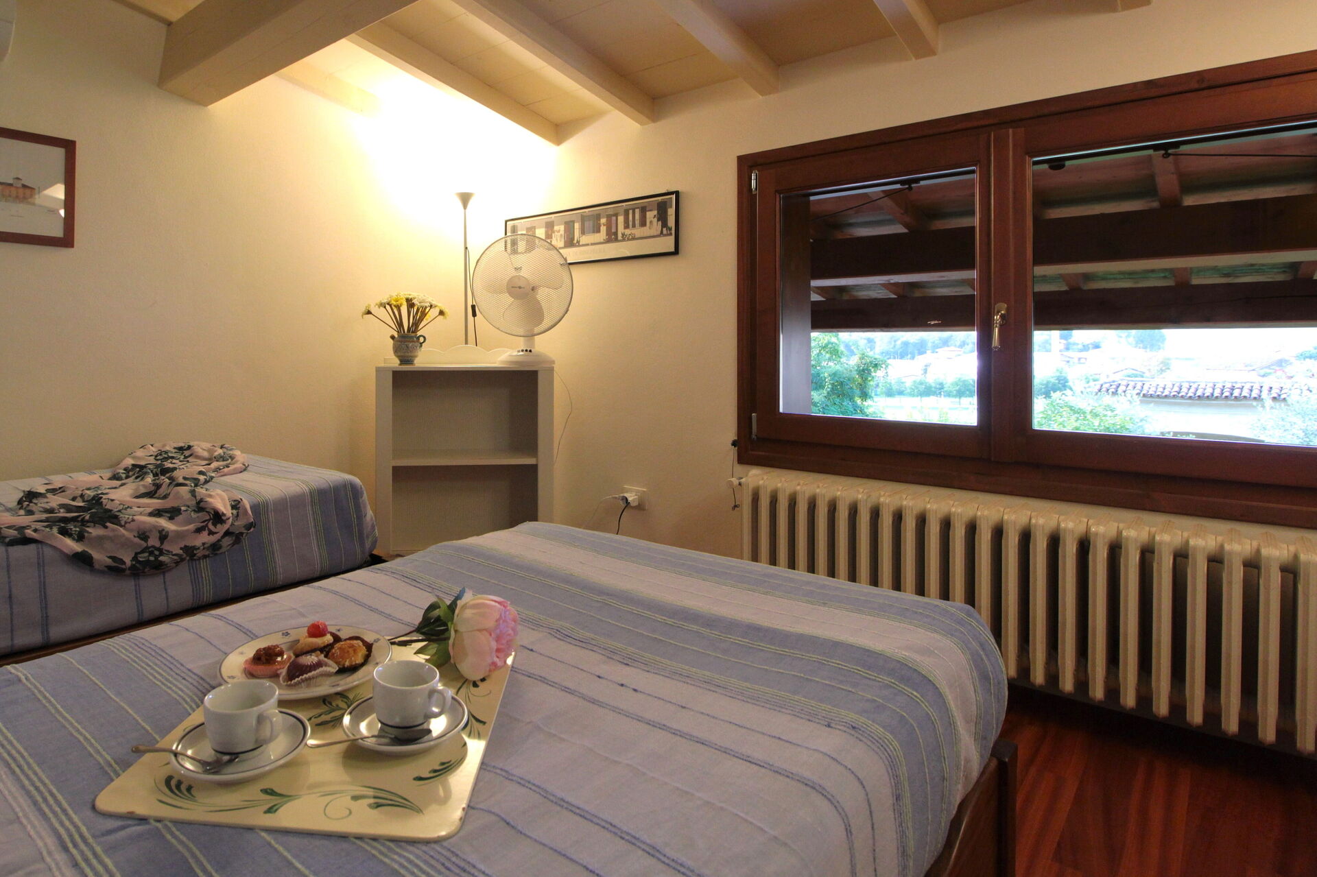 Slaapkamer 2: twee eenpersoonsbedden, ventilator.