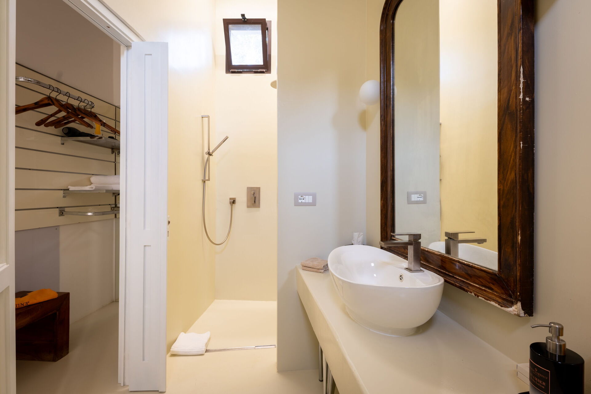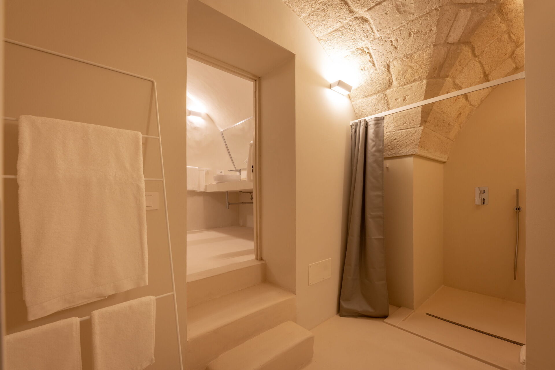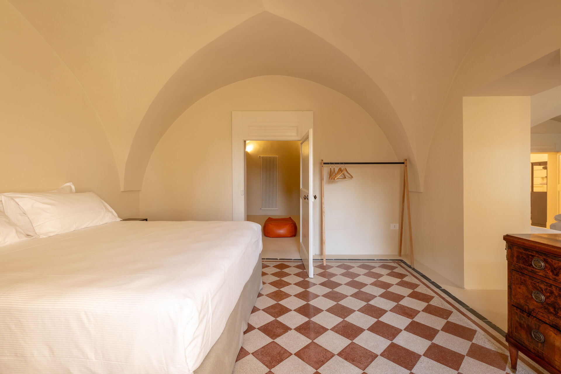 Casa Corte is the annex of the Palazzo, which enjoys total privacy because, in addition to the double bedroom and bathroom, it also has a small kitchenette with a hob, sink, and refrigerator, as well as a microwave, kettle, and Nespresso machine with capsules, and all the necessary equipment for quick lunches or dinners. A small outdoor pool with a comfortable sunbathing area and a terrace at the top of the building complete the spaces of this quiet and secluded corner. Outside, there is a barbecue area, outdoor shower, sofas, and dining table.