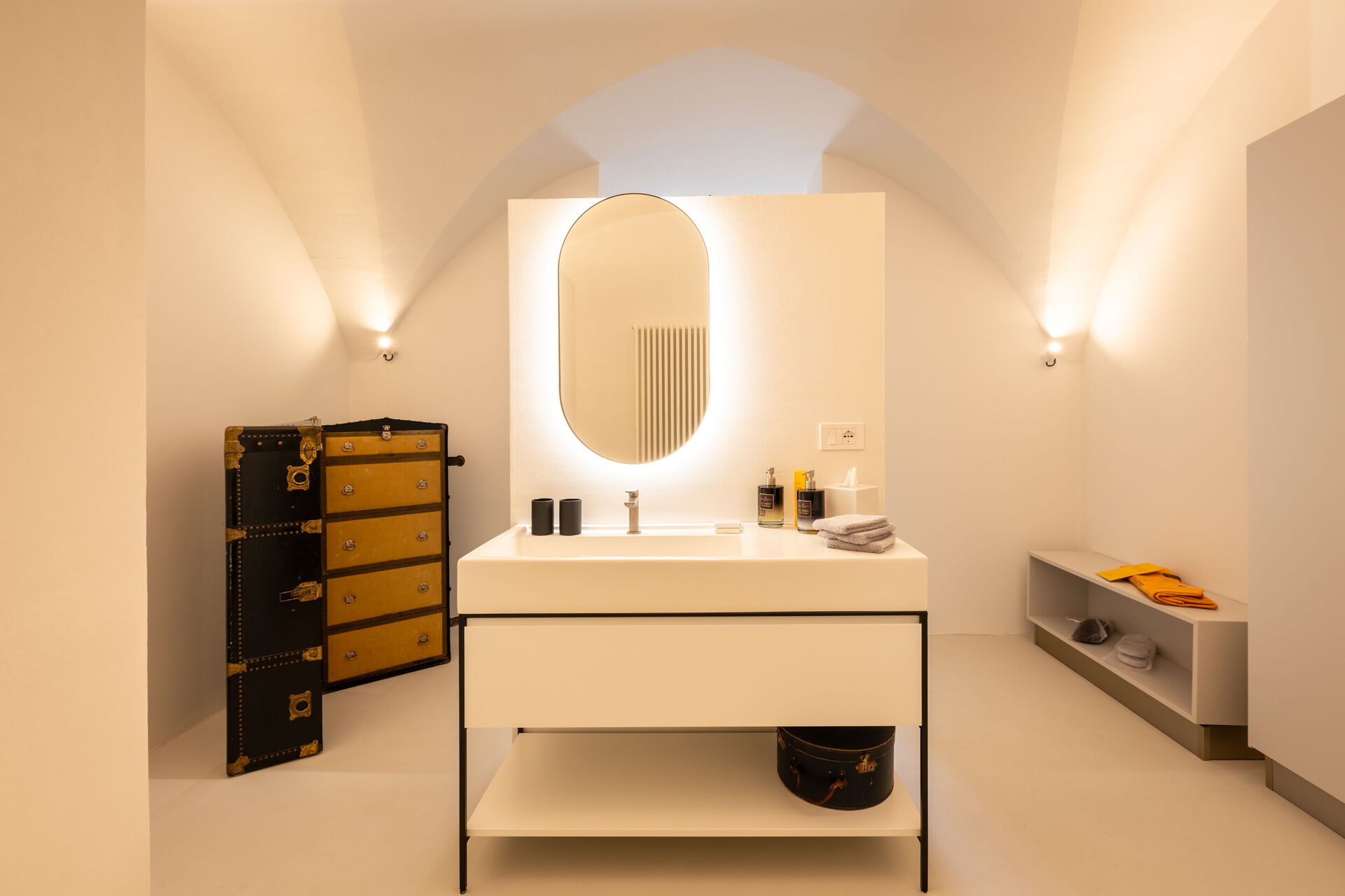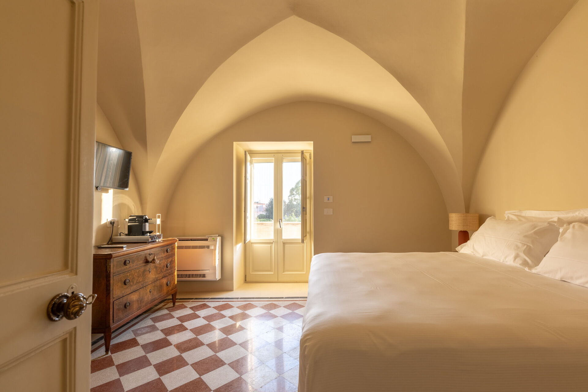 Casa 4 Venti is a peaceful retreat nestled in the heart of the garden, designed for quiet reading or simple relaxation. With its vaulted stone ceilings and natural light streaming in through large windows, this cozy space offers a serene atmosphere where time slows down and nature gently becomes part of the experience.