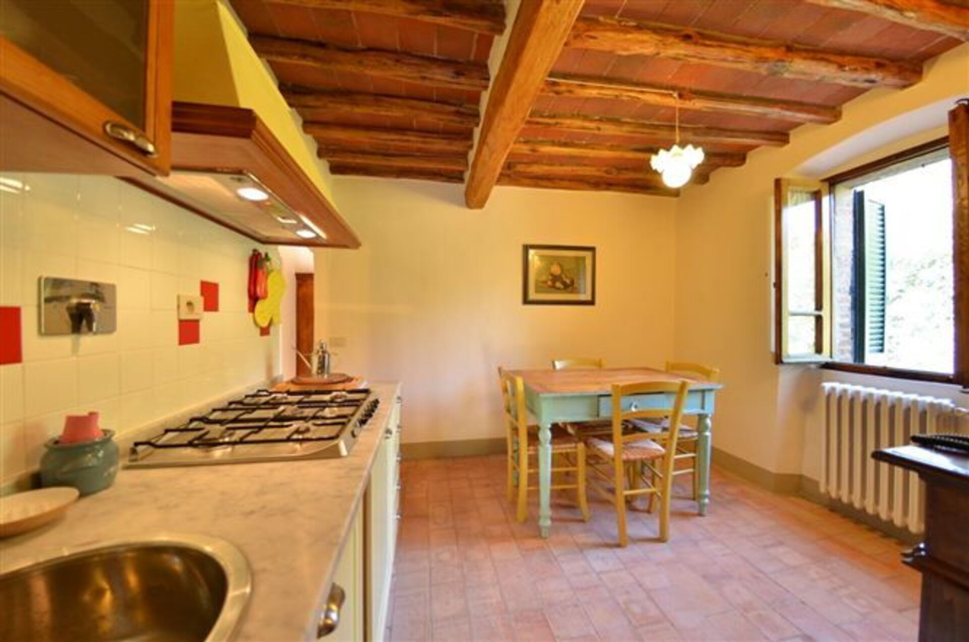 Zodra u aankomt te Fattoria Gaiole in Chianti vindt u een fraaie, schone en goed onderhouden woning met uitzicht over de heuvels ideaal voor een rustige vakantie in Toscane. Voor uw vermaak vindt u een privé zwembad waar u kunt ontspannen terwijl u geniet van een heerlijk koel drankje na een drukke dag musea bezoeken. Eten met vrienden en familie is een grote onderdeel van de Toscaanse cultuur. Maak gebruik van de goed uitgeruste keuken om maaltijden te bereiden met lokale producten terwijl u op vakantie bent. De keuken biedt o.a. een koffiezetapparaat, magnetron oven, fornuis en ijskast, en natuurlijk ook voldoende servies en bestek voor minstens 13 personen.