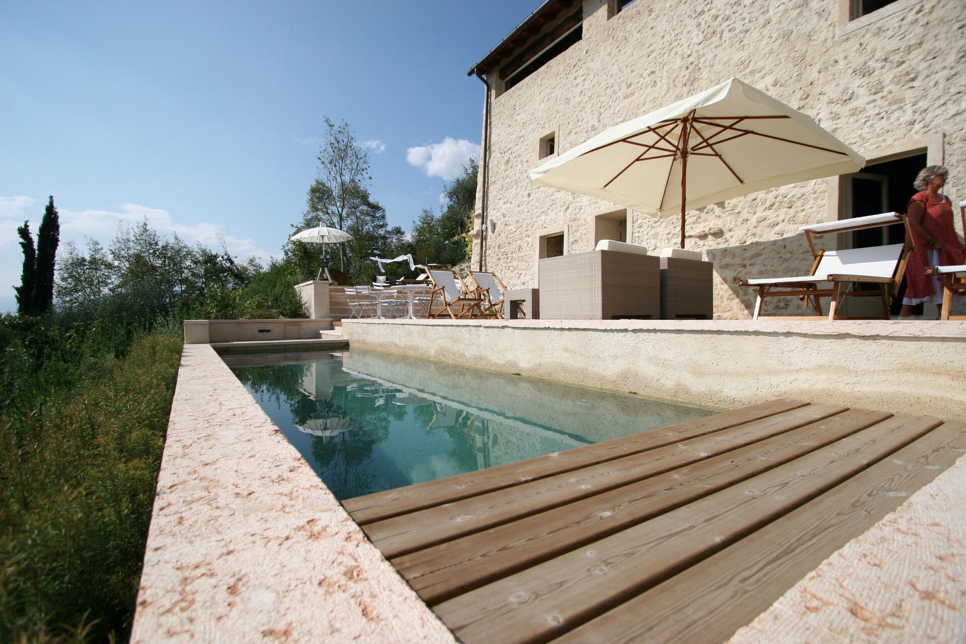 De villa is uitgerust met airconditioning in de woonkamer en slaapkamers, wat uw comfort tijdens uw vakantie garandeert. Verwarming is beschikbaar via centrale verwarming, die warmte biedt tijdens koelere maanden. De uitgestrekte woonkamer beschikt over een functionele open haard, wat bijdraagt aan de verfijnde ambiance van het pand. Entertainmentopties omvatten satelliettelevisie, een televisietoestel en een cd-speler stereosysteem. De moderne keuken is volledig uitgerust met een vaatwasser, magnetron, fornuis, grote koelkast en oven, waarmee aan al uw culinaire behoeften wordt voldaan. De wasruimte op de tweede verdieping is voorzien van een wasmachine en droger. U zult genieten van het buitenleven op de privépatio en het panoramische terras, uitgerust met ligstoelen en parasols, die een ideale setting bieden voor ontspanning en dineren in de buitenlucht terwijl u geniet van het prachtige uitzicht over de vallei. Een barbecue is beschikbaar voor uw gebruik. Het pand beschikt over een privétuin van 5 hectare, of 12 acre, die optimaal profiteert van de verheven heuvellocatie om een uitzonderlijk panoramisch uitzicht te bieden. De luxe badkamer van de master bedroom beschikt over een jacuzzi-bad van Vicenza-steen. Snelle ADSL WIFI-internetverbinding is beschikbaar in het gehele pand, en u profiteert van een beveiligingssysteem voor uw gemoedsrust.