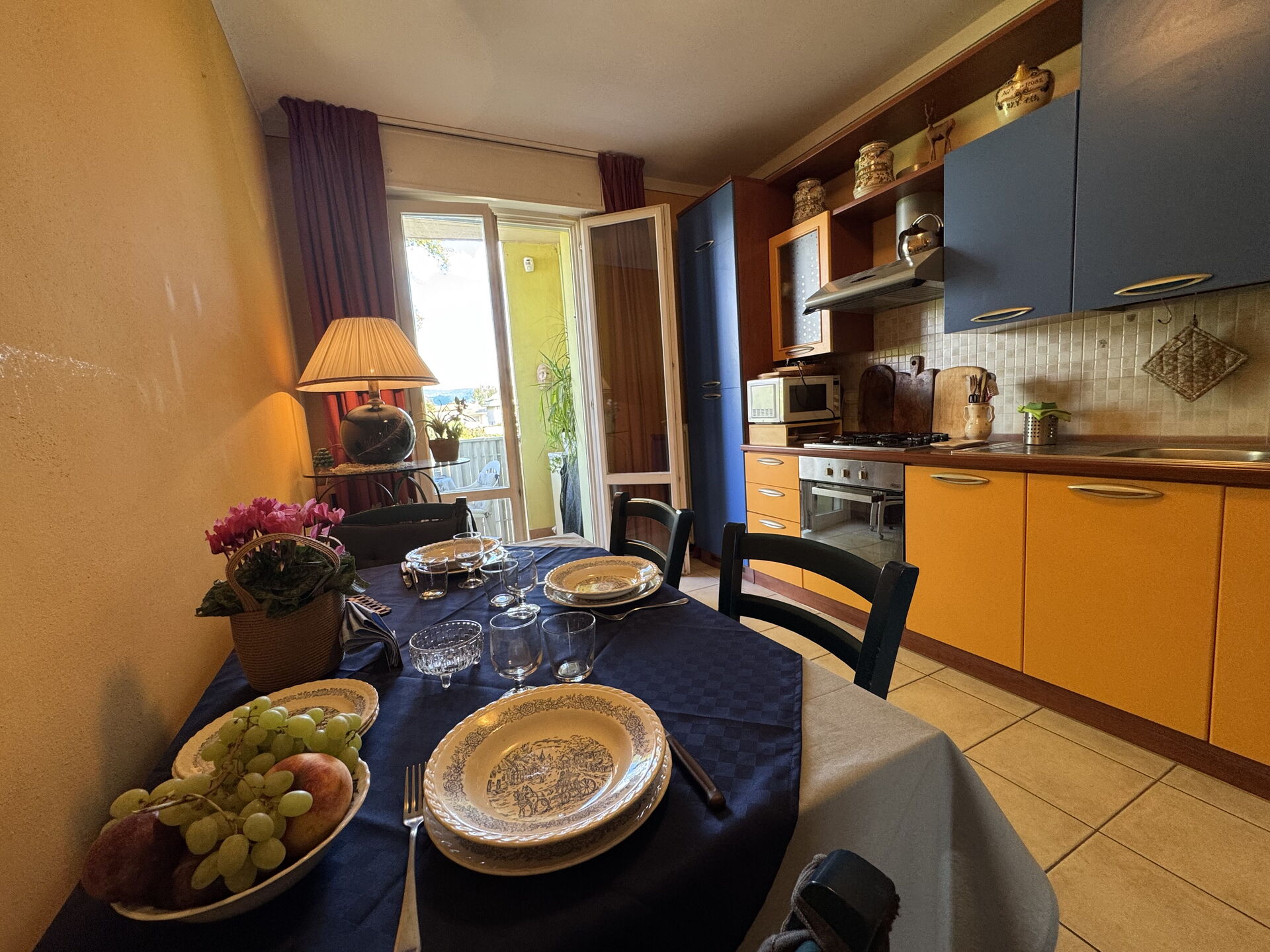 Keuken – woonkamer: goed uitgeruste keuken, ijskast, diepvriezer, magnetron, kookplaat, oven, broodrooster, strijkijzer, italiaans koffiezetapparaat, koffiezetapparaat, slaapbank, WIFI internet, airconditioning, tv.