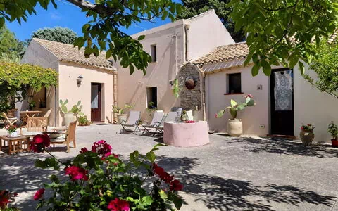 Woonboerderij "Grande Baglio Anastè", 300 m boven zeeniveau, bouwjaar 1890, omgeven door velden. Huurobject bestaande uit hoofd-/ bijgebouw, 3.5 km van het centrum van Buseto Palizzolo, 7 km van het centrum van Fulgatore, 18 km van het centrum van Trapani, zonnige ligging, 12 km van zee, 18 km van het strand. Voor alleengebruik: terrein 1.000 m2, wilde tuin, boomgaard, openluchtzwembad (verhoogd) (8 x 4 m, 140 cm diepte, seizoensgebonden beschikbaarheid: 01.Apr. - 31.Okt.). Buitendouche, onderhoud zwembad door de eigenaar/tuinman. Levensmiddelenwinkel 2 km, supermarkt 5.5 km, restaurant 1 km, bushalte 19 km, treinstation "Trapani" 20 km, zandstrand "Cornino" 18 km. Attracties in de buurt: Saline di Trapani 19 km, Porto Aliscafi per Isole Egadi 20 km, Parco Archeologico di Segesta 20 km, Erice 22 km, San Vito lo Capo 33 km, Marsala 38 km. Wandelgebied Riserva Naturale dello Zingaro 24 km. Auto noodzakelijk. Eigenaar woont in apart huisgedeelte. De eigenaar heeft een hond. Het leidingswater heeft geen drinkwaterkwaliteit.