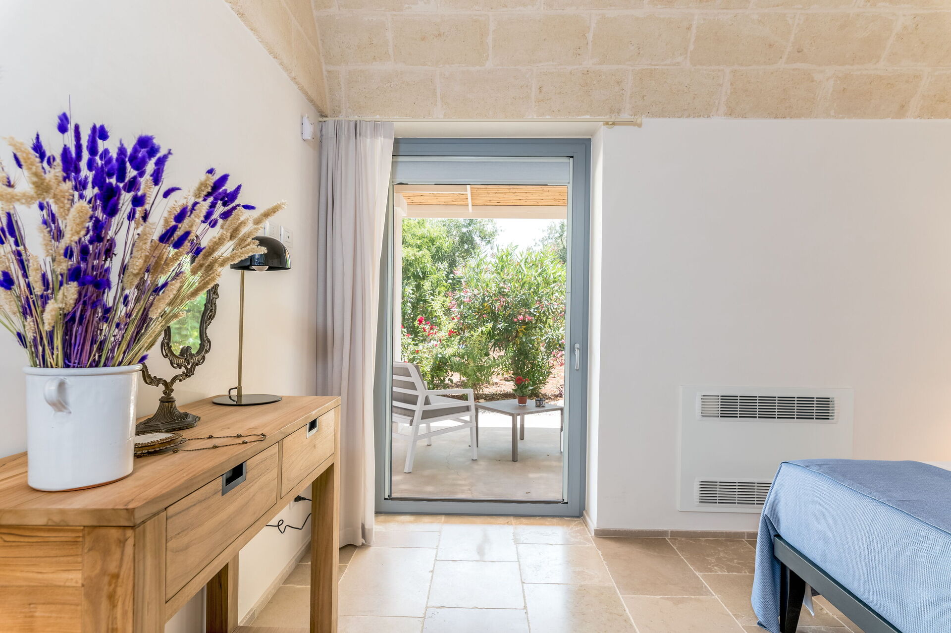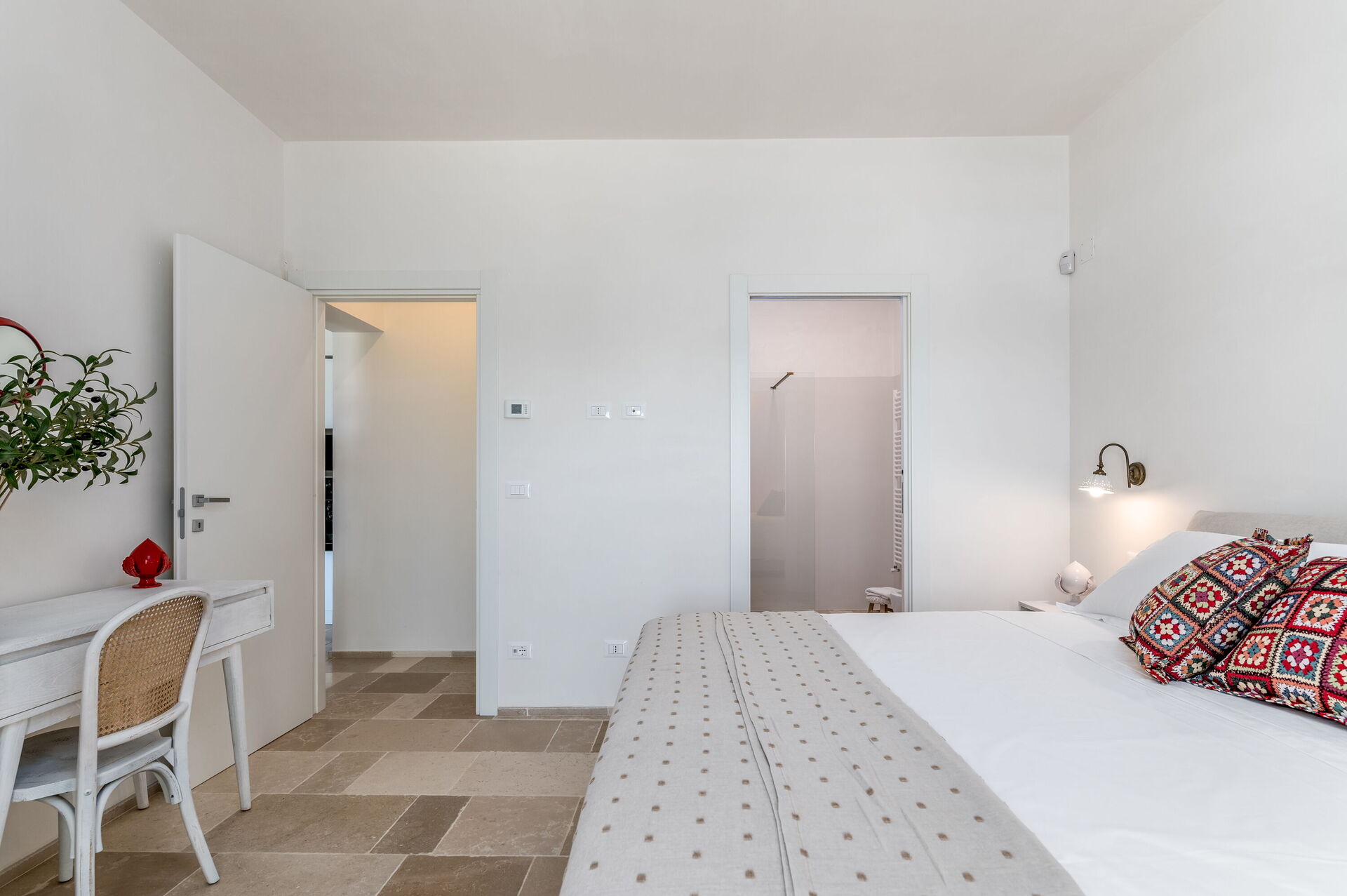 Slaapkamer met badkamer 1: king size bed, tweepersoonsbed, baby wieg, WIFI internet, airconditioning, hor, satelliet tv, tv, bureau, bidet, douche, haardroger, uitgang naar de tuin, uitgang naar de patio, uitgang naar de veranda.