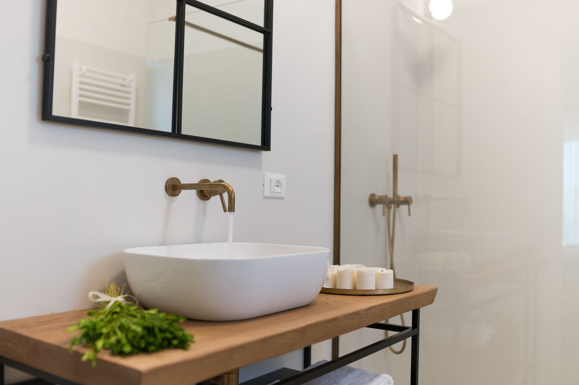 Badkamer: wastafel, wasdroger, wasmachine.