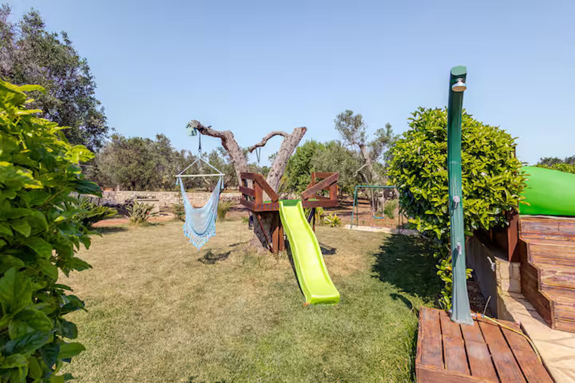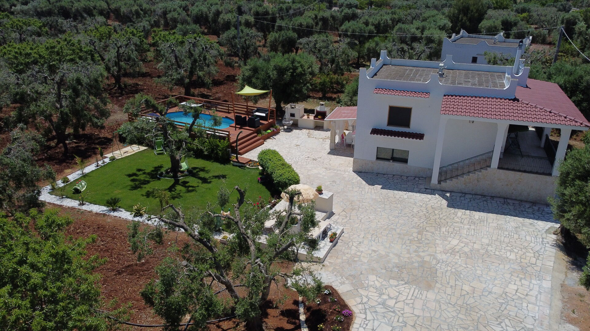 Bij aankomst te Villa Antony vindt u een mooie, schone en goed onderhouden woning perfect voor een ontspannen vakantie in Apulië. Hoe u de dagen ook doorbrengt - winkelen, musea bezoek, met excursies of rijdende door het prachtige landschap, zodra u thuis komt kunt u uitrusten samen met familie en vrienden bij het zwembad voor een perfecte afsluiting van nog weer een dag in Apulië. Ook zijn er buiten beschikbaar een jacuzzi, speeltuin, barbecue en terras. Als u van koken houdt is er een goed uitgeruste keuken met o.a. koffiezetapparaat, magnetron oven, broodrooster, fornuis en ijskast en natuurlijk voldoende servies en bestek voor tot acht personen. Als u liever buiten eet is er een veranda met tuinmebilair waar u van het weer kan genieten terwijl u buiten eet.