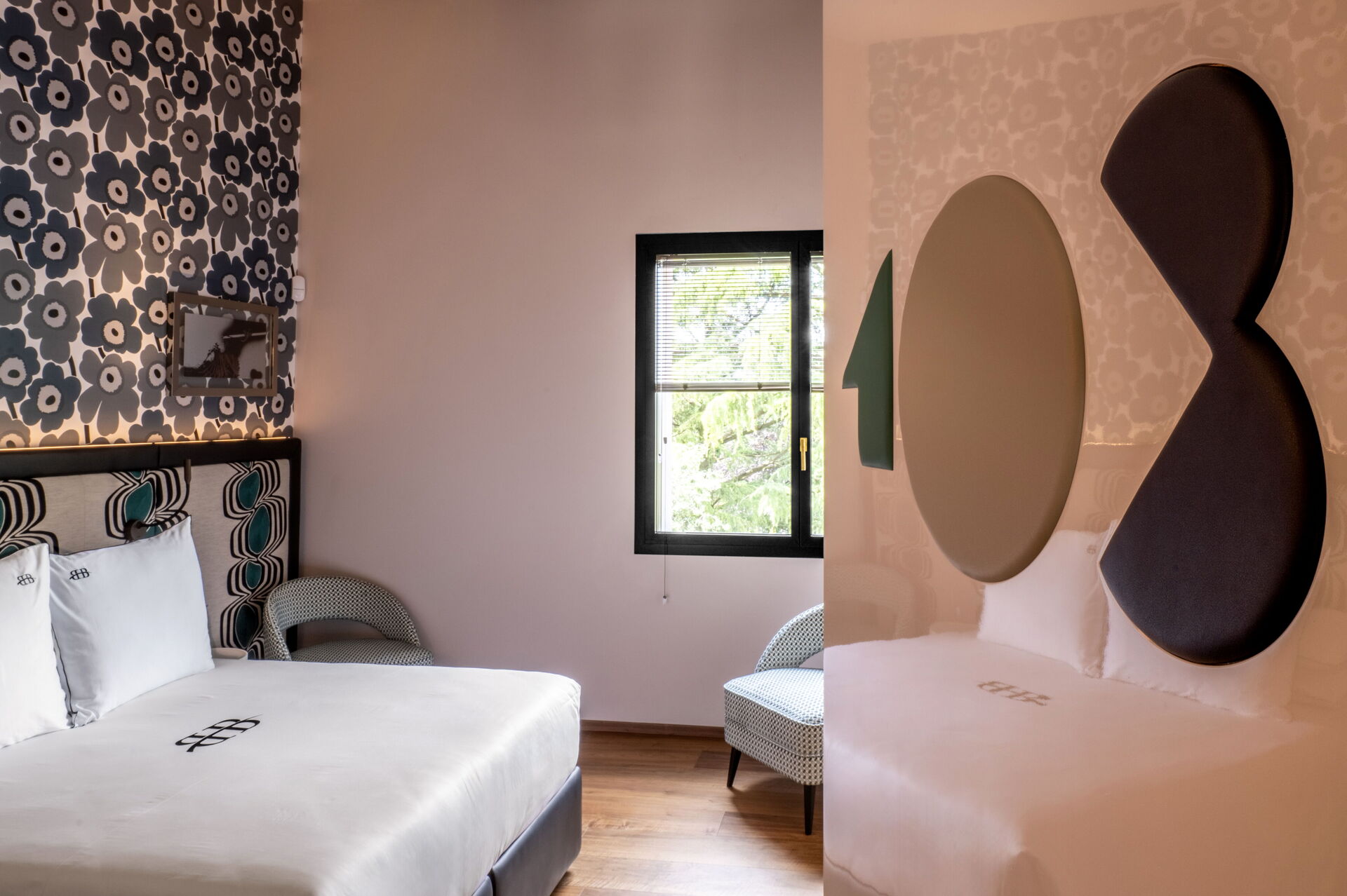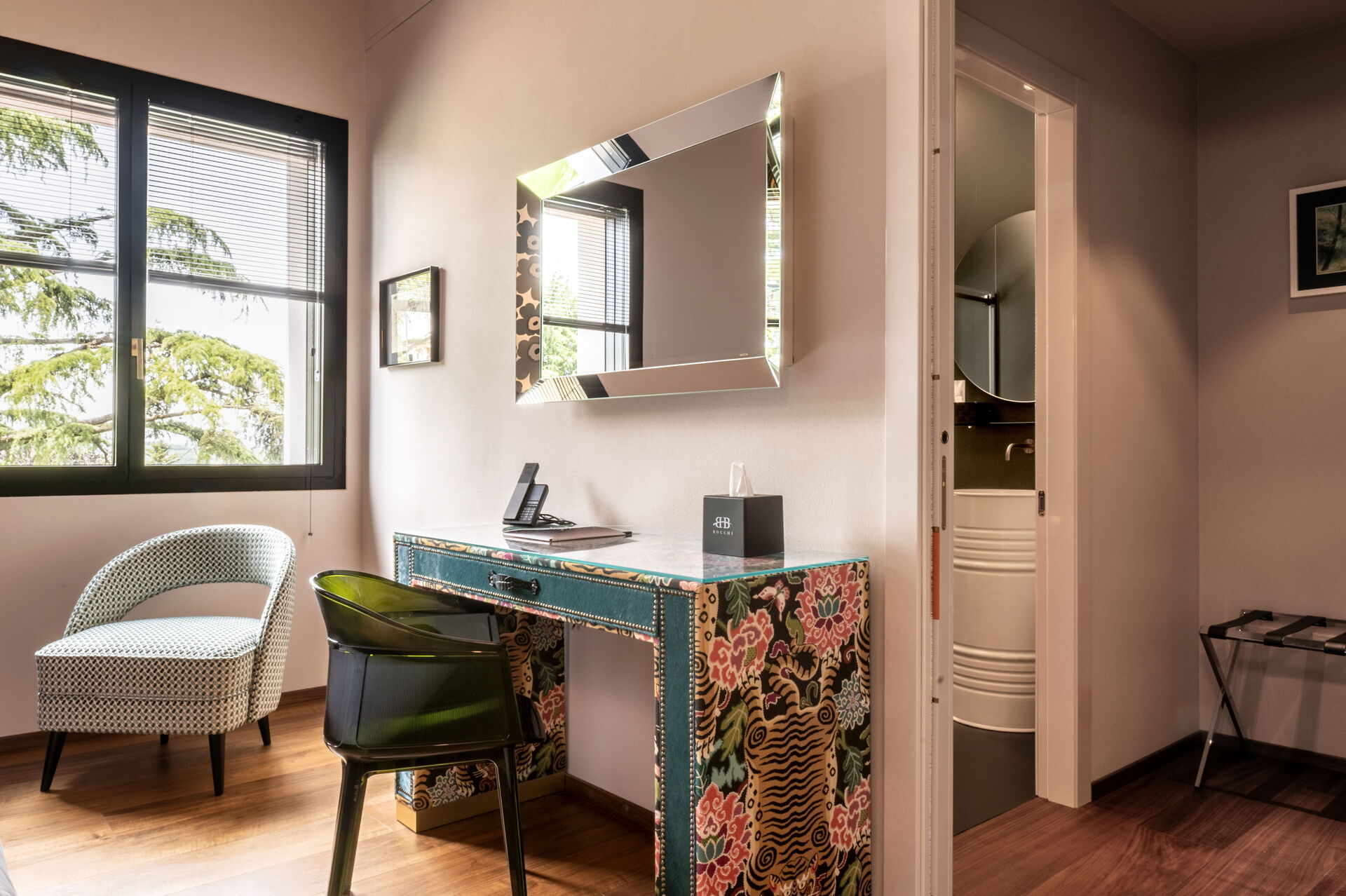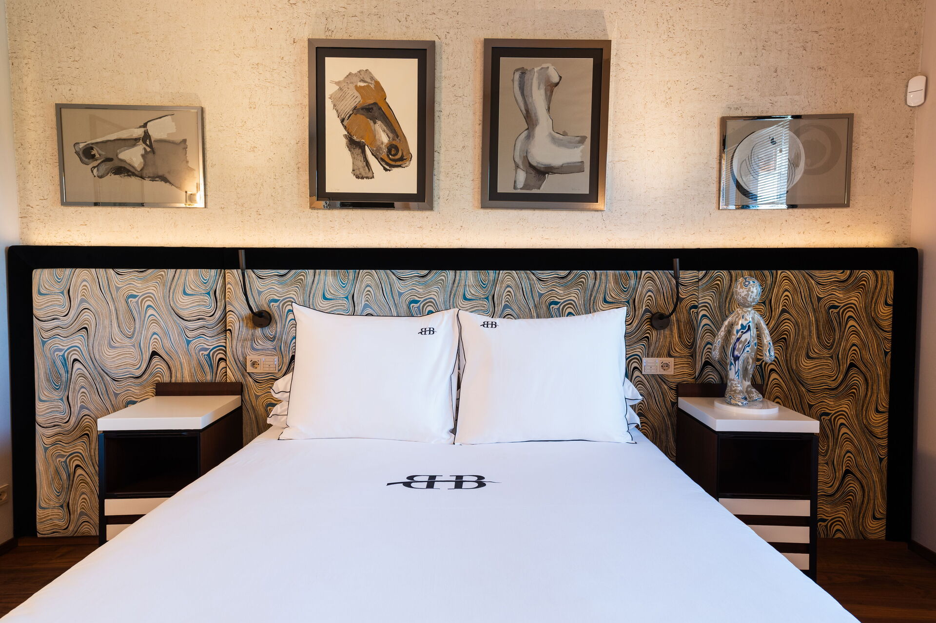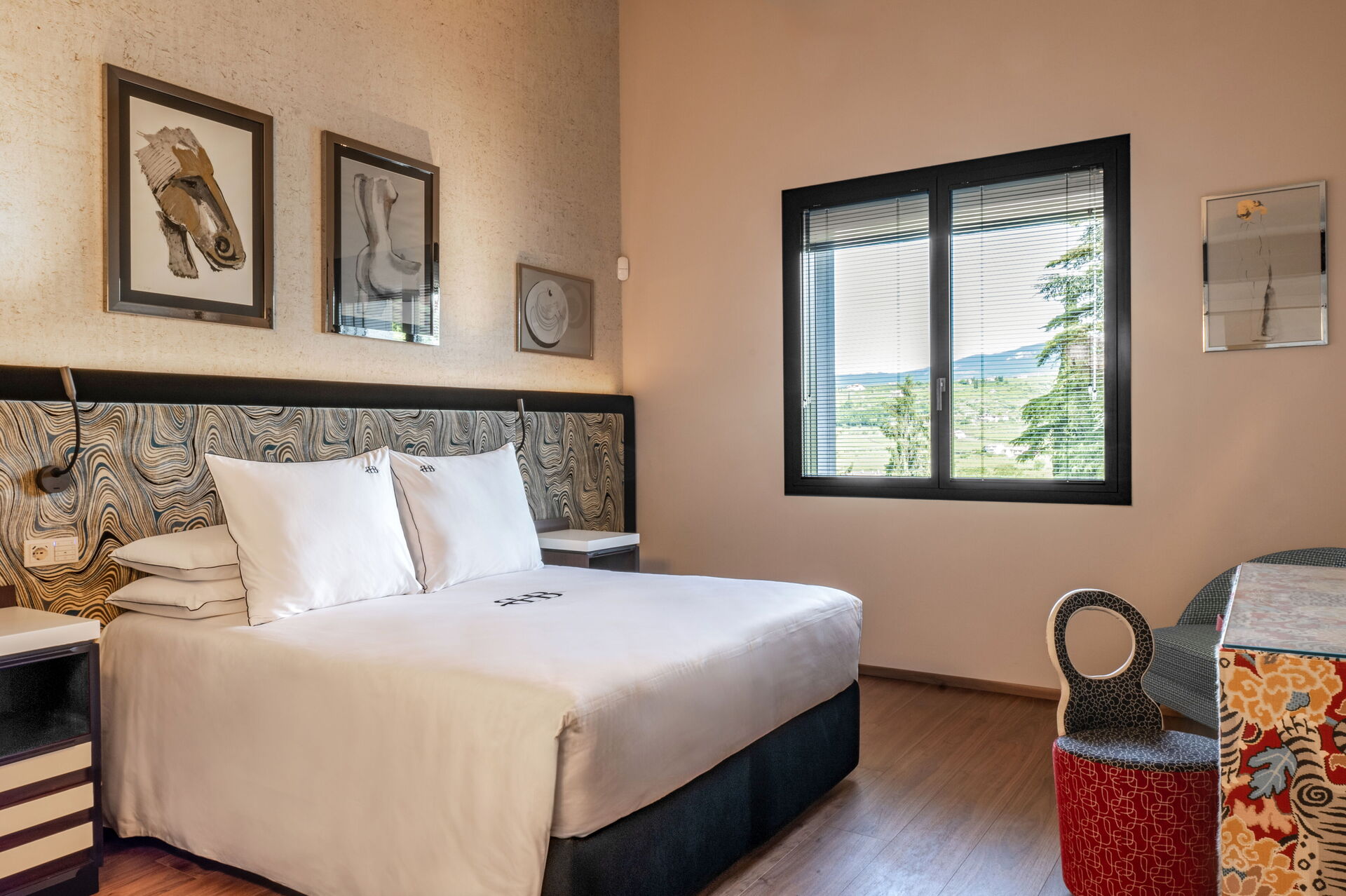 Slaapkamer met badkamer 4: tweepersoonsbed, WIFI internet, airconditioning, hor, satelliet tv, bureau, kluis, wastafel, toilet , bidet, douche, haardroger.