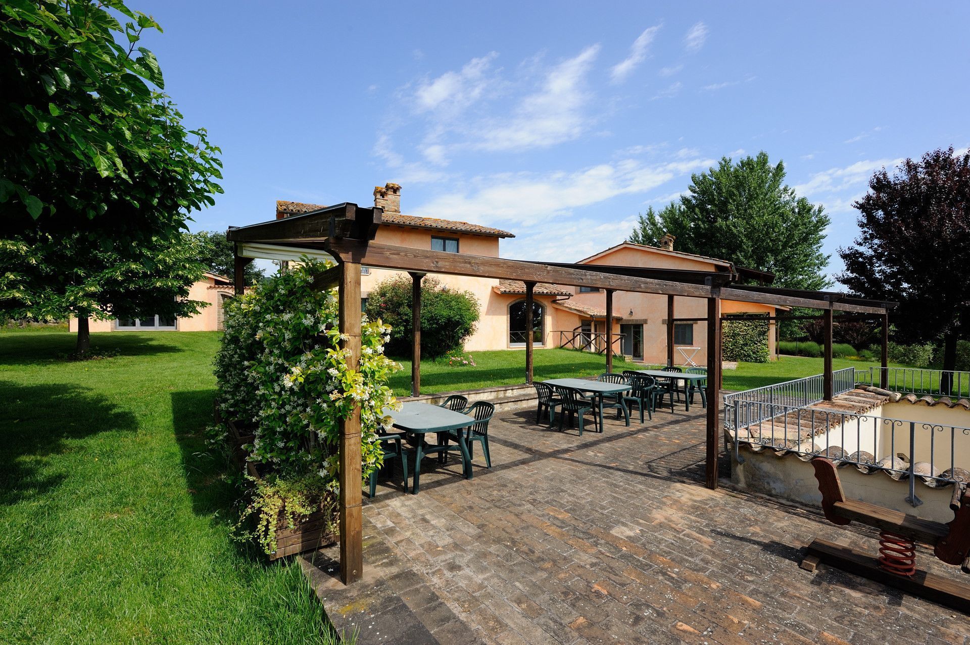 Direct access to a private portion of the 3000 sq. metres garden, with garden furniture for alfresco dining.