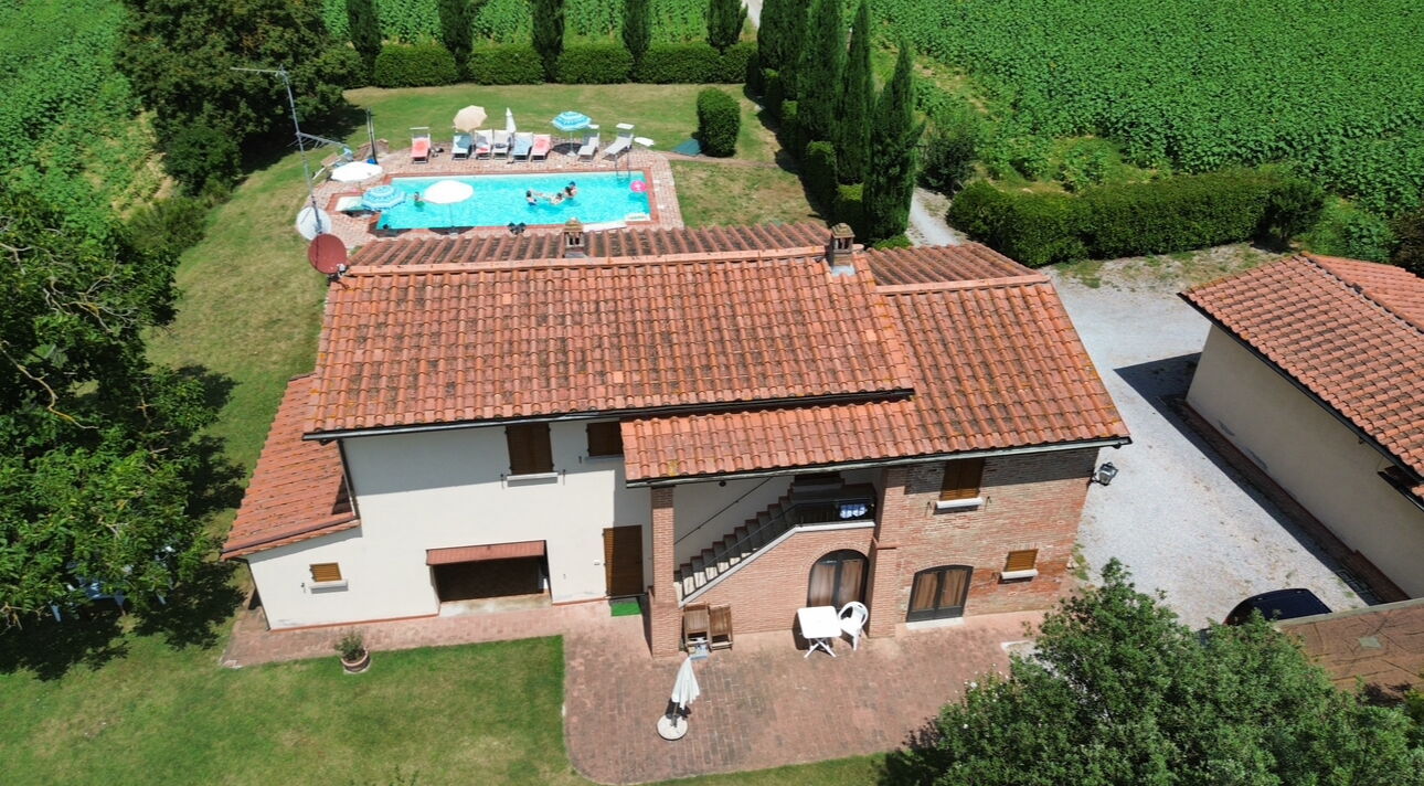 If you have imagined your holiday immersed in the Tuscan countryside, if your dream is to wake up in the morning, open the windows and find yourself surrounded by golden sunflowers and ears of corn, Il Viaggiolo is the house for you. From your windows, from the garden, from the swimming pool you will have, as far as the eye can see, cultivated fields, vineyards, olive groves and rolling hills that change colour with the seasons.