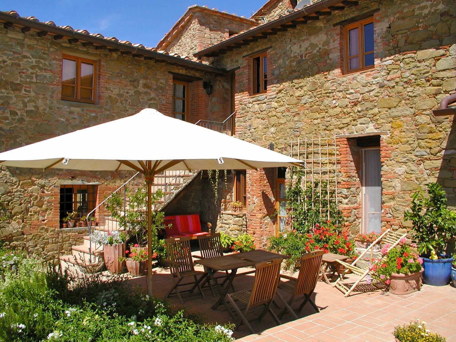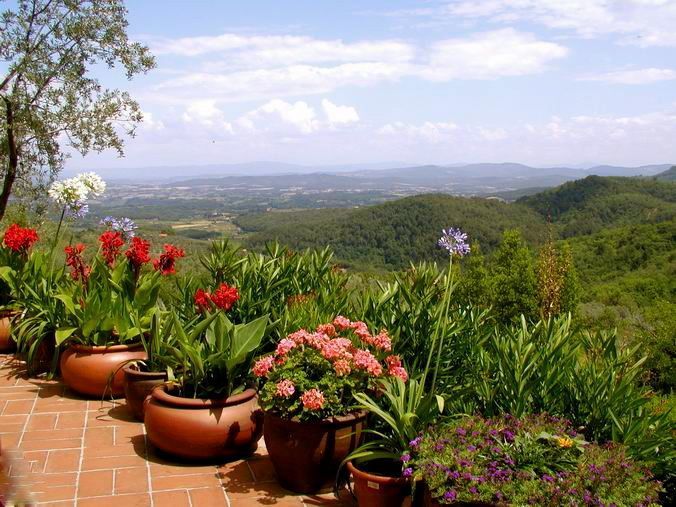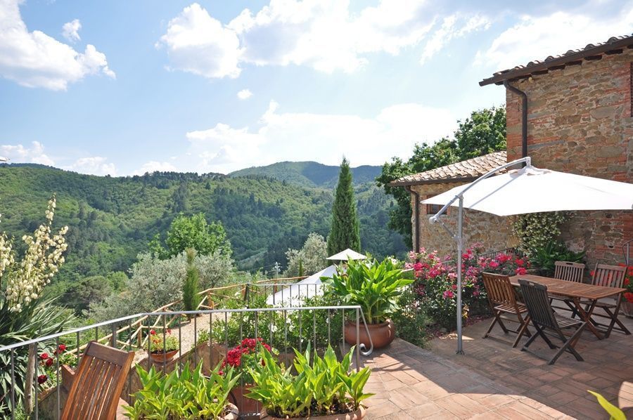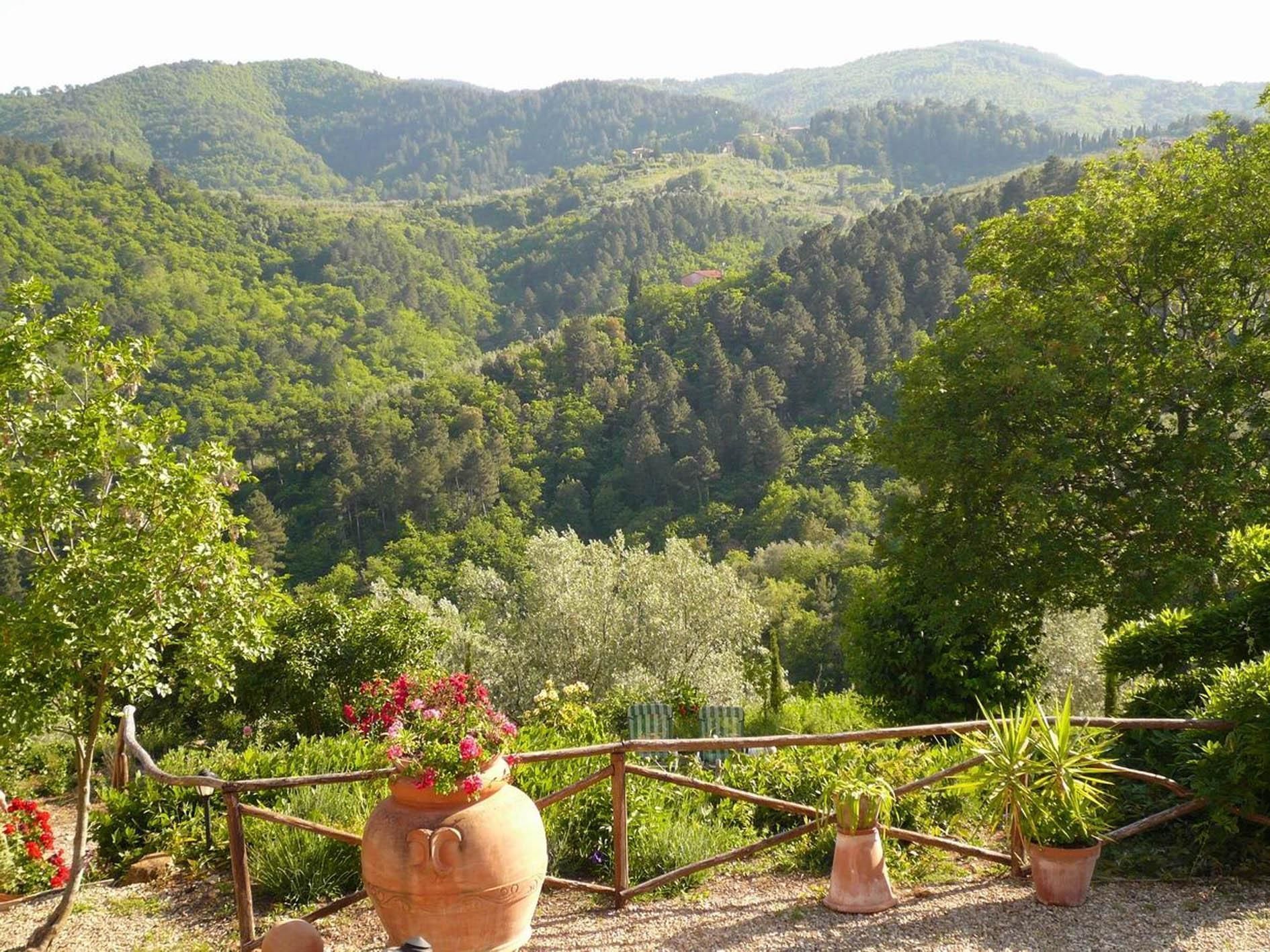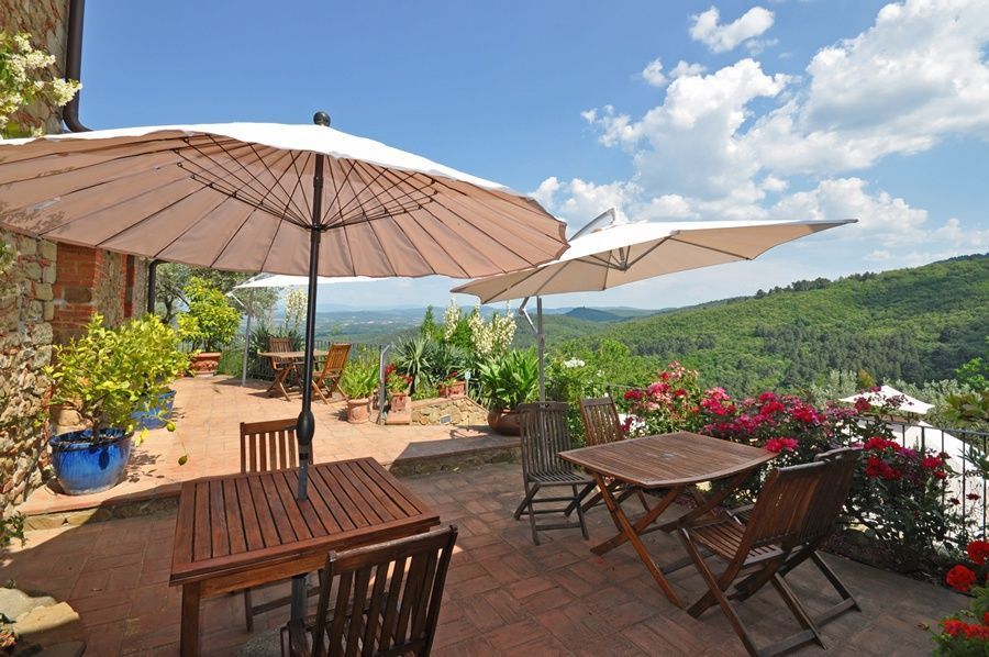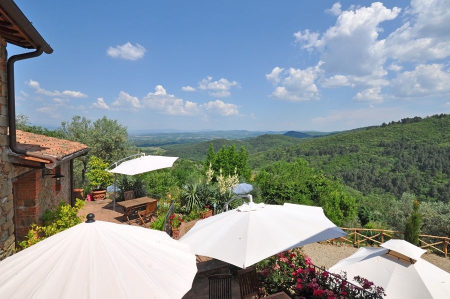 Small flat with kitchen, dining corner, bedroom/ living room, bathroom with shower. Panoramic view over the Arno valley and Chianti Mountains.