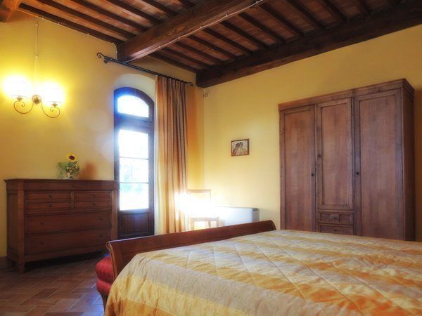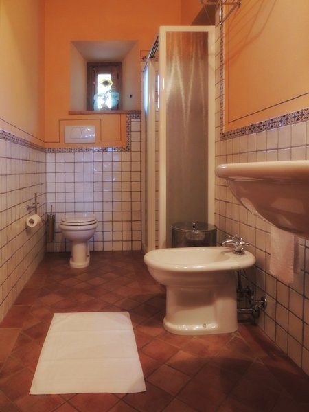 Situated on the ground floor in the central part of the court yard of the resort, has got typical tuscan furnishings, private access, one large living/dining room with satellite tv and double sofa-bed and 1 extra single bed (bookable at an extra price), with full equipped kitchen (4 hotplates, oven, dishwasher, fridge), three bedrooms (two with a double bed and one with two twin beds), two of them with exit on the terrace, 1 bathrooms with bidet, shower and wc, 1 bathroom with bidet, wc, shower and bath tub. Outdoor reserved table and chairs, gazebo on the back terrace. Independent heating.