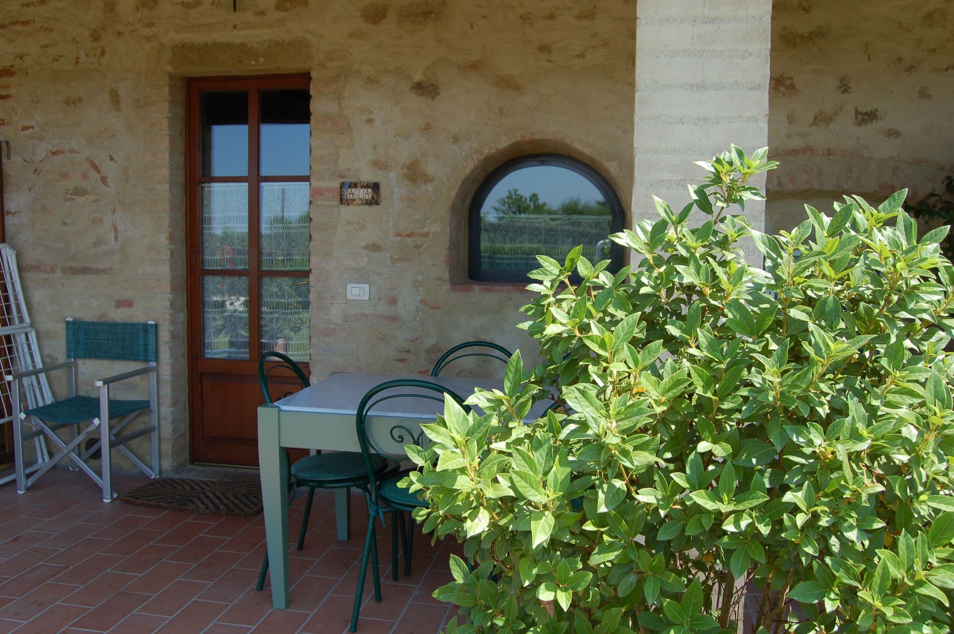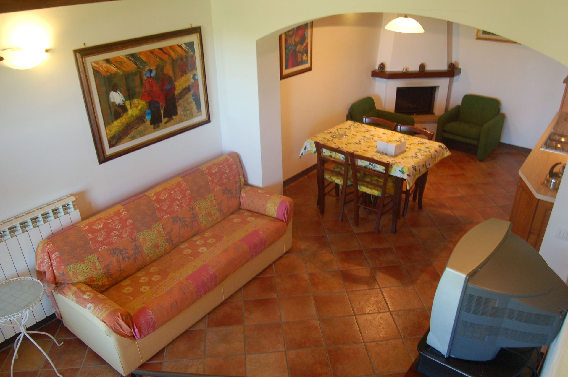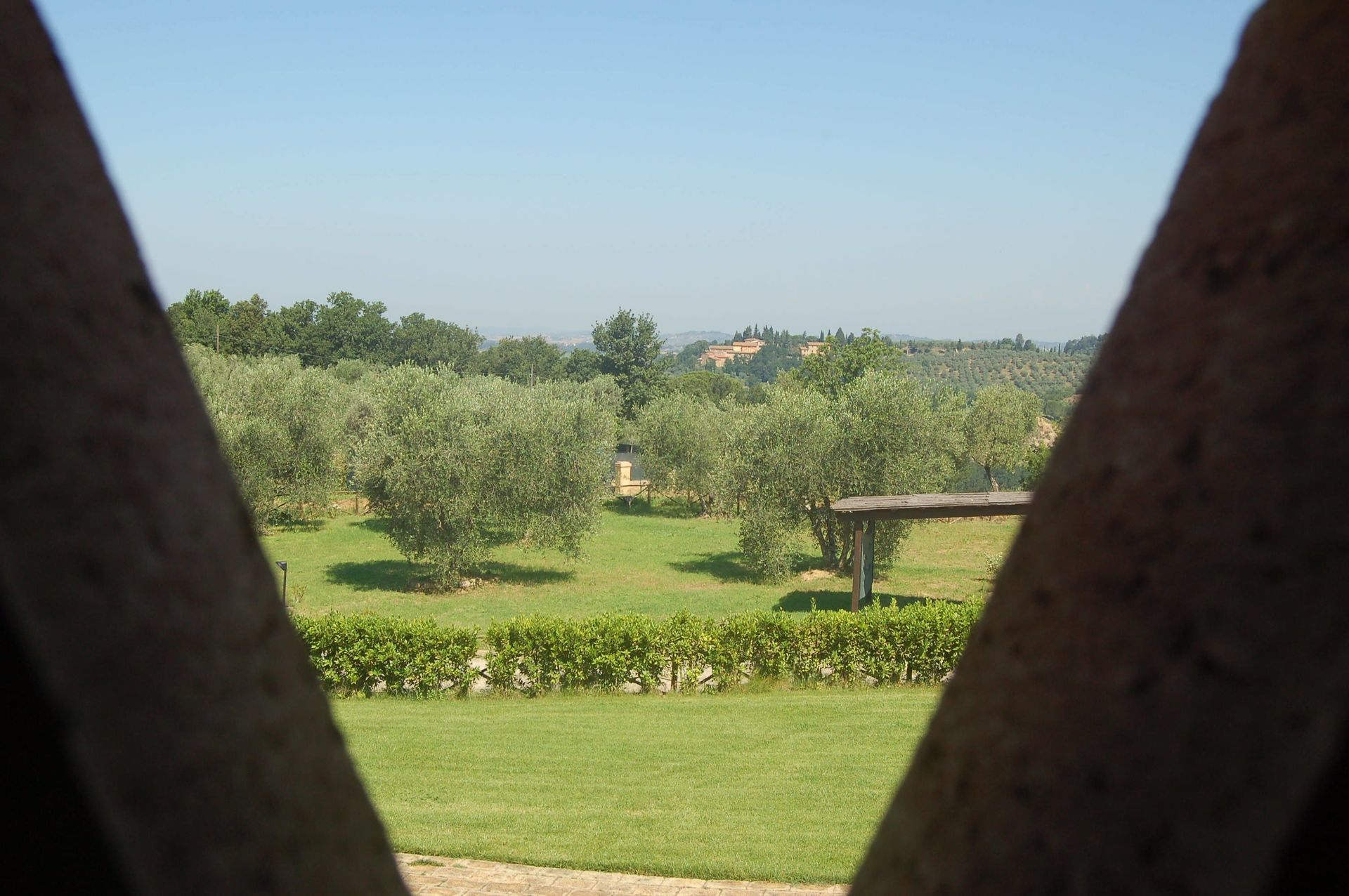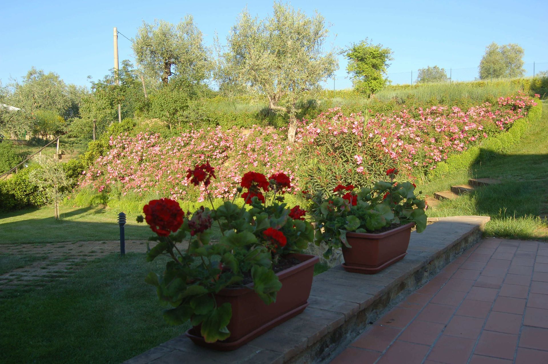 Beautiful Terracotta glazed stairs lead to the first bedroom with twin beds in the upper floor. The wide window of the room is sheltered by the typical thin terracotta bricks, which allow enjoying the wonderful landscape of the valley and its olive groves but being protected from the warmth of the sun in the hottest hours.