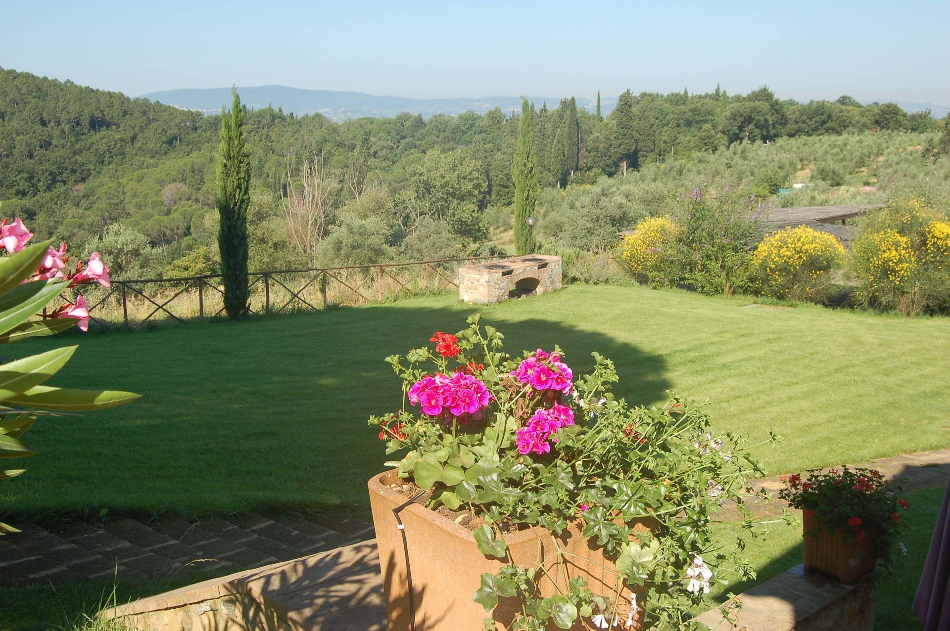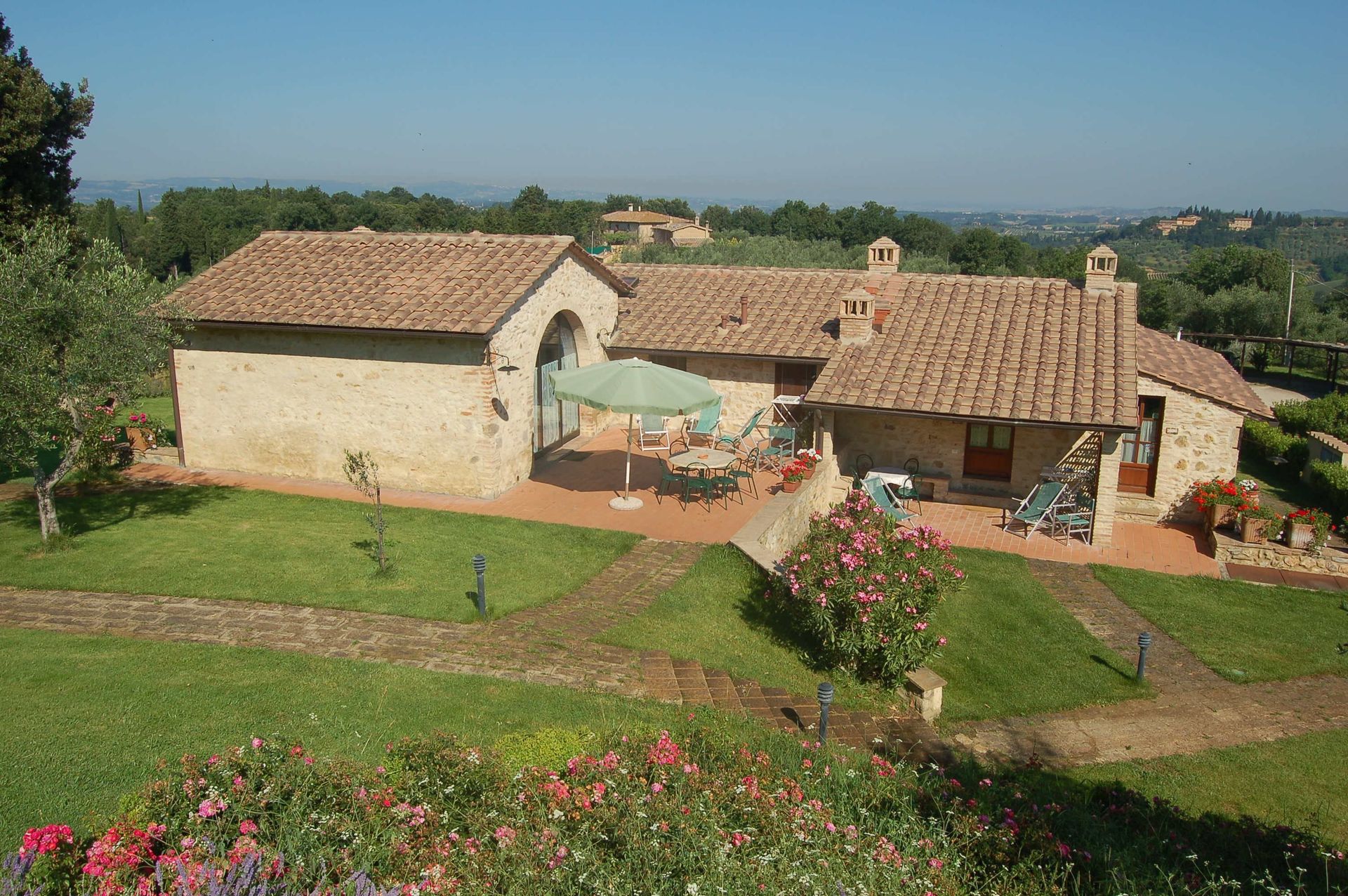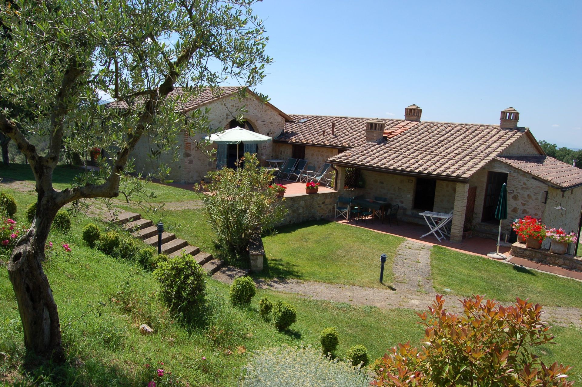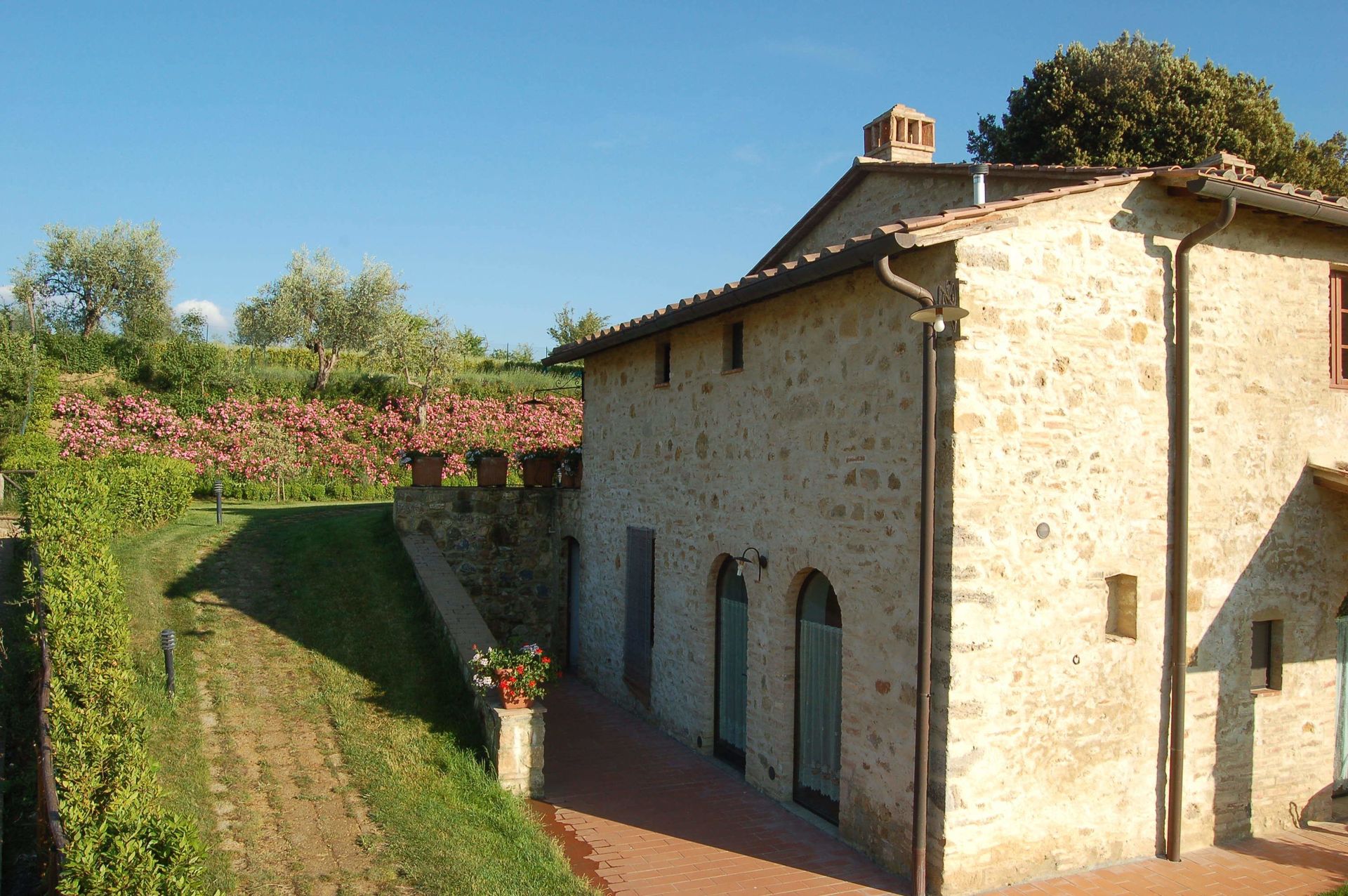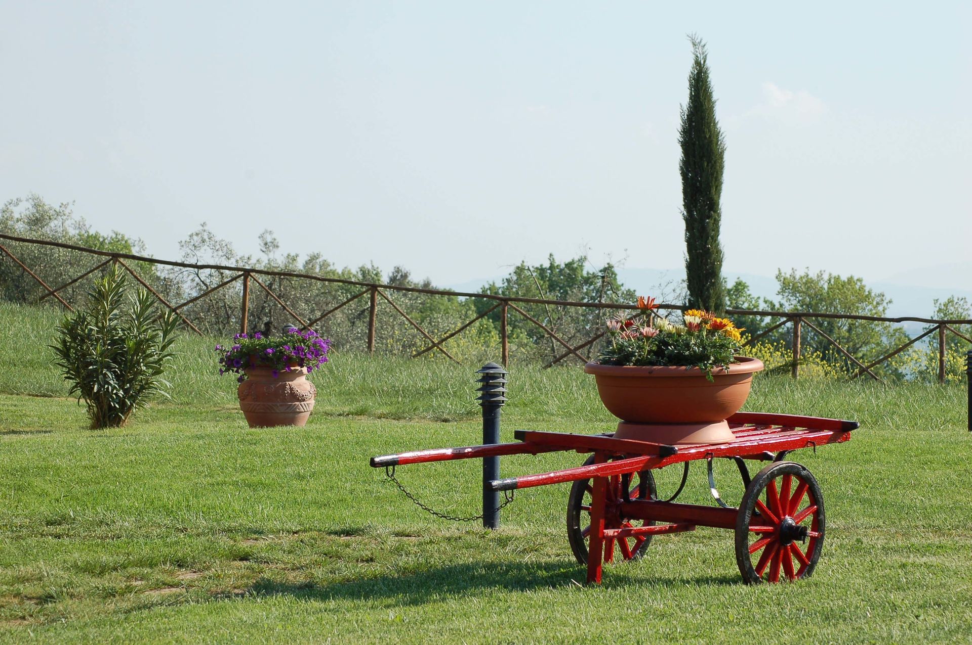 Beautiful Terracotta glazed stairs lead to the first bedroom with twin beds in the upper floor. The wide window of the room is sheltered by the typical thin terracotta bricks, which allow enjoying the wonderful landscape of the valley and its olive groves but being protected from the warmth of the sun in the hottest hours.