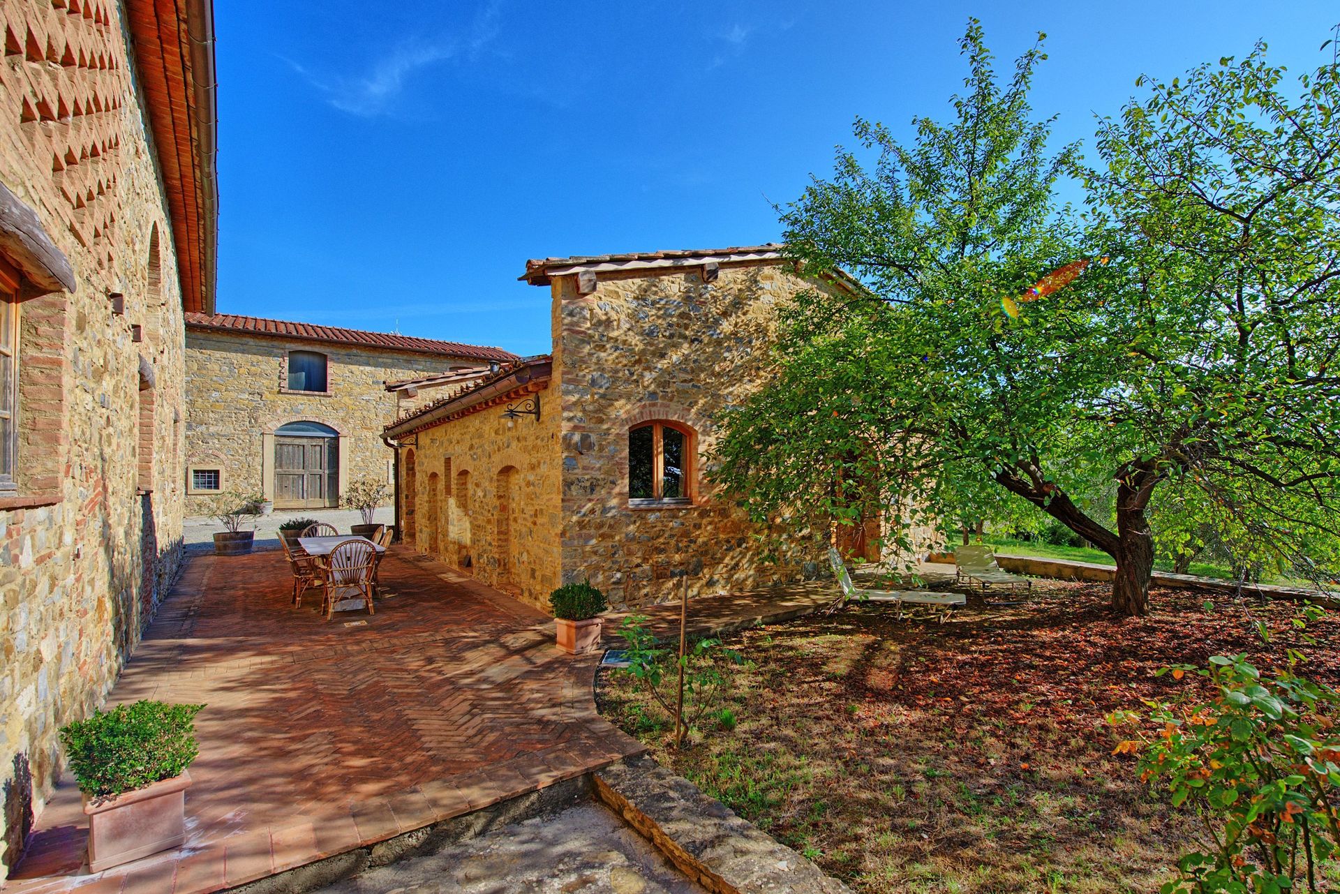 Eigen, gemeubileerde buitenruimte.