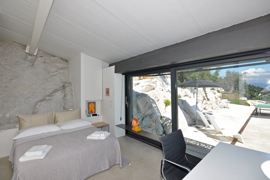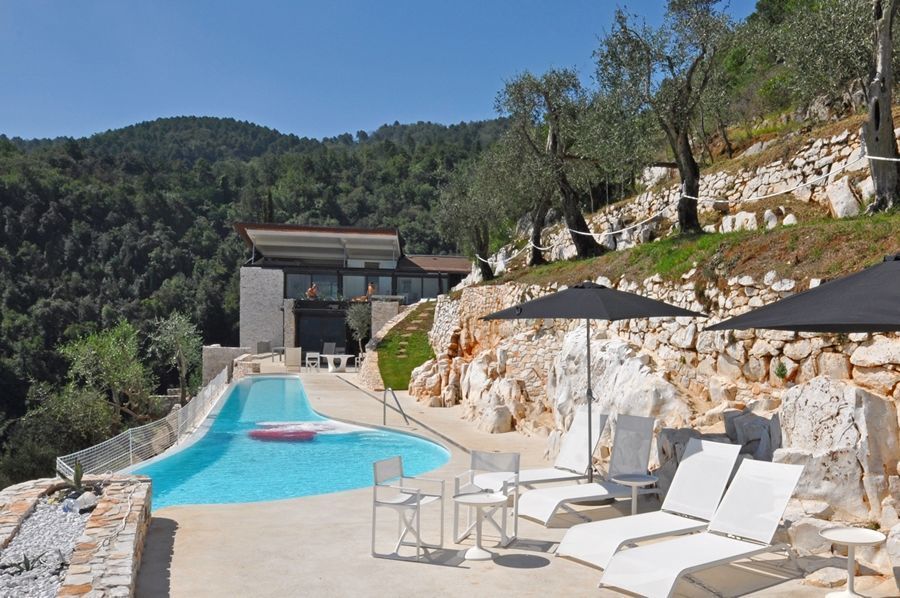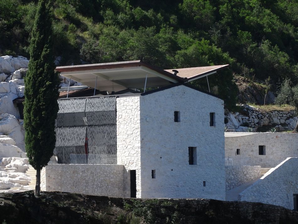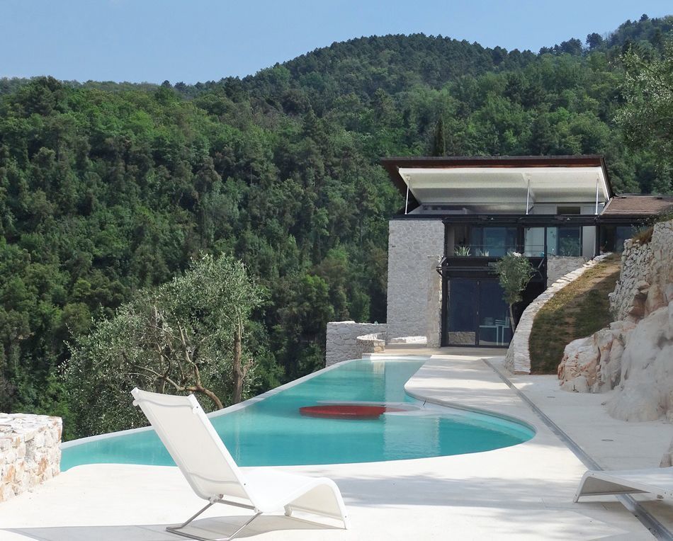 Dit unieke huis is door de eigenaars (beide zijn kunstenaars, architecten en interieur ontwerpers) zelf ontworpen: het is gebouwd op een heuvel van marmer en biedt een zeer licht interieur met een prachtig panoramisch uitzicht over Lucca. Het dak van het hoofdgebouw kan worden geopend voor ventilatie en afkoeling van het hele gebouw (dankzij een systeem van hydraulische zuigers). De grote ramen van het huis kunnen geopend worden om zo de binnen- en buitenruimtes te verenigen. De inrichting is modern en verfijnd.