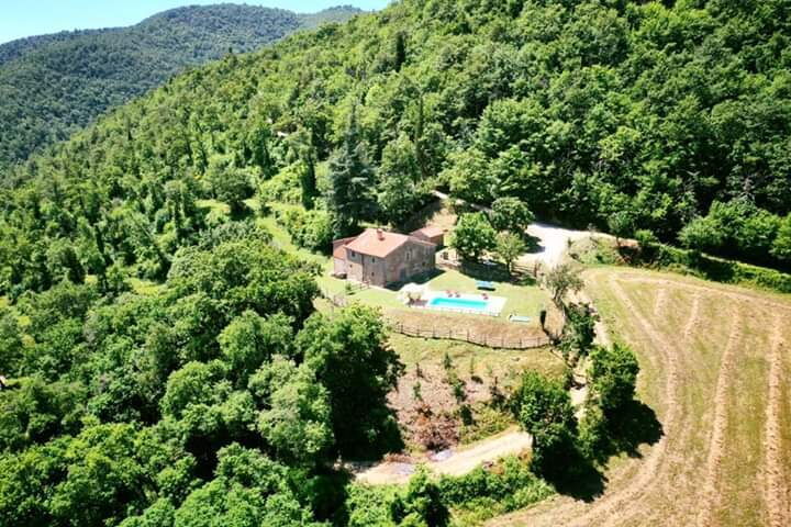 Ca' de Tonco is an old, stone farmhouse which takes us back to the most ancient Tuscan peasant origins. Situated on a high hill, among woods, pastures and cultivated fields a few km from the city of Arezzo, is the ideal place for those who wish to escape the stress and noise of city life. The house is reached via a scenic, unmade road through the woods (about 4 km long), with rather steep parts, well maintained, but not suitable for sports cars.
