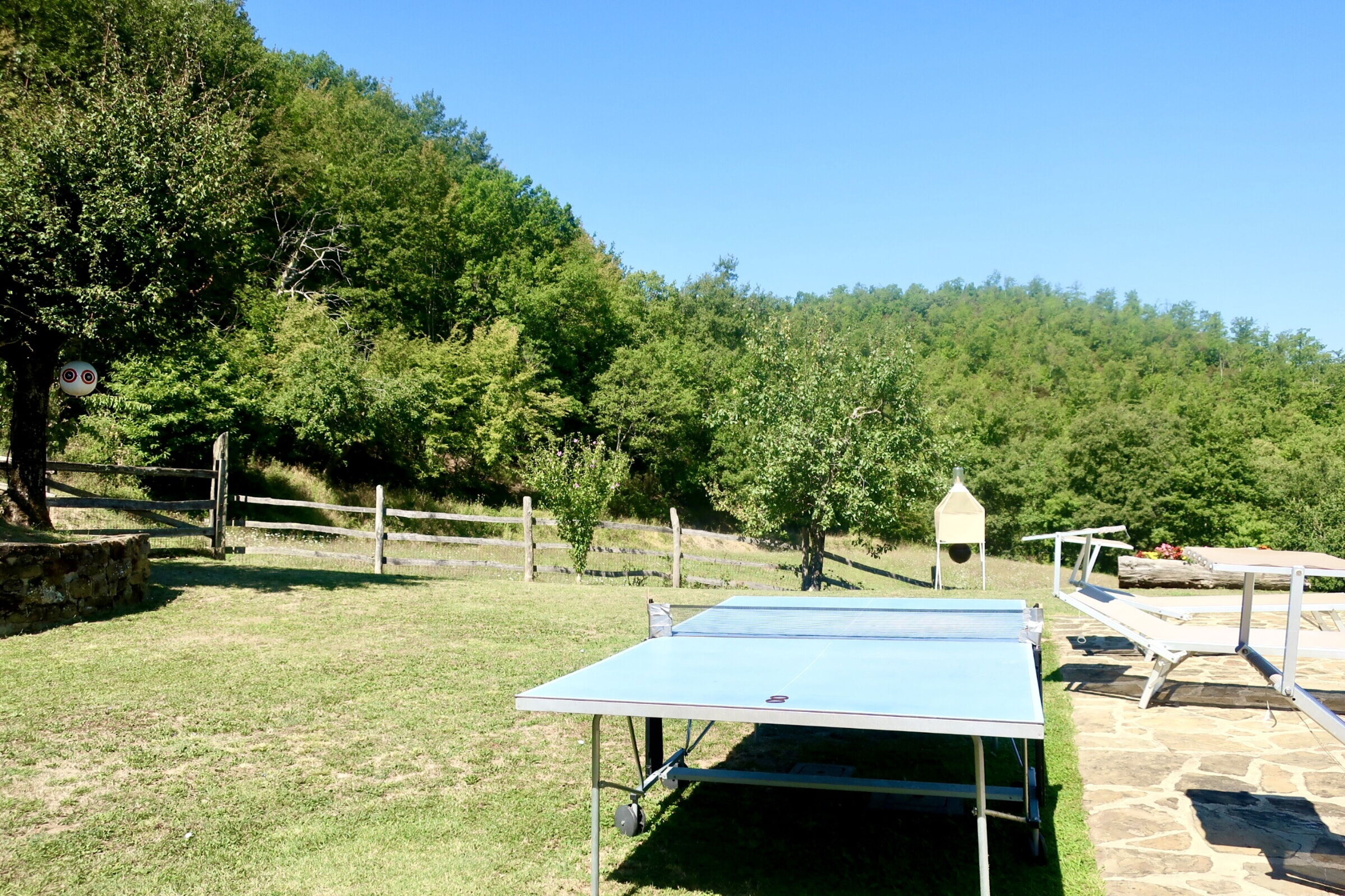 Ca' de Tonco offers a completely fenced 900 m2 garden ( with a 1,60 m high fence), making it perfect for a holiday with your four-legged friends, who can run free and safe on the property. On the side of the house a beautiful private swimming pool (also fenced, size m. 4x8, depth 1,40 m. - open from 24 April to 2nd October), placed on an extremely panoramic terrace equipped with gazebo, table and chairs for outdoor meals, barbecue and wood burning oven. You can also spend fun afternoons playing table tennis or relaxing in a hammock reading a good book. The rustic but comfortable furnishing fits in perfectly with the characteristics of the property.