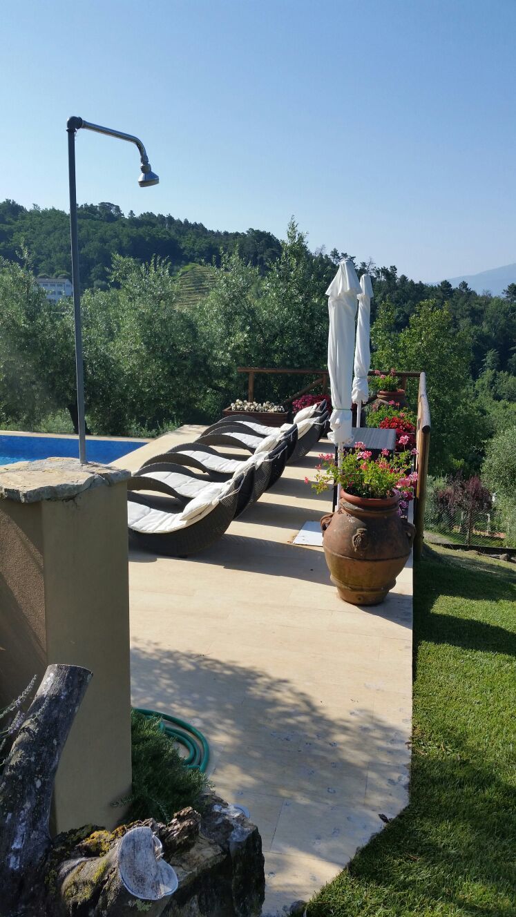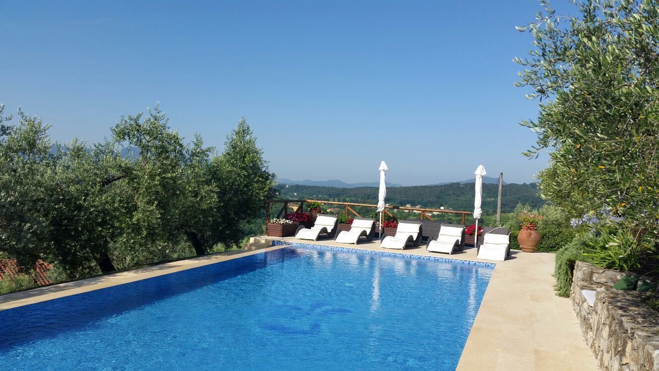 Vanuit de villa, en vooral vanaf de veranda die zich uitstrekt over een gehele zijkant van de villa en is ingericht om heerlijk buiten te kunnen eten, zijn er prachtige uitzichten over de vlaktes van Lucca en de heuvels daarachter. La Palma ligt vlakbij Lucca, een combinatie van een mooie landelijke omgeving met het gemak van slechts 10 minuten rijden naar het centrum van de stad.