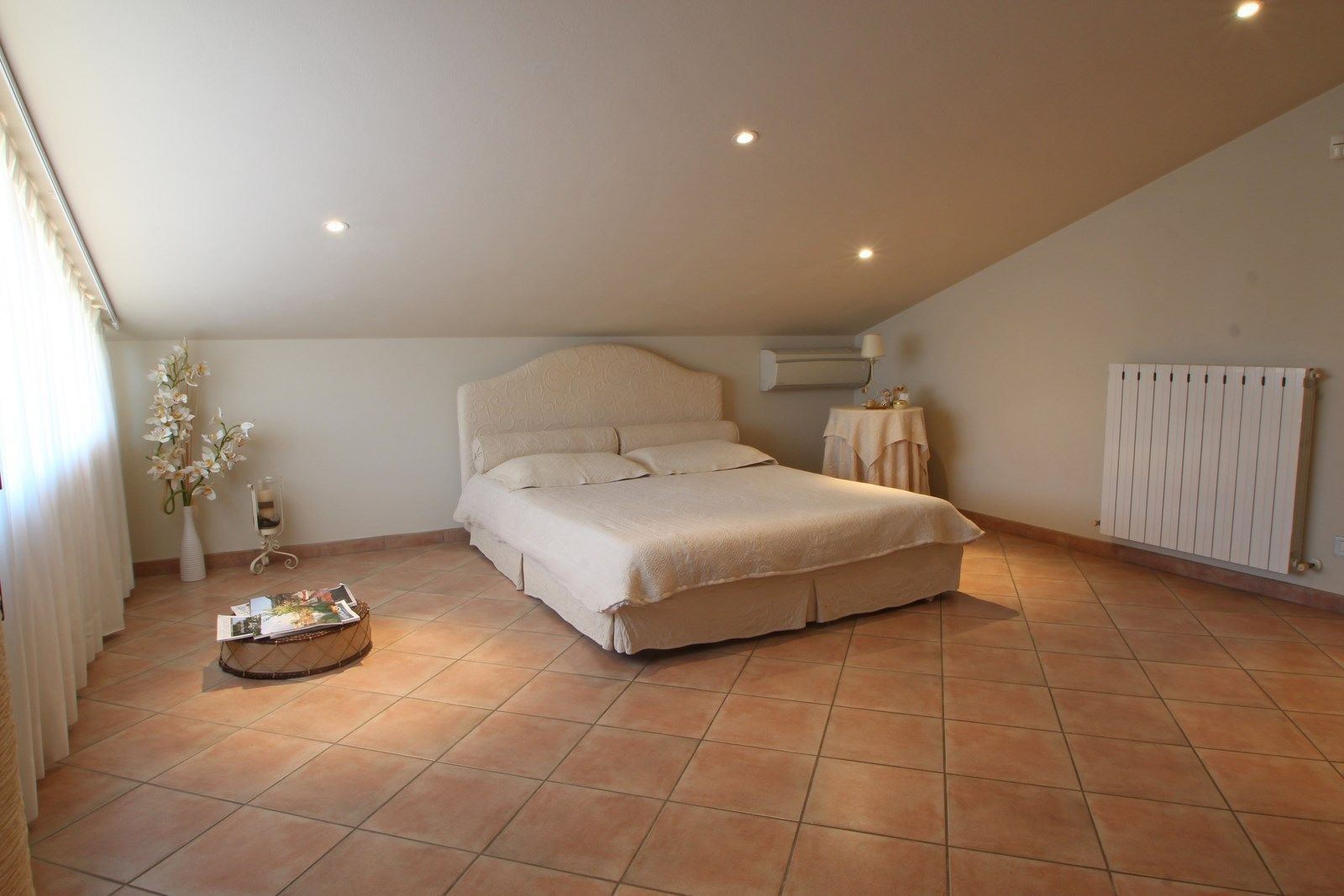 First floor (attic): large master bedroom with air conditioning, fridge and TV in the closet.