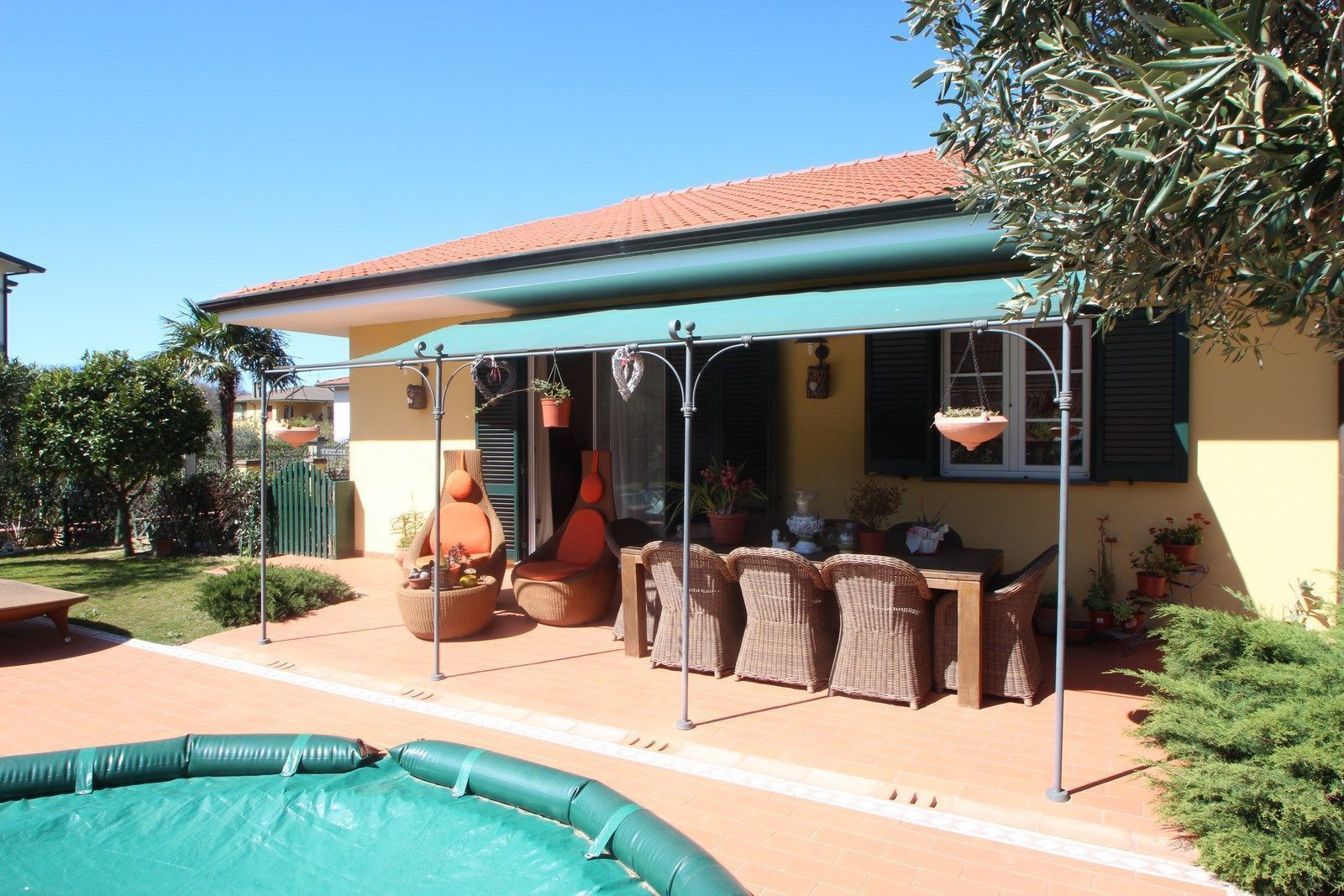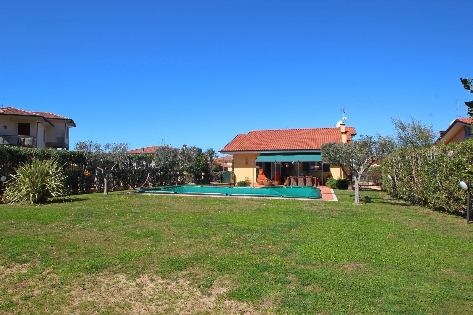 Villa Massarosa is surrounded by a garden of about 1800 square meters fully fenced and protected with hedges from the road ensuring privacy.