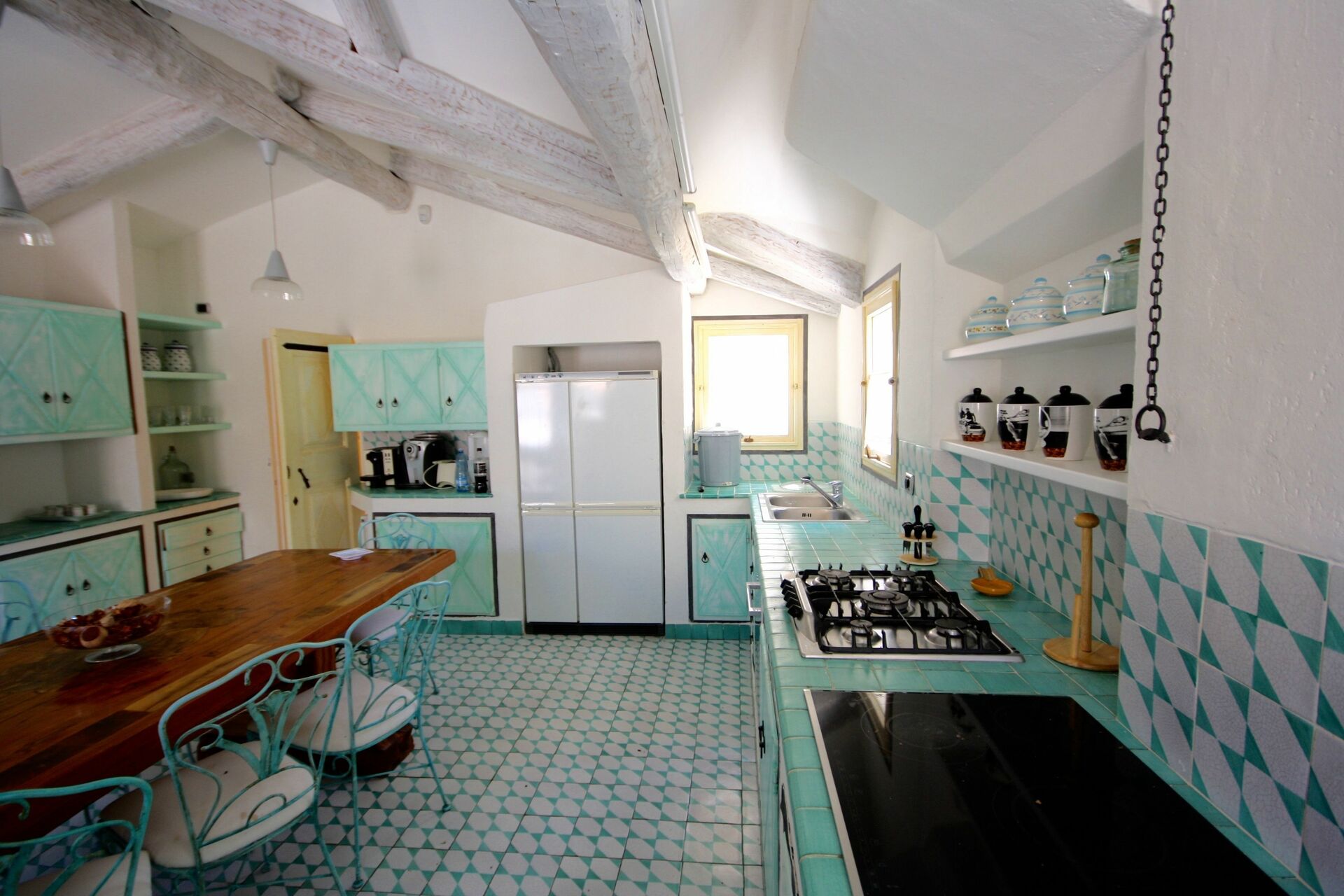 Main building: consists of a living room in two levels with seating and dining area, the large kitchen is equipped with every comfort, including doublecooker (induction and gas), double fridge, convection and ventilated oven, wood-fired oven. The table can accommodate many guests. There is an additional reading room and TV. Three double bedrooms with bathrooms, the master bedroom on the first floor has a walk-in closet.